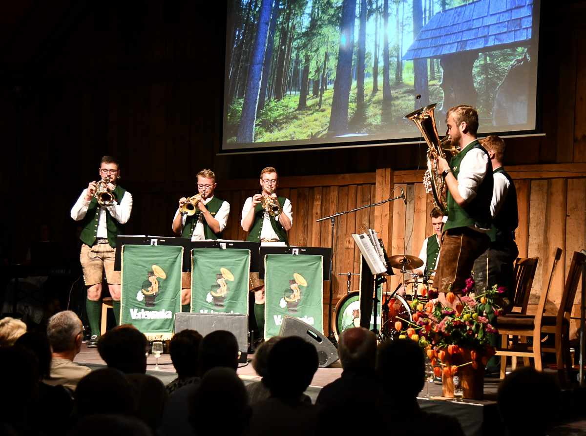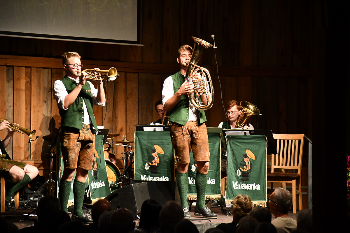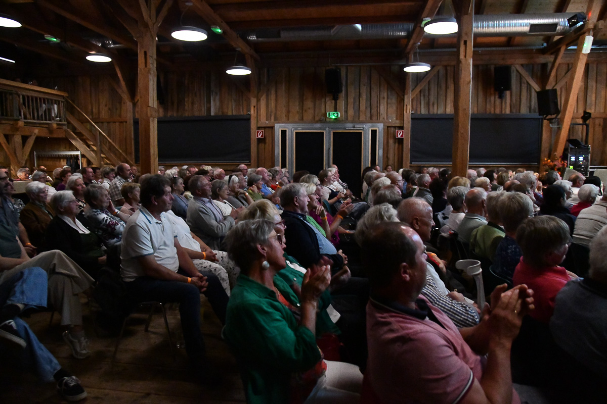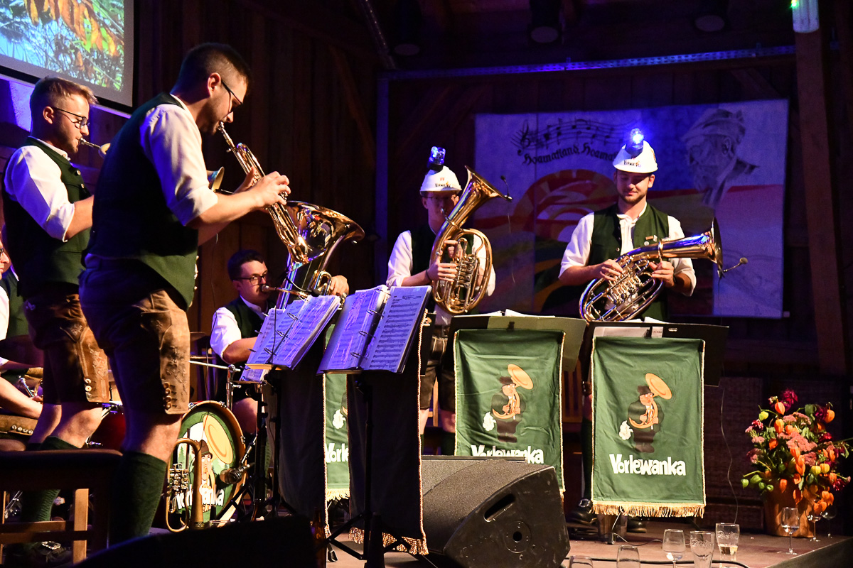 Für die musikalische Umrahmung sorgten urige Volksmusikklänge der sieben feschen Vollblutmusiker von VORLEWANKA aus Bad Leonfelden und Vorderweißenbach, fein gewürzt mit einem böhmisch-mährischen Blasmusikeinschlag, der nicht nur eingefleischte Musikliebhaber begeisterte. Ein besonderer Höhepunkt war der Auftritt des Familienquartetts Hofer aus Bad Leonfelden, das mit seinen harmonischen Stimmen für wahre Gänsehautmomente sorgte und das Publikum in seinen Bann zog. Zwischen den musikalischen Darbietungen sorgte der Lustige Hermann aus Niederösterreich mit viel Schmäh, Witz und humorvollen Gstanzln für zahlreiche Lacher und rundete den kurzweiligen Abend perfekt ab. Der stimmungsvolle Auftaktabend im Schnopfhagen-Stadl zeigte einmal mehr, wie lebendig und vielseitig die regionale Kulturszene auch am Land sein kann. Es war wiederum ein gelungener Start in den Kulturherbst des Vereines! Am Samstag, 11. Oktober kommen alle Kabarettfreunde auf ihre Kosten. Es kommt das Erfolgsduo Peter & Tekal mit ihrer Jubiläumsausgabe des Medizinkabaretts „30 Jahre gesund gelacht“ nach Oberneukirchen.