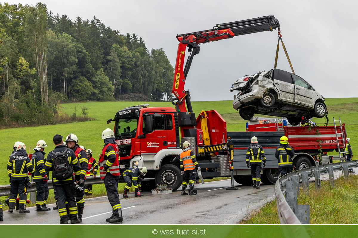 Am 9. September 2025 gegen 23:30 Uhr lenkte ein 45-jähriger rumänischer Staatsbürger seinen PKW entlang der B 38 von Rohrbach kommend Richtung Peilstein. In einer steilen Linkskurve im Gemeindegebiet Öpping kam der Lenker aufgrund der Spurenlage rechts von der Fahrbahn ab, fuhr auf die Leitschiene auf und überschlug sich mehrmals. Dabei kam er in einem Bachbett zum Stillstand. Das verunfallte Fahrzeug konnte am 10. September 2025 gegen 13 Uhr von einem Zeugen gefunden werden. Der Notarzt konnte tragischerweise nur mehr den Tod des Lenkers feststellen.