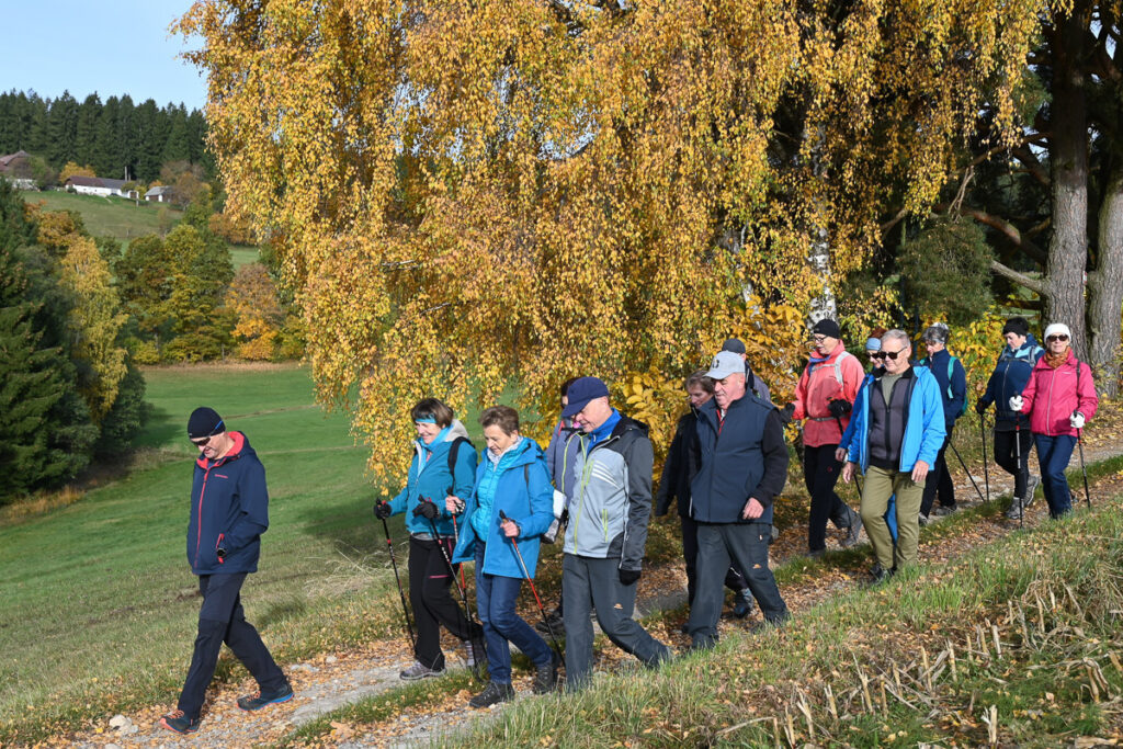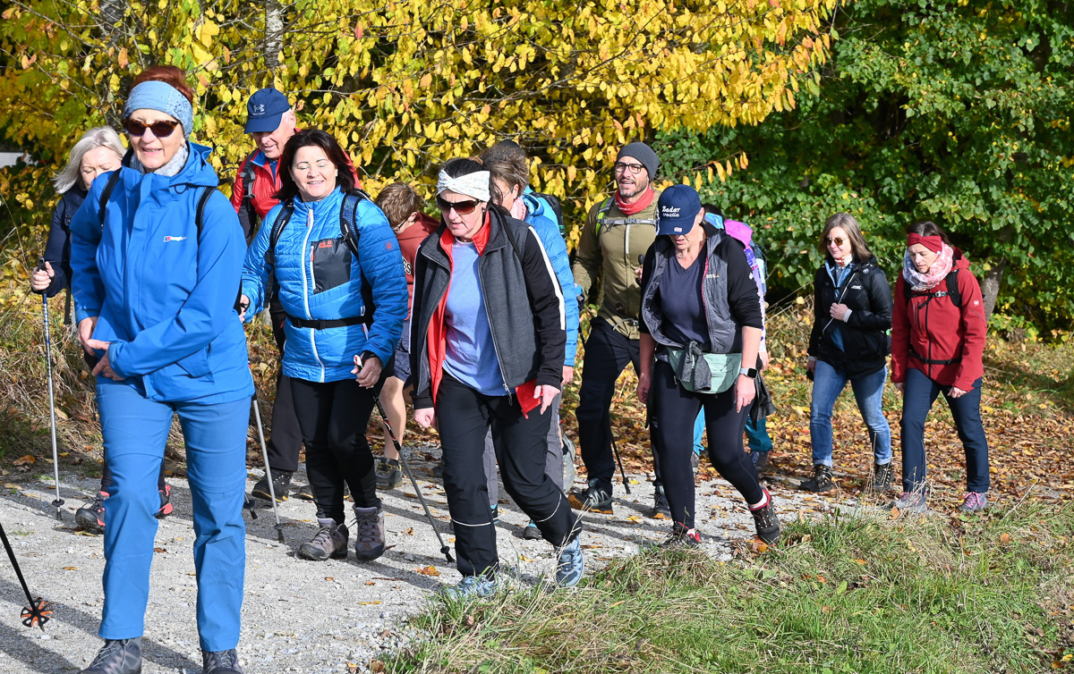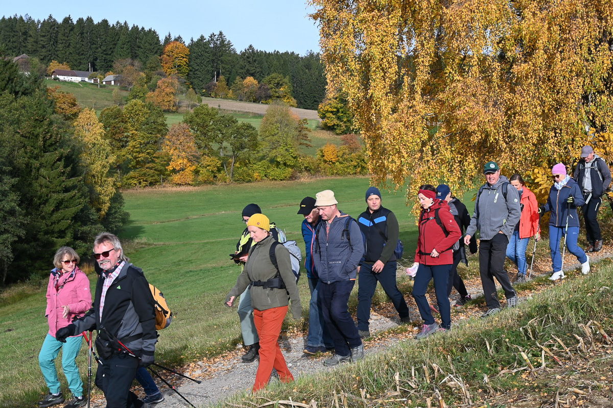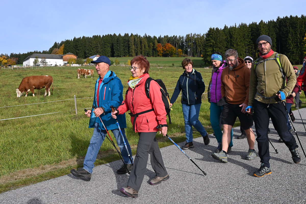 Danach ging es weiter über Stratreith und Auedt nach Pelmberg in der Gemeinde Hellmonsödt. Der Kreativherbst des Heimatvereines hatte im Freilichtmuseum an diesem Wochenende seine Tore geöffnet. Direktvermarkter, Bäuerinnen mit Köstlichkeiten und Handwerkskunst erwarteten unsere Wandergruppe. Auch das Pelmbergstüberl lud zum Rasten ein. Mit einem bleibenden Eindruck an dem vielfältigen regionalen Angebot und der bunten Herbstlandschaft ging es zurück zum Ausgangspunkt.