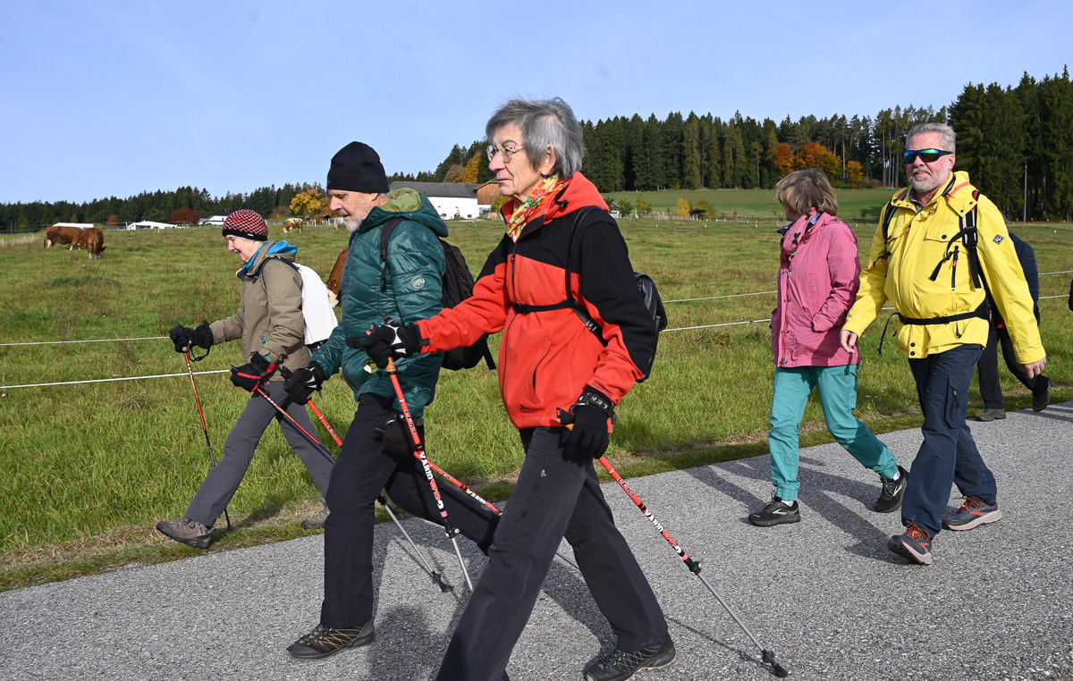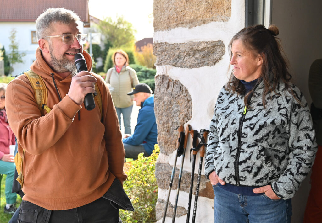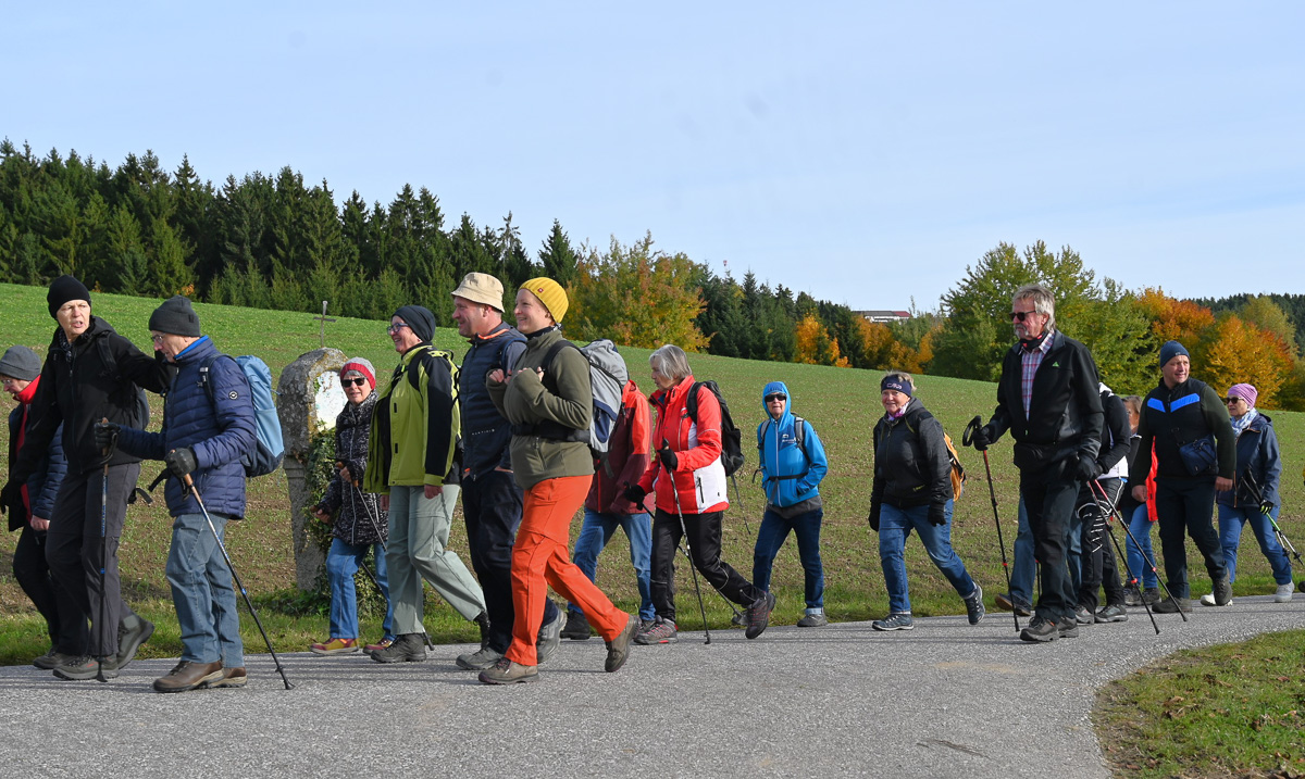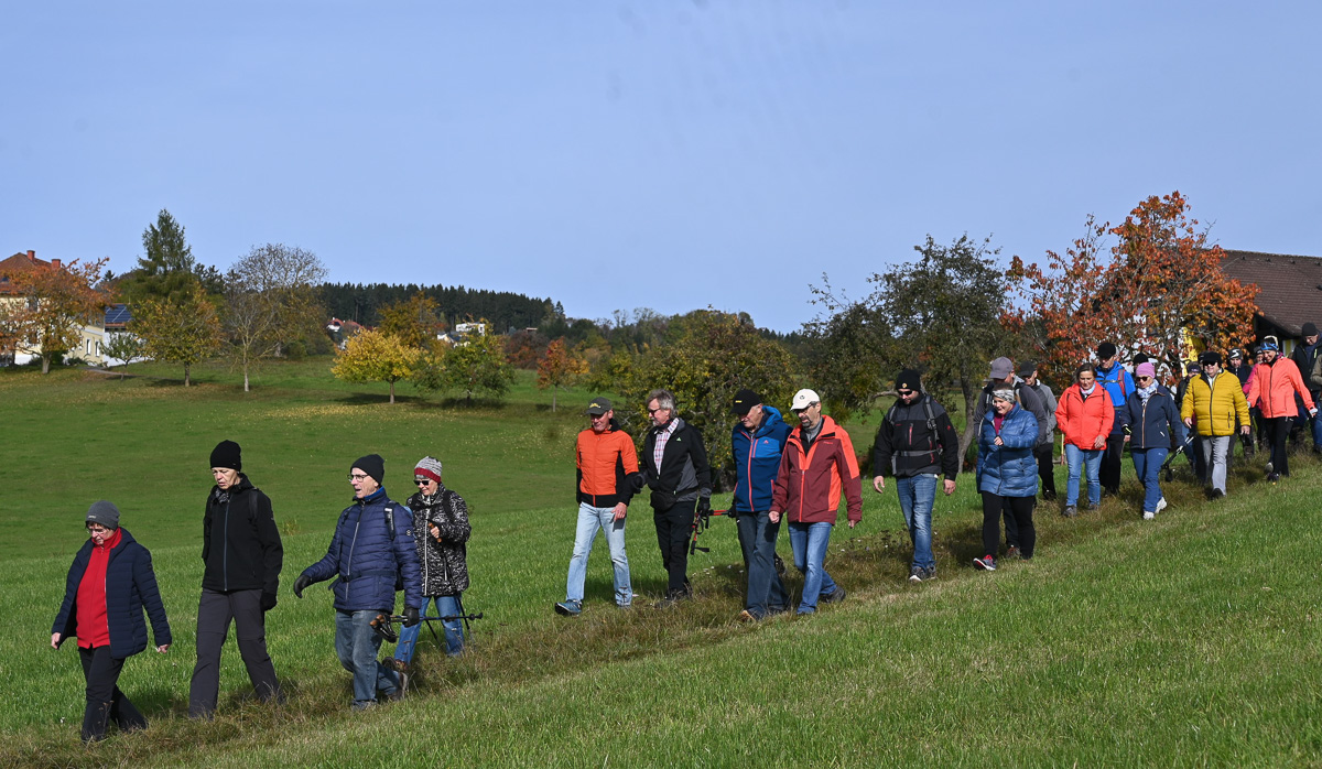 Los ging es beim Feuerwehrhaus in Renning in der Gemeinde Haibach wo der Arbeitskreisleiter der Gesunden Gemeinden Josef Reingruber weit über 100 Wanderfreunde aus nah und fern begrüßen konnte. Vizebürgermeisterin und Obfrau der Dorfentwicklung Sylvia Hammer erklärte kurz das Umbauprojekt Bauhof in Renning bevor es entlang des Reitwegenetzes in das Dorf Oberwinkl in der Gemeinde Altenberg ging.