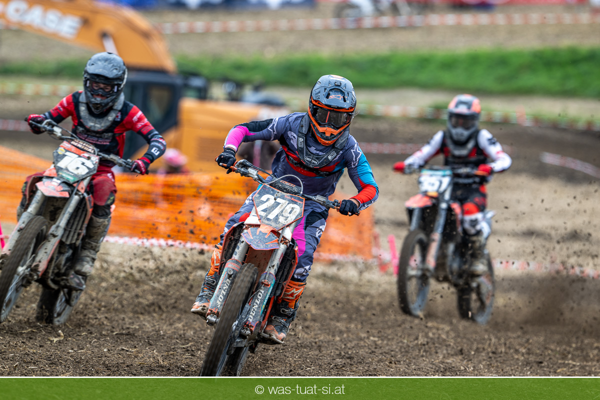Sportlich gab es für den Gastgeber Grund zur Freude: Heinz Prammer holte sich den Sieg in der Klasse Elite 60+, Lukas Prammer fuhr in der MX Open auf Rang 3, Michi Prammer landete knapp dahinter auf Platz 4.