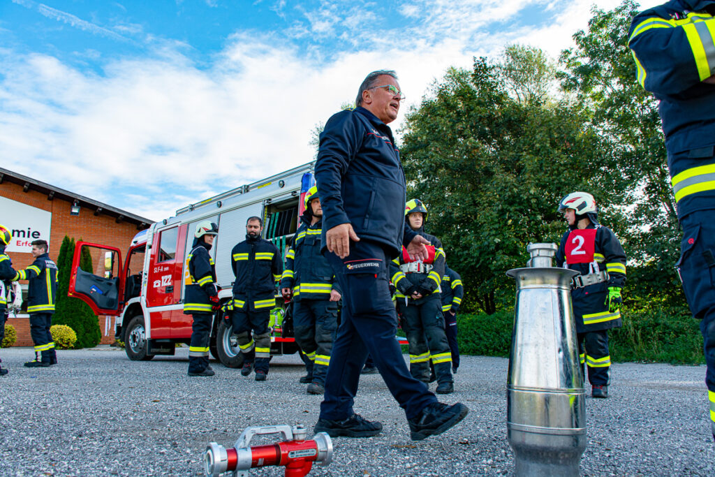 Lehrgangsleiter Hauptbrandinspektor d.F. Bernhard Binder konnte mit seinen 8 Ausbildnern an der Bezirks-Feuerwehrschule, der OÖ Bauakademie in Lachstatt, im Lehrsaal und im praktischen Unterricht das bereits im Vorfeld erlernte Wissen noch einmal vertiefen und festigen.