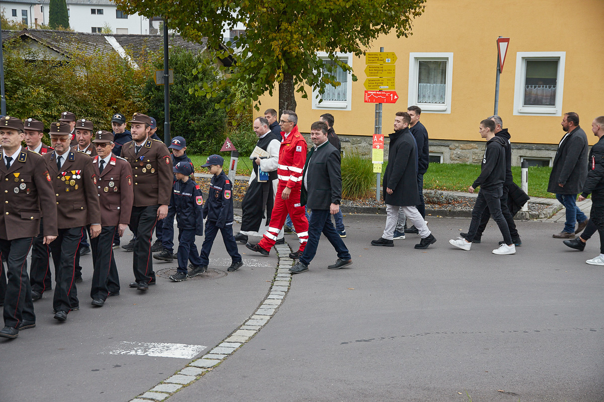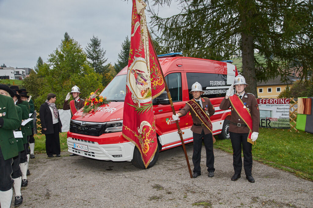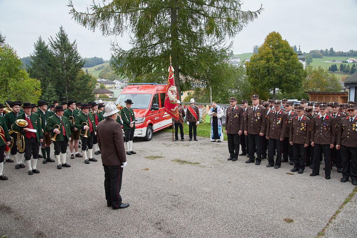 Nach der Segnung des neuen KDOF durch Bezirksfeuerwehrkurat Pater Otto Rothammer erfolgten die Grußworte des Kommandanten Manfred Lummerstorfer sowie der Ehrengäste.