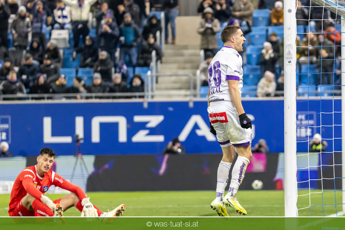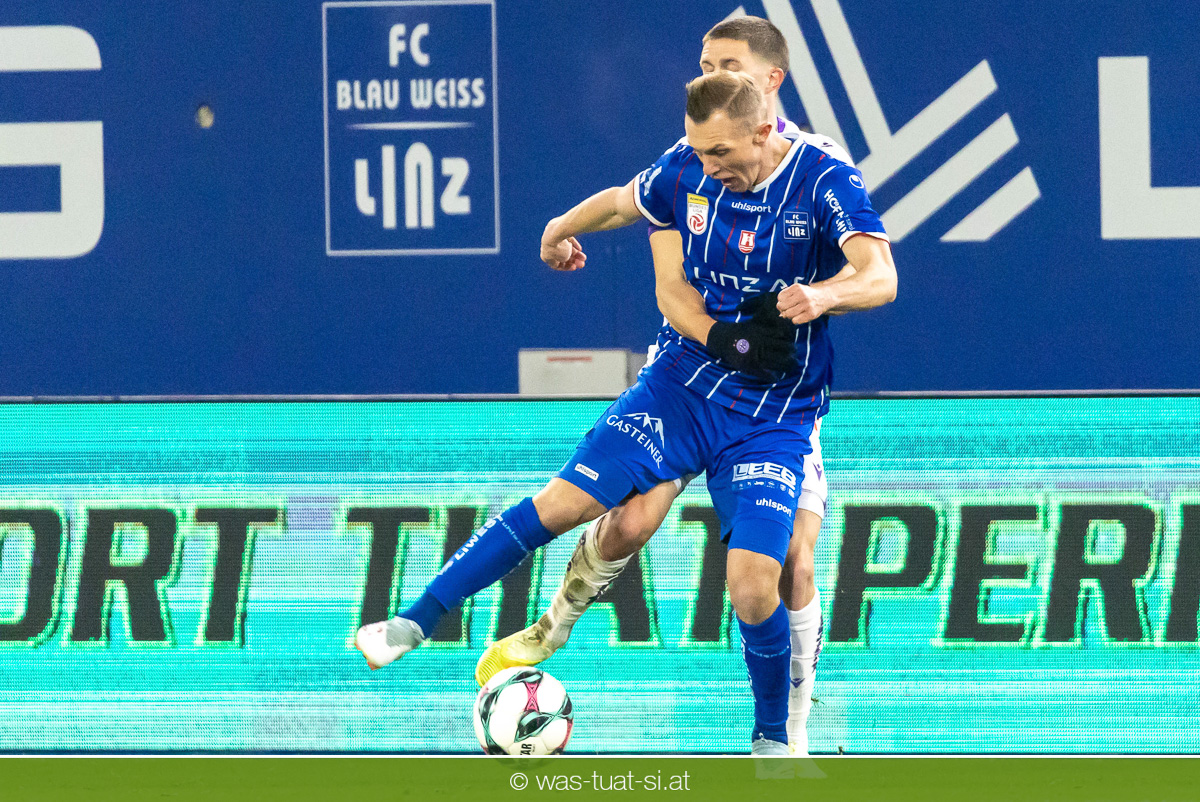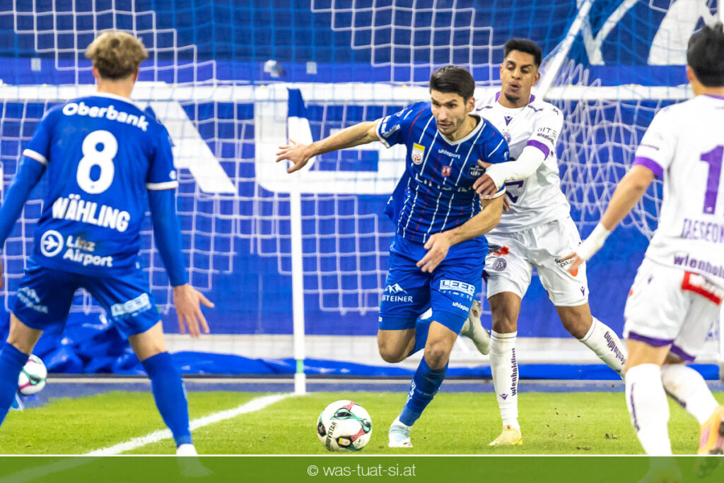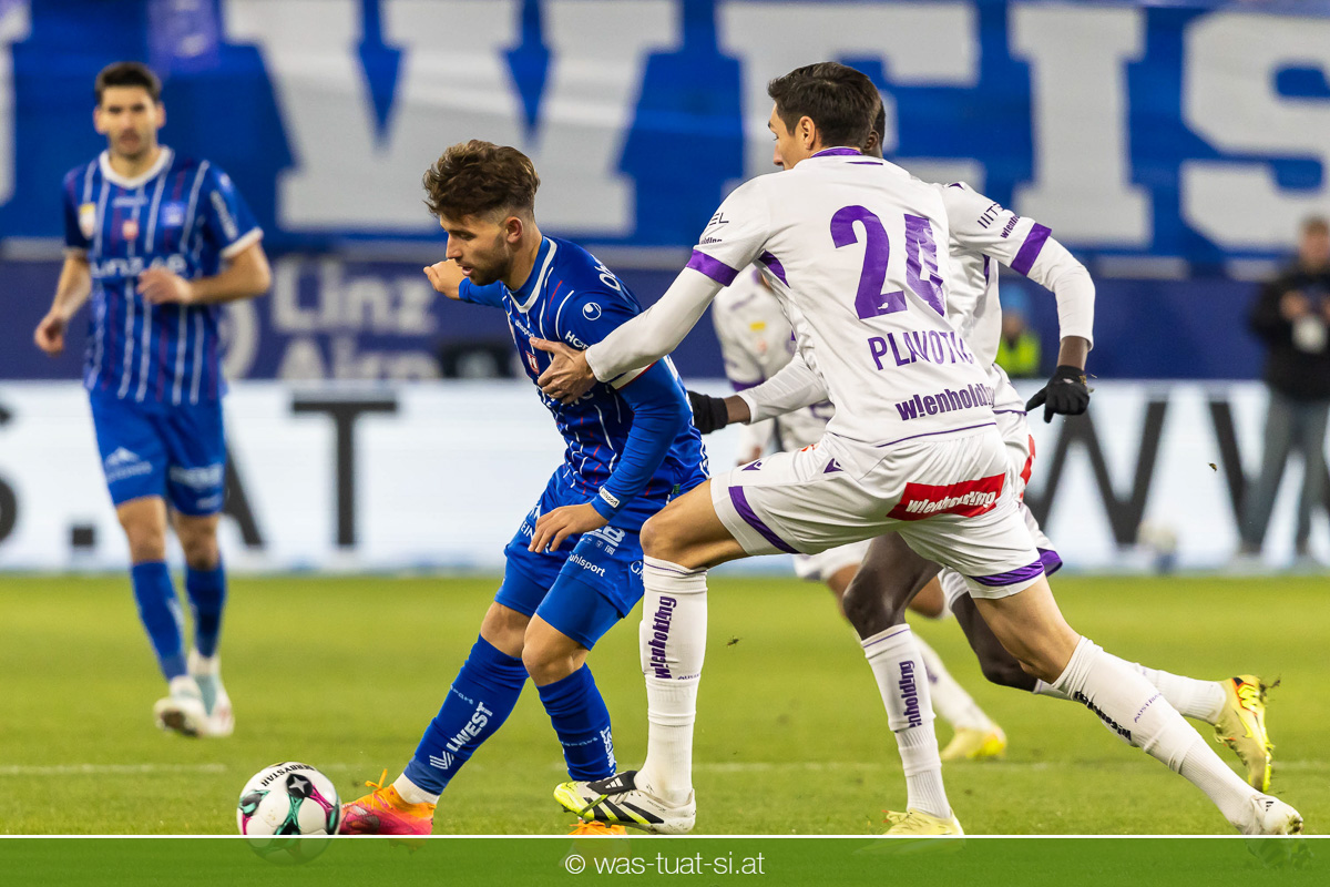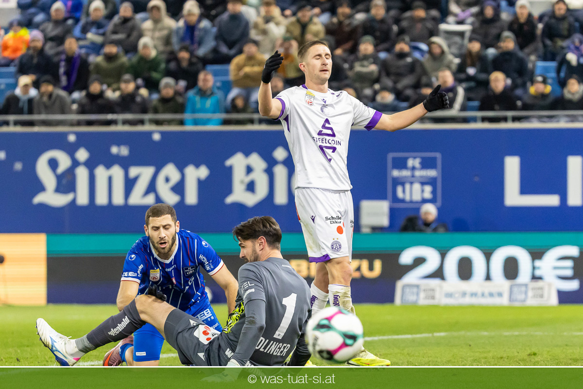 Blau-Weiß blieb danach am Drücker, verpasste aber durch Goiginger, Wähling und Fofana mehrfach die mögliche Führung. Die Veilchen waren hauptsächlich durch Standards gefährlich, fanden jedoch spielerisch lange kaum Lösungen gegen die starke Linzer Defensive.