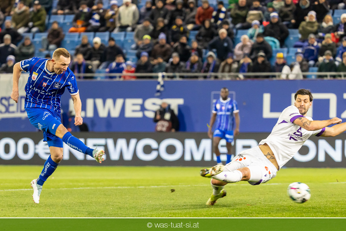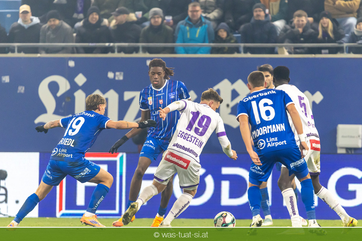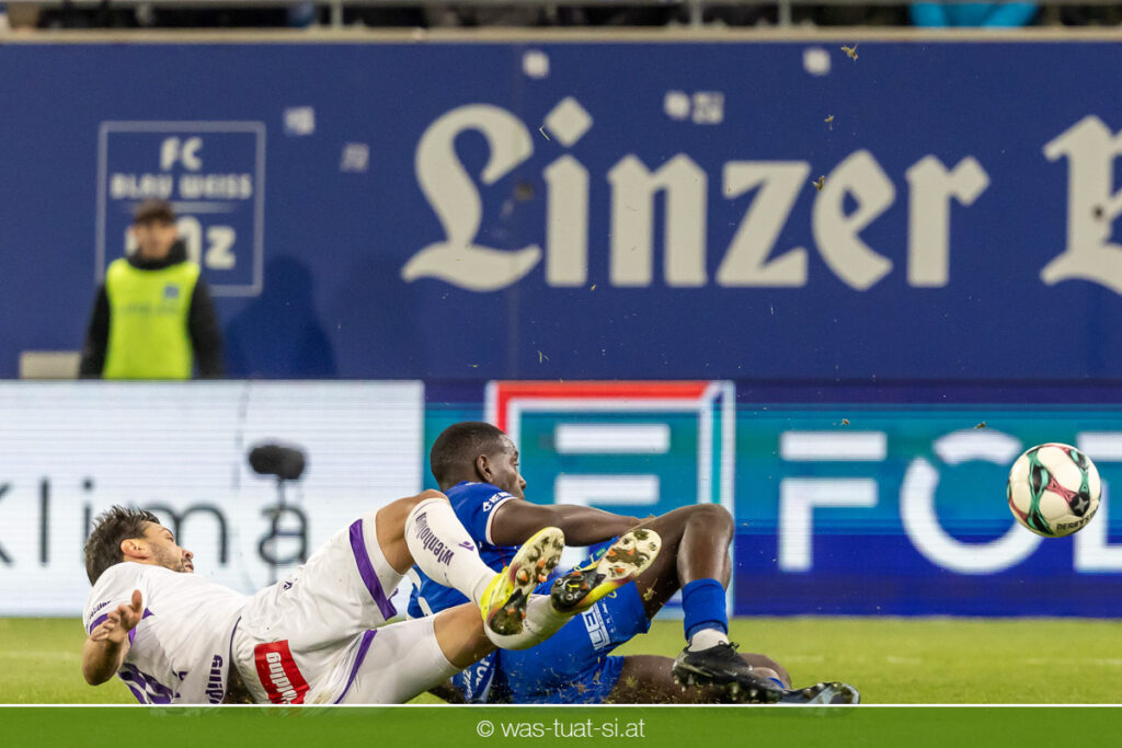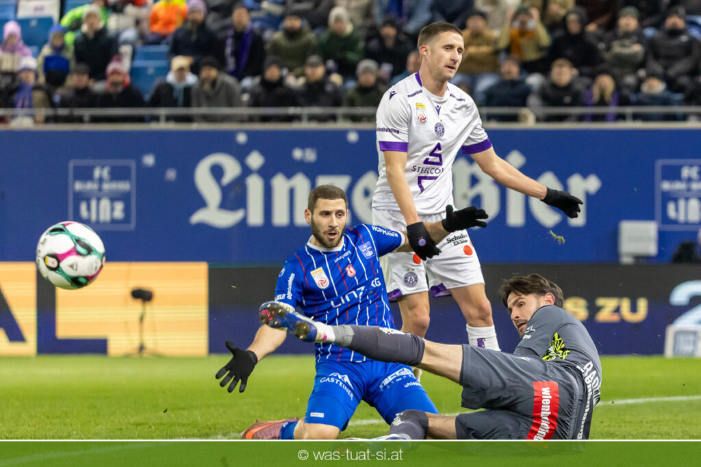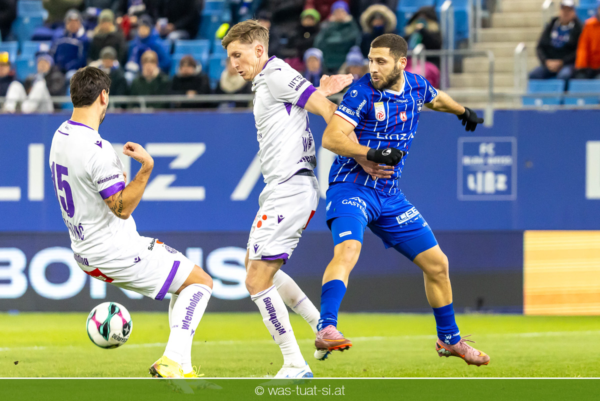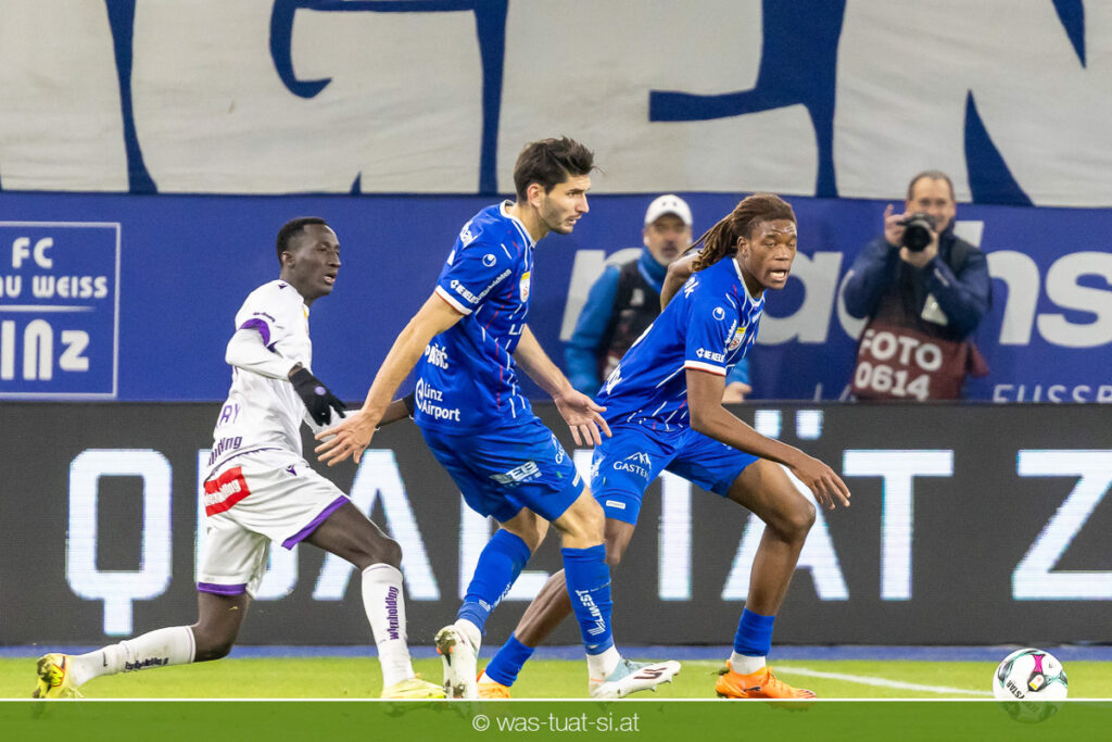Blau-Weiß blieb danach am Drücker, verpasste aber durch Goiginger, Wähling und Fofana mehrfach die mögliche Führung. Die Veilchen waren hauptsächlich durch Standards gefährlich, fanden jedoch spielerisch lange kaum Lösungen gegen die starke Linzer Defensive.