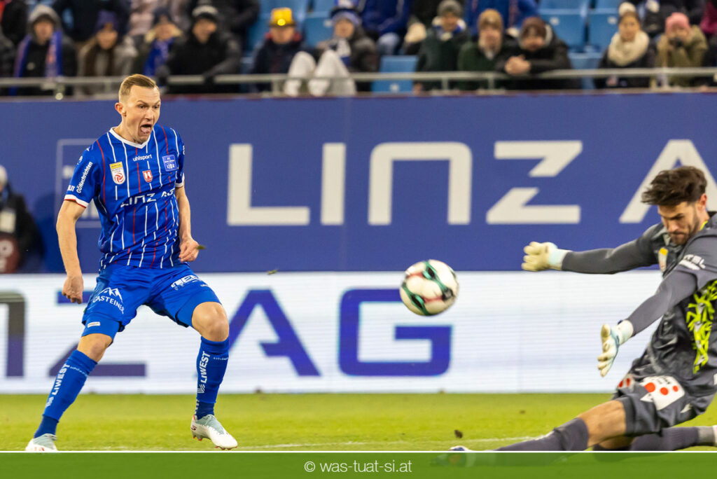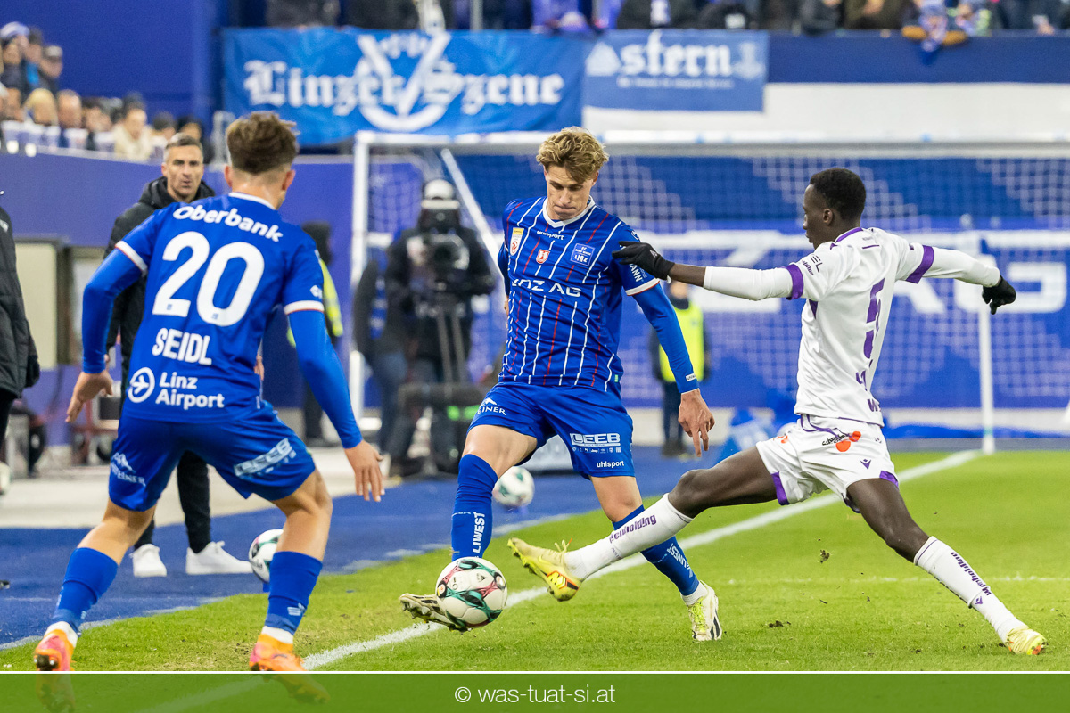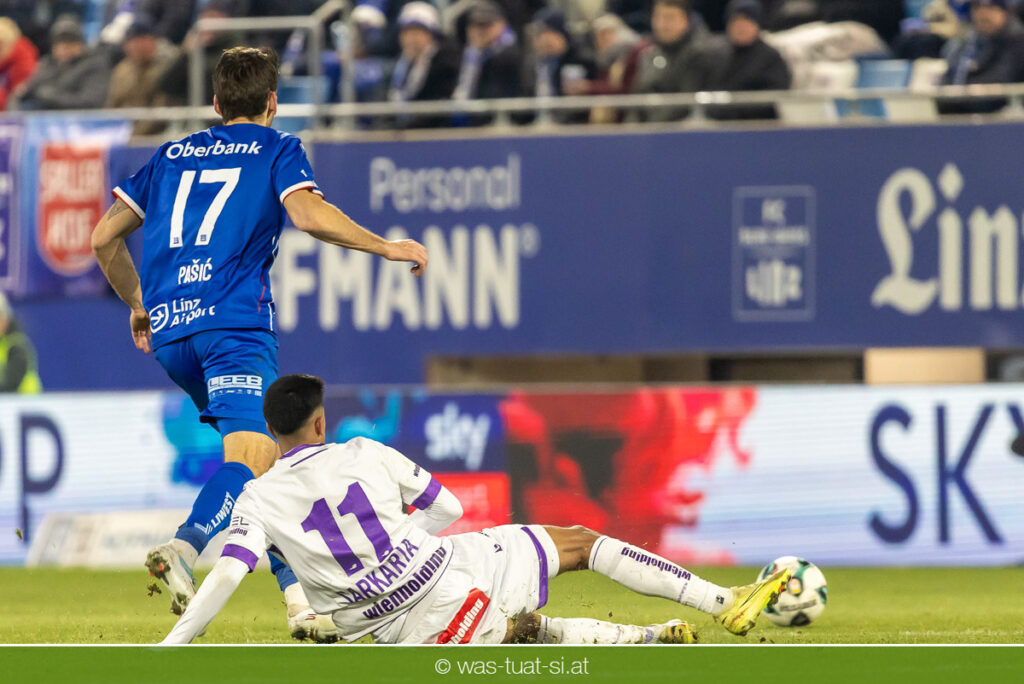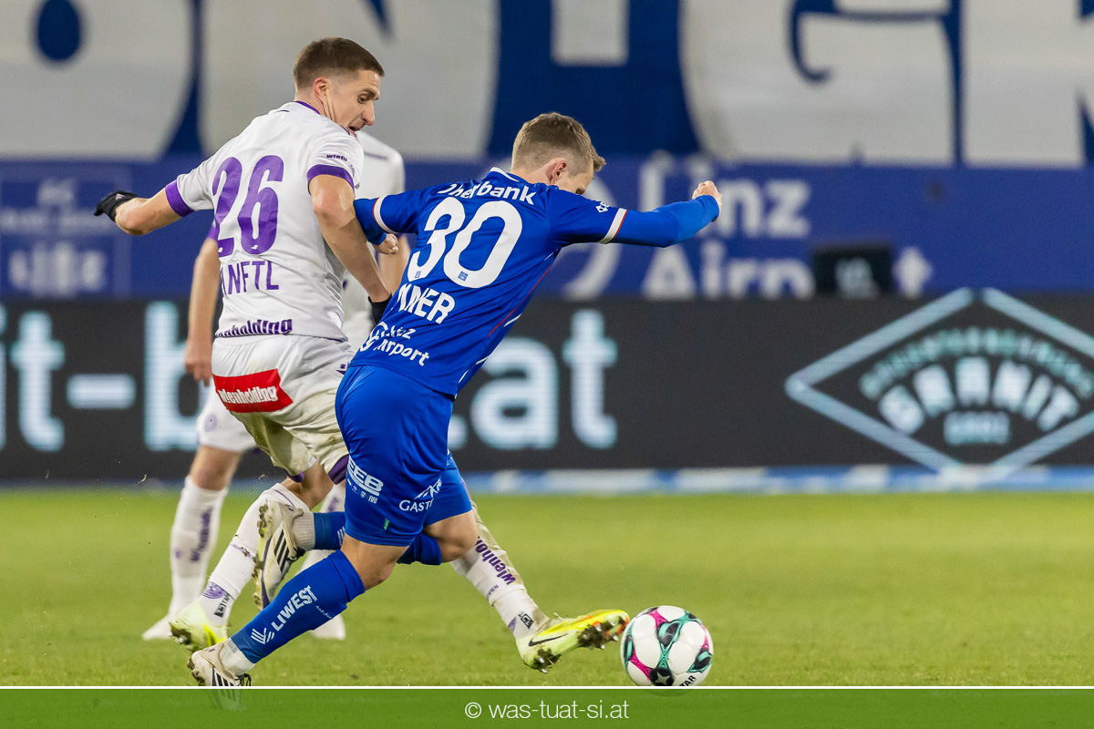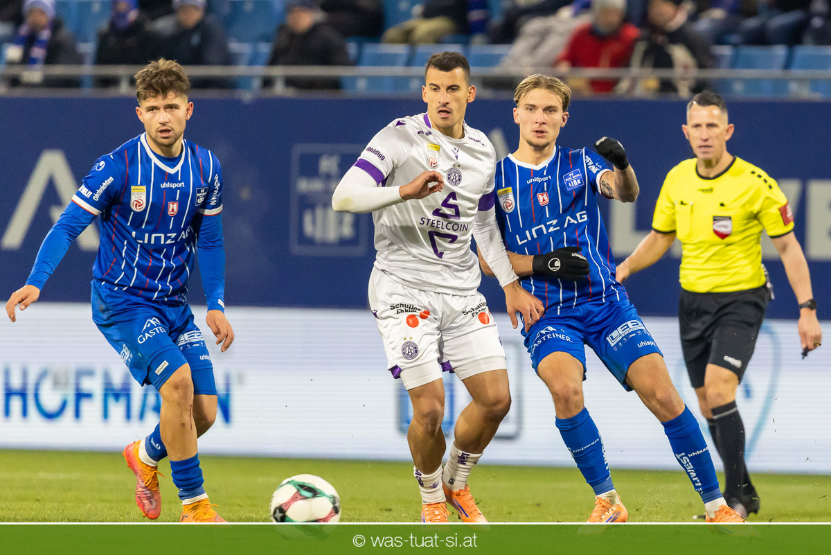 Blau-Weiß blieb danach am Drücker, verpasste aber durch Goiginger, Wähling und Fofana mehrfach die mögliche Führung. Die Veilchen waren hauptsächlich durch Standards gefährlich, fanden jedoch spielerisch lange kaum Lösungen gegen die starke Linzer Defensive.