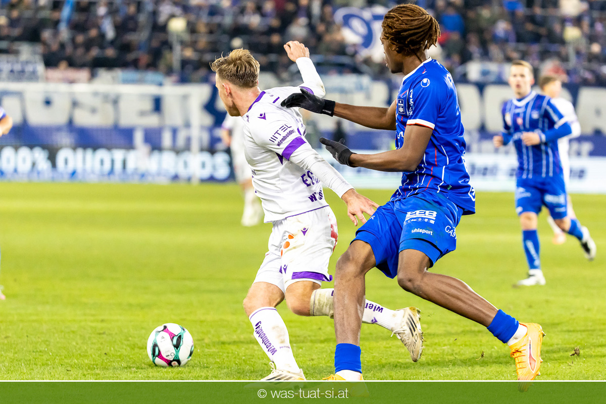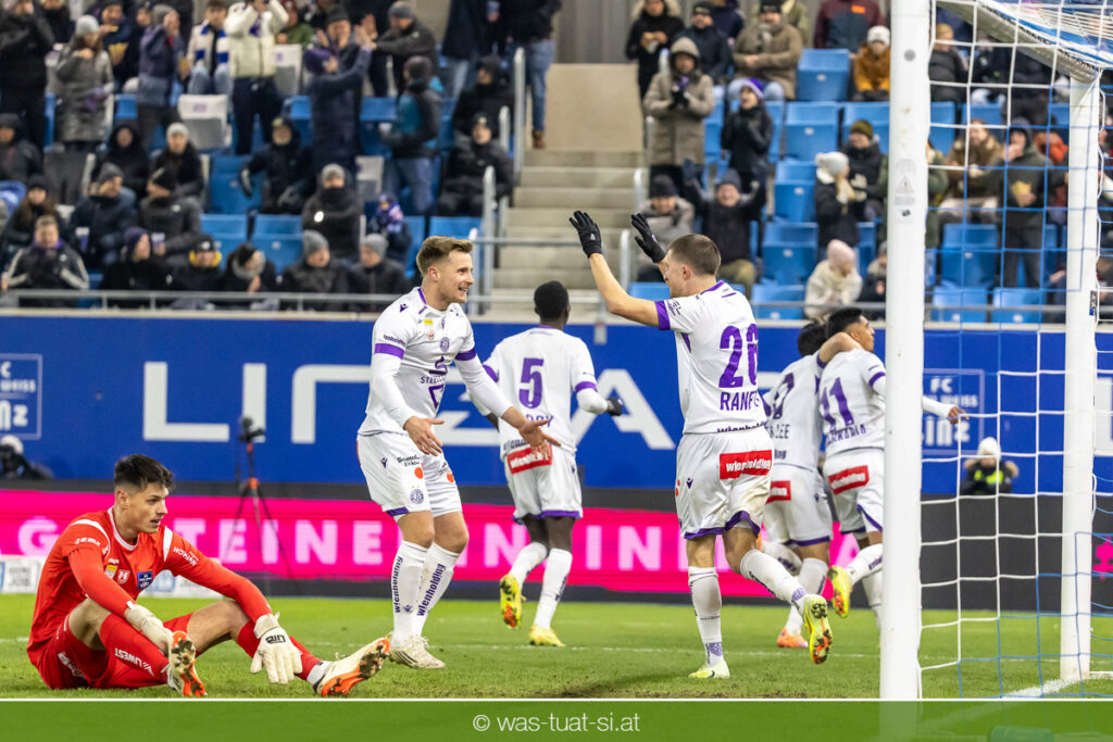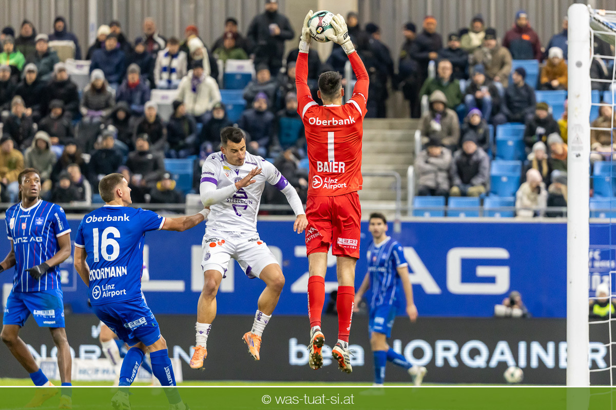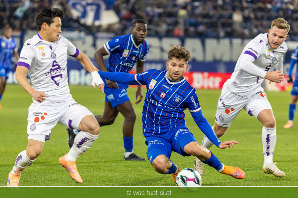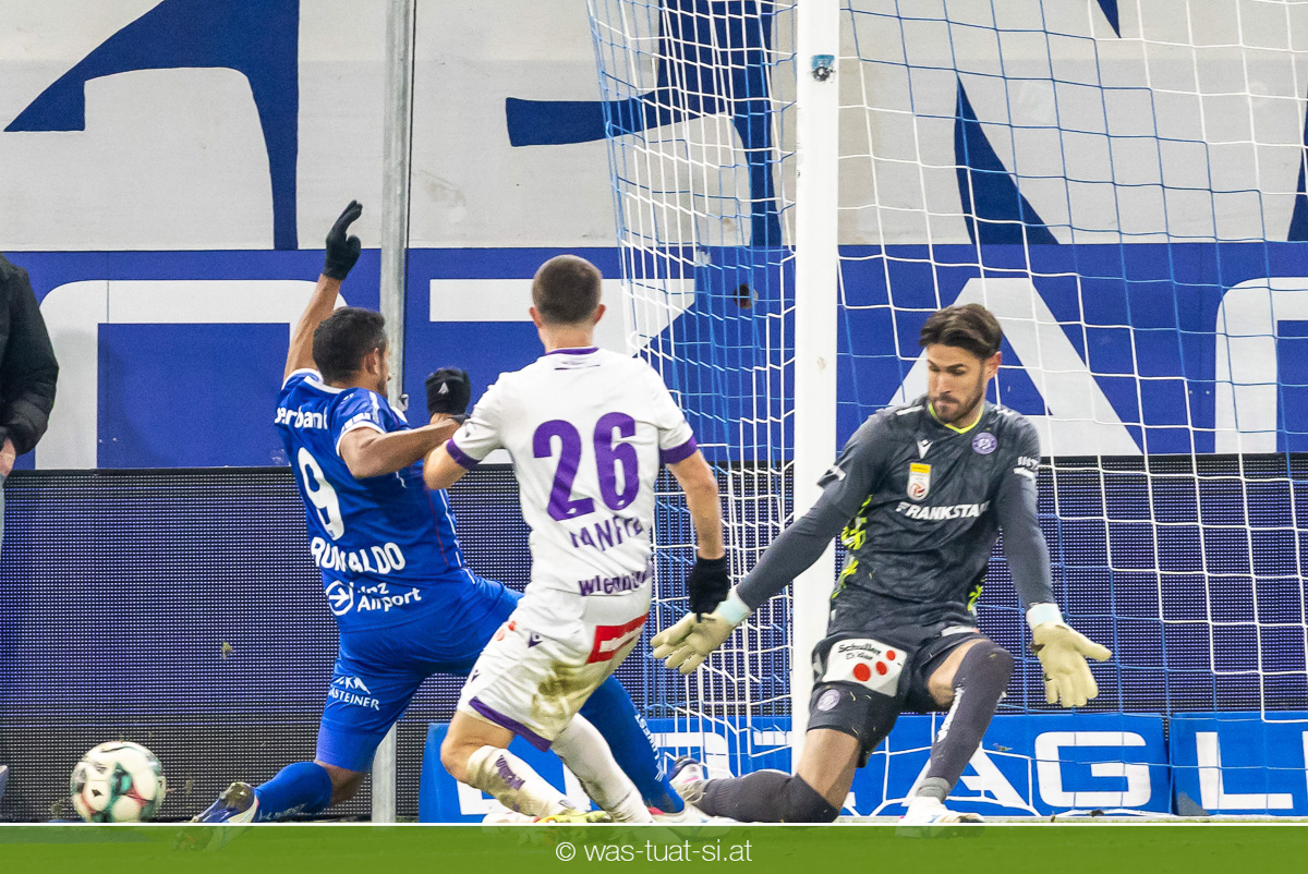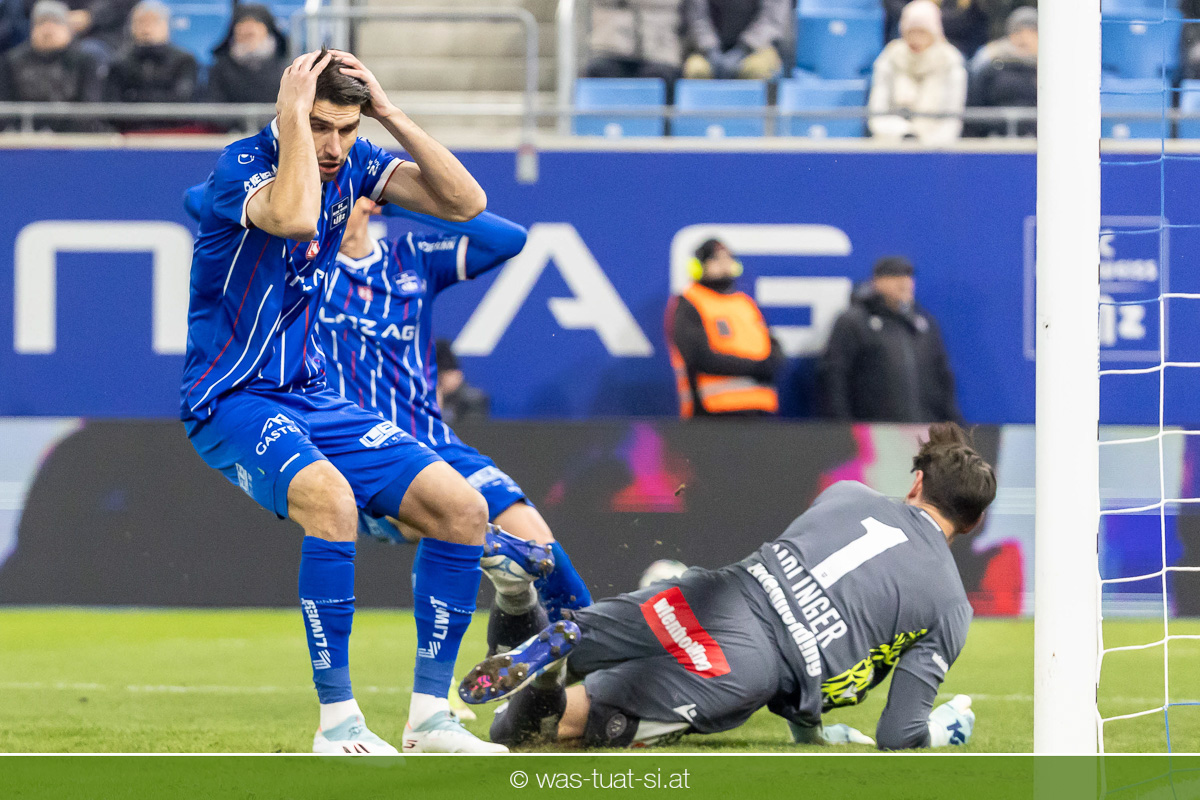 Blau-Weiß blieb danach am Drücker, verpasste aber durch Goiginger, Wähling und Fofana mehrfach die mögliche Führung. Die Veilchen waren hauptsächlich durch Standards gefährlich, fanden jedoch spielerisch lange kaum Lösungen gegen die starke Linzer Defensive.