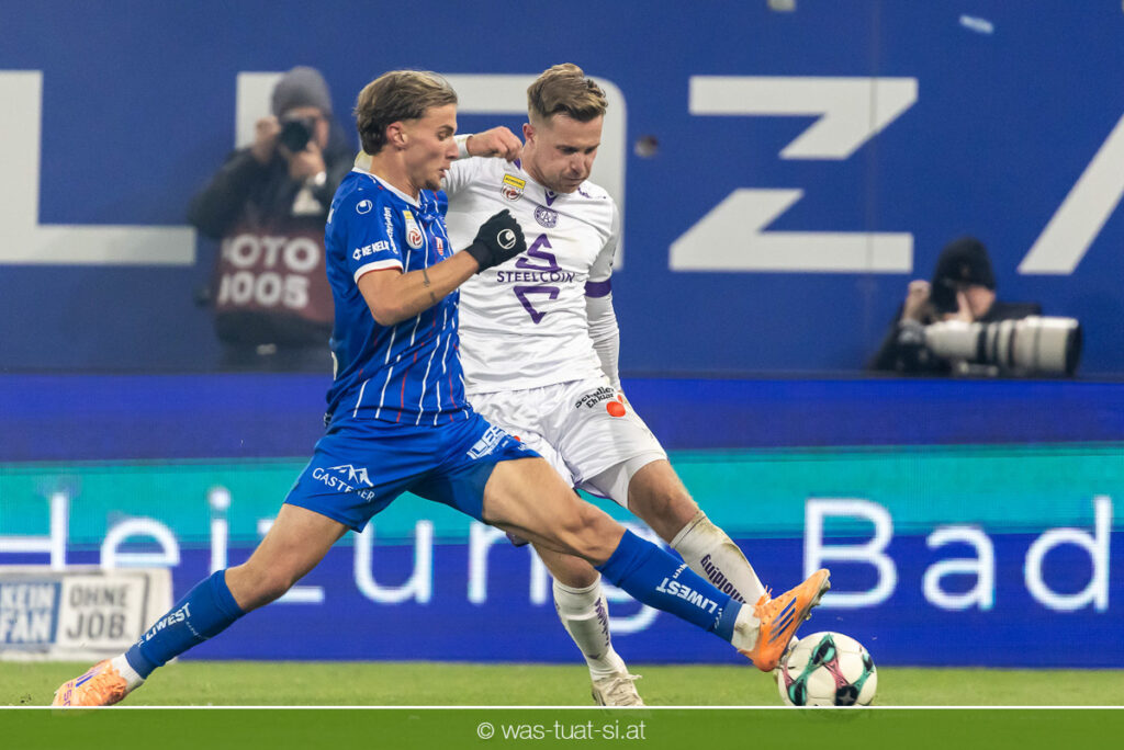 Die zweite Halbzeit begann mit viel Schwung, doch schon früh setzten die Gäste den ersten entscheidenden Stich. Nach einem missglückten Freistoß konterten die Violetten blitzschnell: Ranftl trieb den Ball über rechts, fand Lee im Zentrum, der direkt für Sarkaria ablegte – dieser verwertete eiskalt zum 1:3 (52.). Die Königsblauen wirkten kurz geschockt, kämpften sich aber engagiert zurück ins Spiel. Pasic zwang Sahin-Radlinger nach einem stark getretenen Freistoß zu einer Glanztat (60.), und auch in der Folge suchten die Linzer den Anschluss.