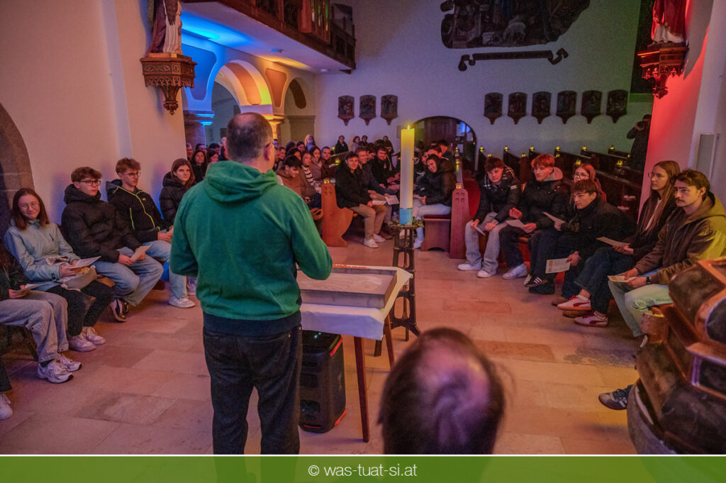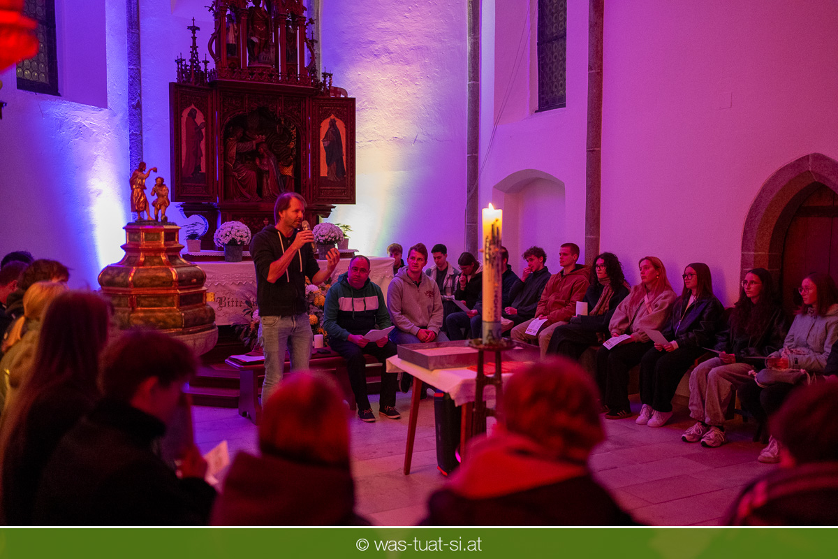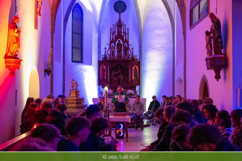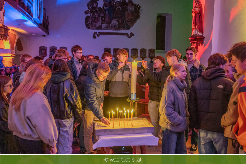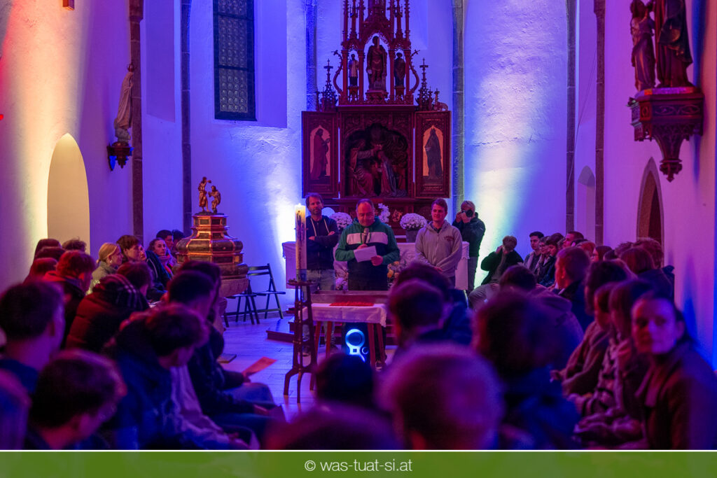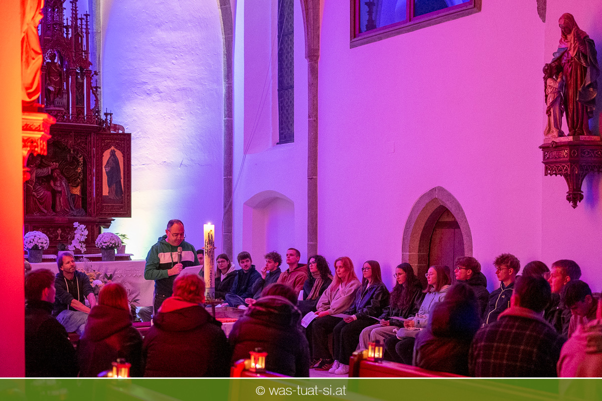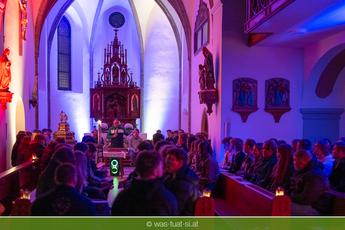 Heute machte das Projekt in Vorderweißenbach Station. Die Pfarrkirche war in buntes Licht getaucht, die Atmosphäre stimmungsvoll. Für viele Jugendliche ist auch eine Kirche ein „lost“ – und wurde an diesem Abend zum lebendigen Begegnungsraum. Danach ging’s ins Wirtshaus: lustig, gesellig und mit neuen Freundschaften über Pfarrgrenzen hinweg.
