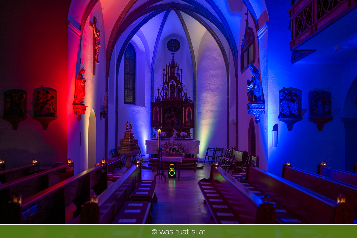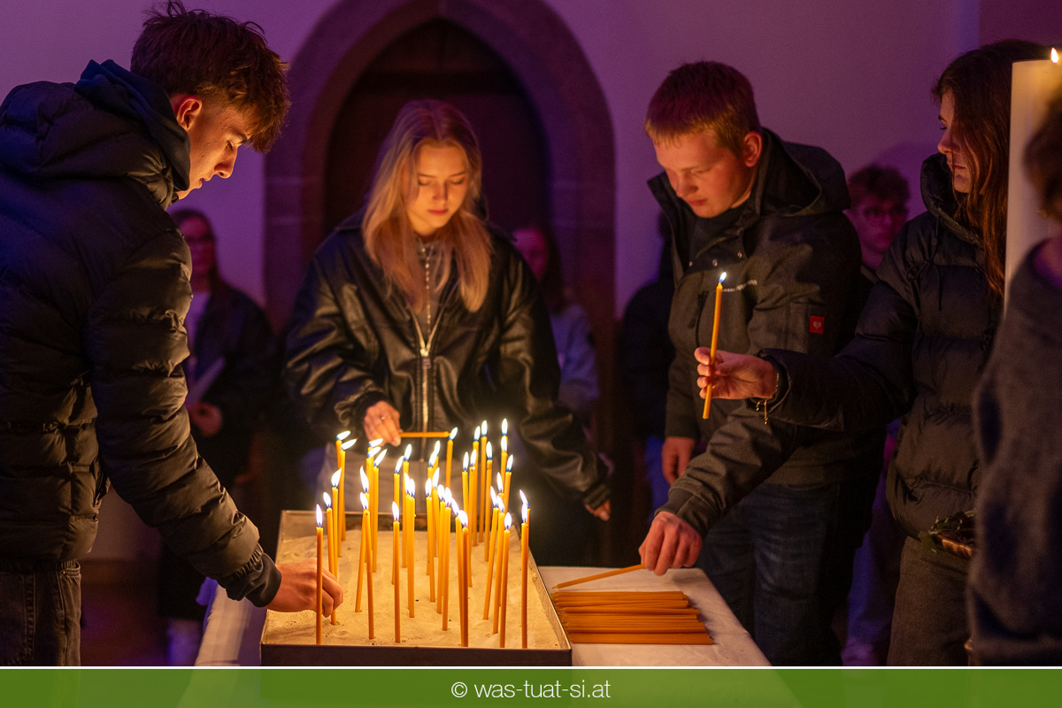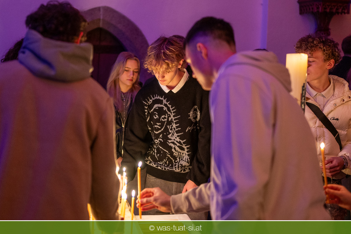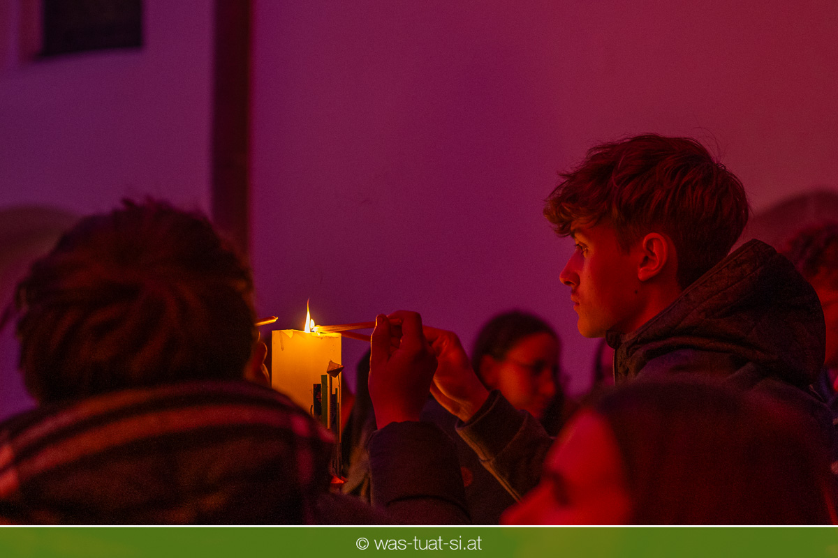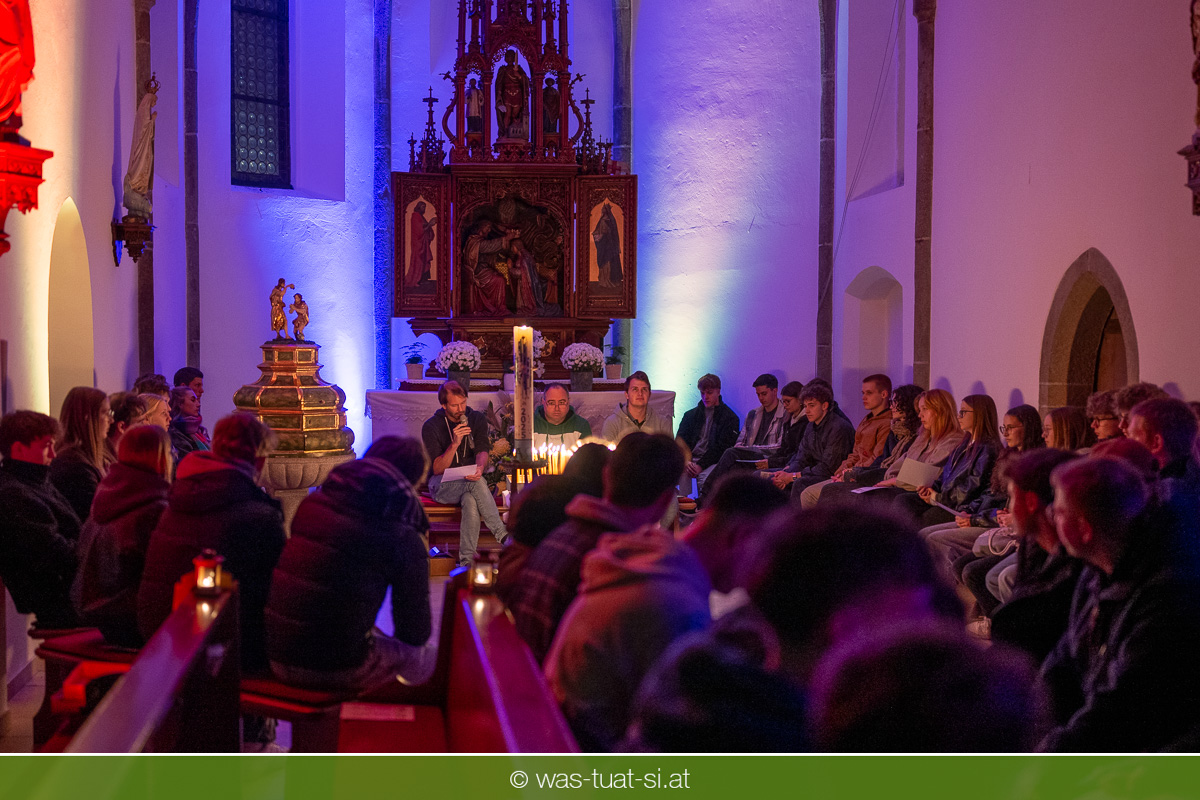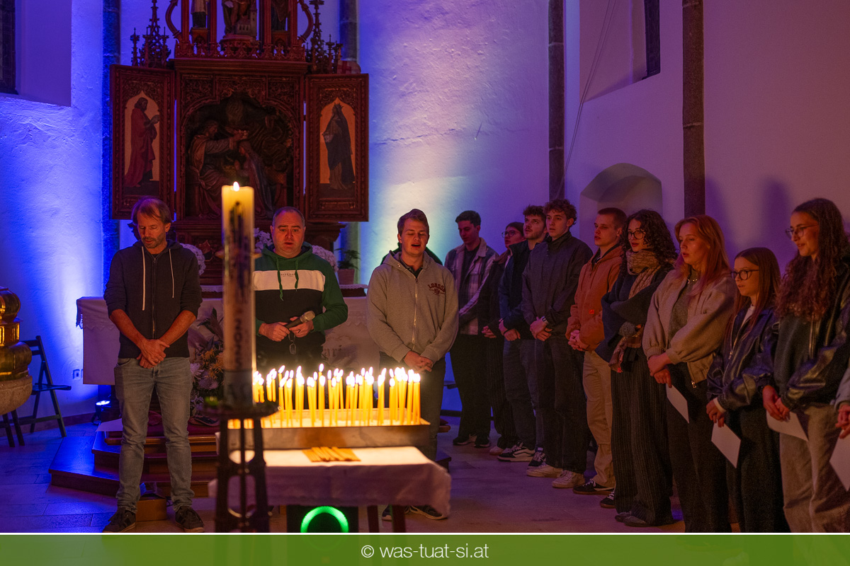 Heute machte das Projekt in Vorderweißenbach Station. Die Pfarrkirche war in buntes Licht getaucht, die Atmosphäre stimmungsvoll. Für viele Jugendliche ist auch eine Kirche ein „lost“ – und wurde an diesem Abend zum lebendigen Begegnungsraum. Danach ging’s ins Wirtshaus: lustig, gesellig und mit neuen Freundschaften über Pfarrgrenzen hinweg.