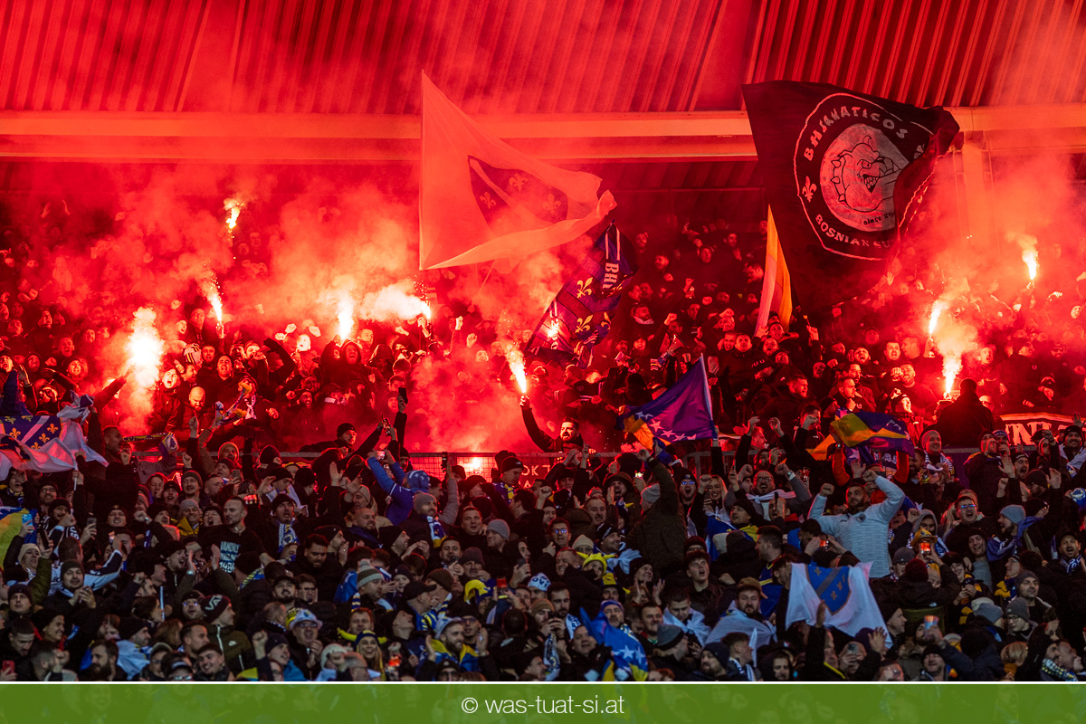 Und einer dieser Neuen bringt das Happeloval zum eskalieren. Sabitzer bringt den Ball von rechts zur Mitte, Arnautovic irritiert Vasilj, die Kugel landet an der Latte, springt zu Michael Gregoritsch und der hämmert den Ball zum verdienten Ausgleich in die Maschen (77.).