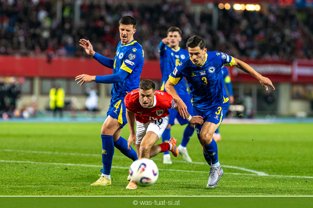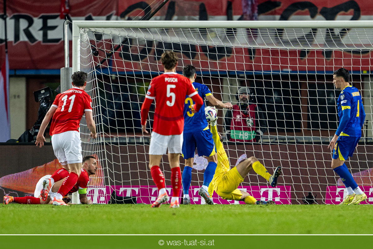 In den letzten Minuten bringen die Gäste noch einmal Offensivkräfte, aber Österreichs Defensive lässt keine Chance zu. Die ÖFB-Elf ist ganz klar Herr im eigenen Stadion. Kurz vor Schluss hat Gregoritsch im Konter die große Chance auf die Entscheidung, aber Vasilj hält sein Team im Spiel (89.).