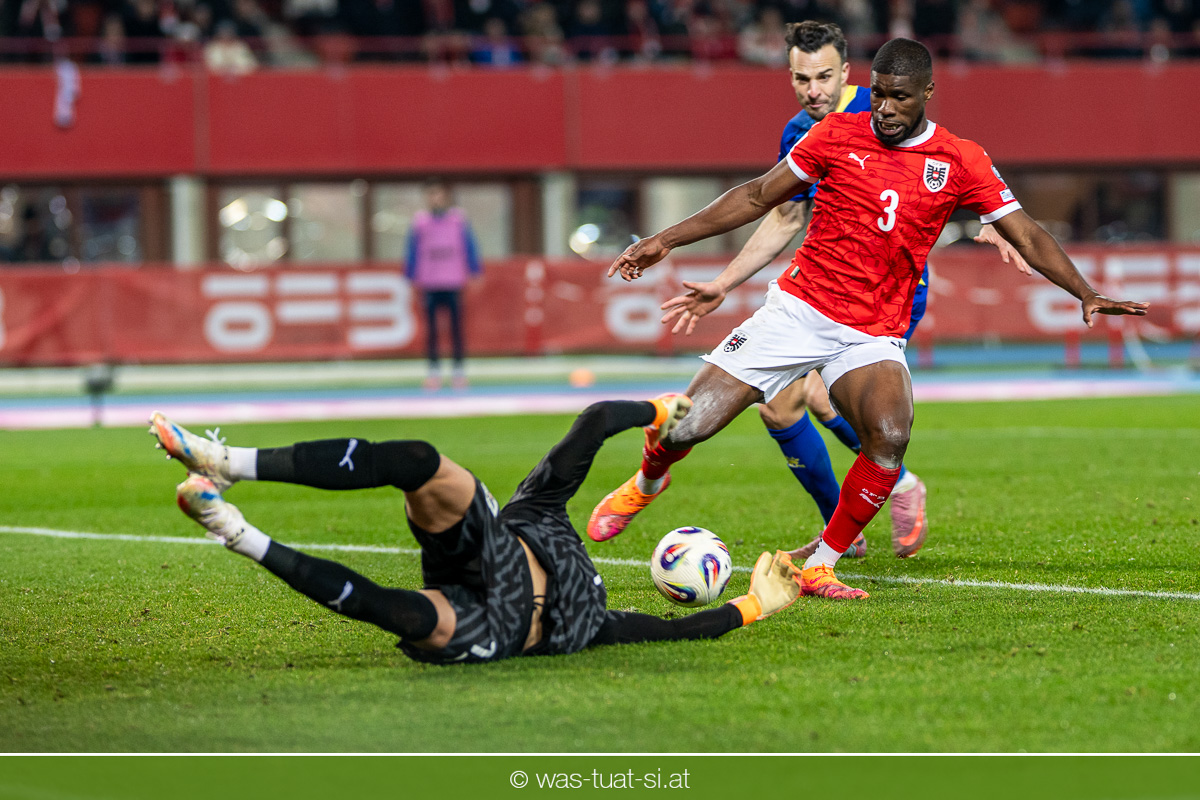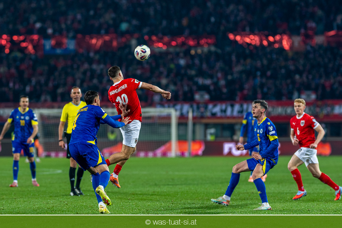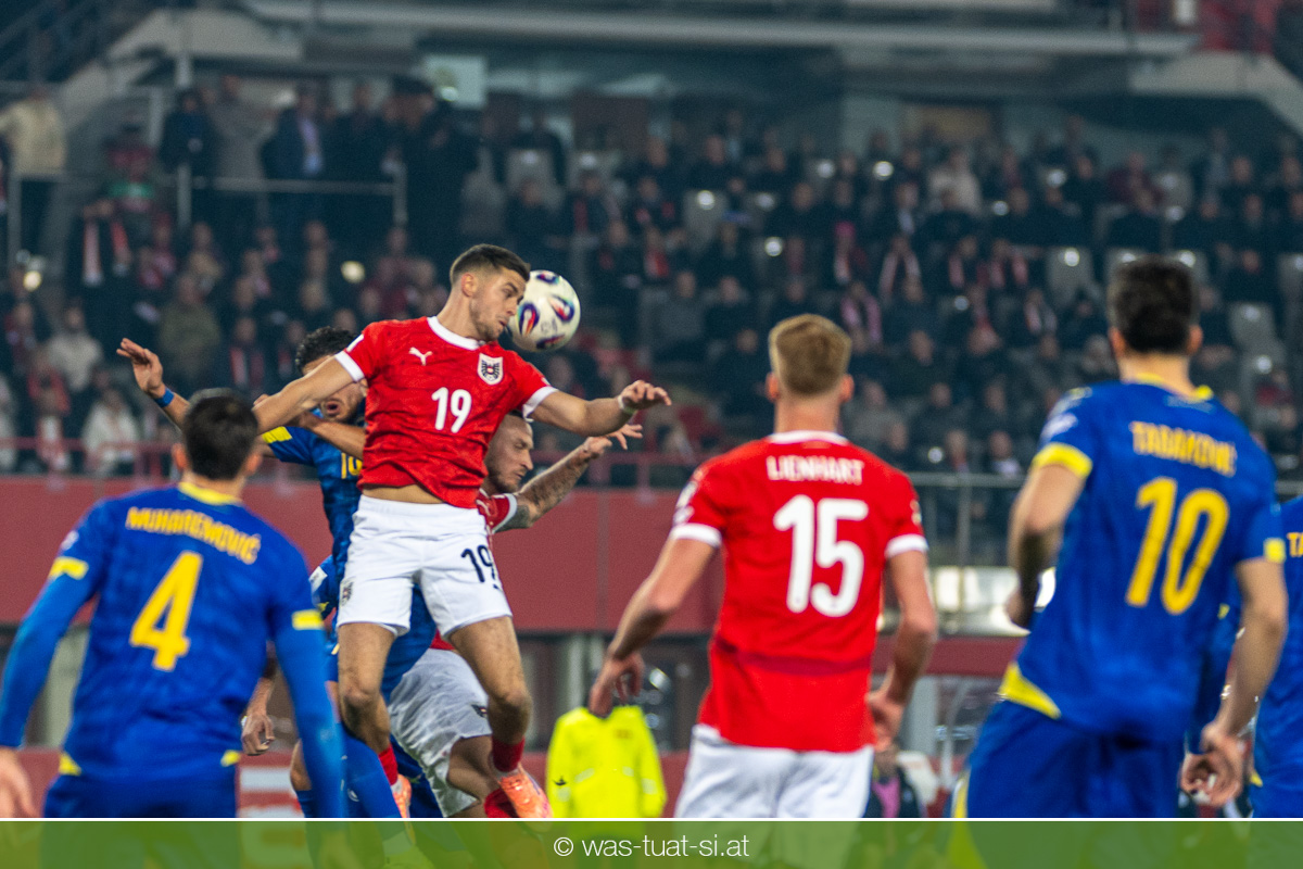 Das ÖFB-Team startet engagiert in die Partie. Den ersten Torabschluss gibt es in Minute sieben zu verzeichnen, Patrick Wimmer schießt nach einer Mwene-Flanke von links drüber. Der Mainz-Legionär ist auch Initiator der nächsten Möglichkeit. Seine Flanke findet am Fünfmeterraum Christoph Baumgartner, der den Kopfball nicht auf das Tor bringt (9.).