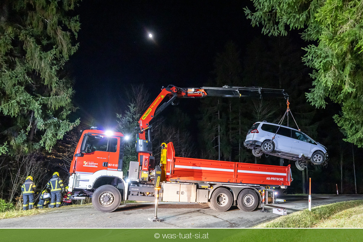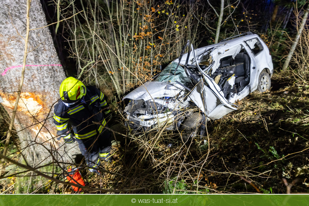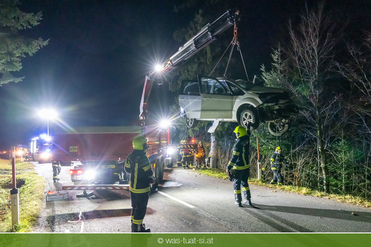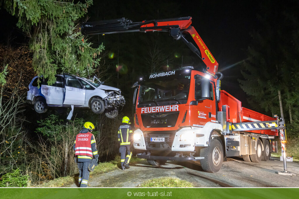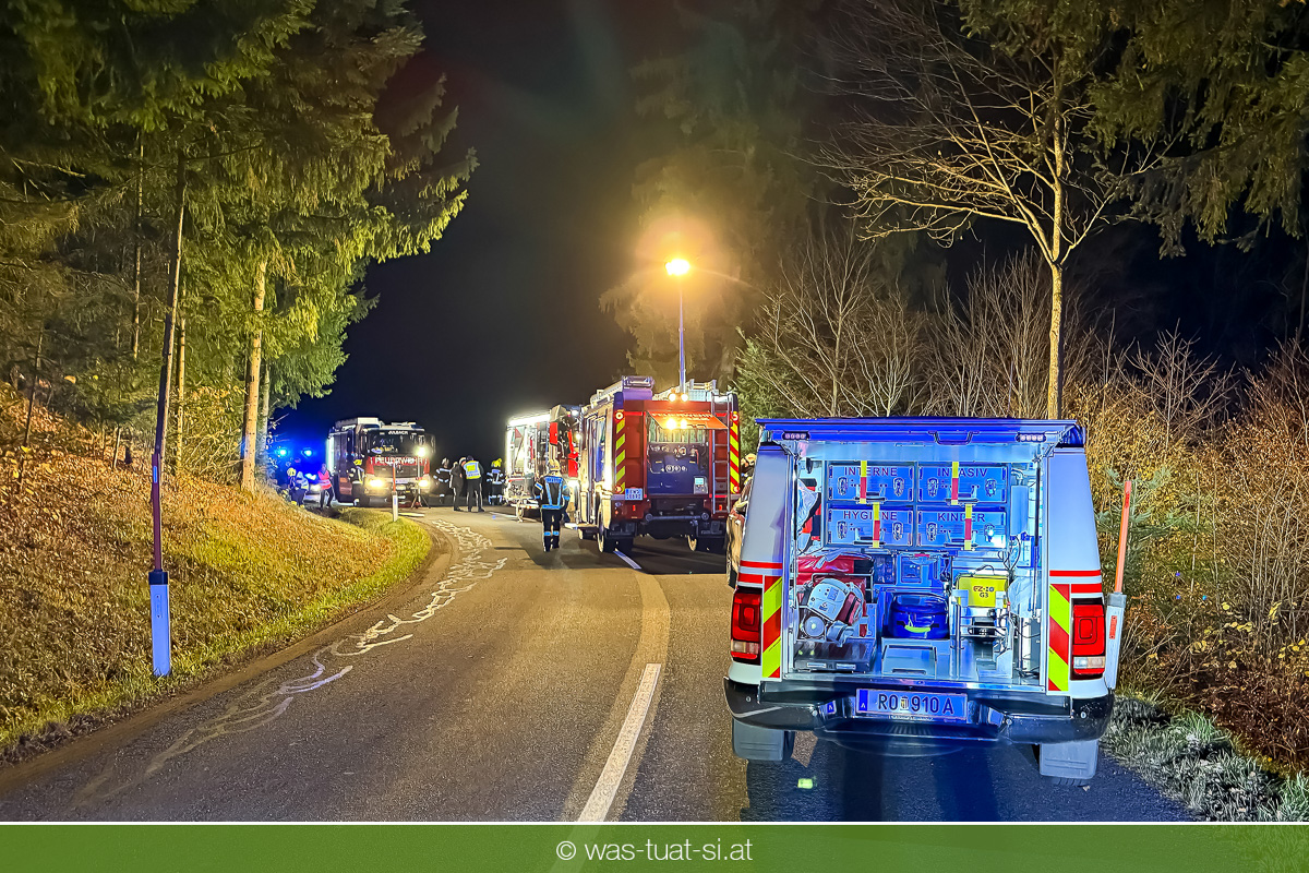 Am Freitagabend, kam es im Gemeindegebiet von Julbach (Bezirk Rohrbach) zu einem folgenschweren Verkehrsunfall. Aus bislang ungeklärter Ursache verlor ein Autofahrer die Kontrolle über sein Fahrzeug, kam von der Fahrbahn ab und krachte frontal gegen einen Baum. Der Lenker wurde dabei im Wrack eingeklemmt. Die Feuerwehren Julbach, Peilstein, Ulrichsberg und Ödenkirchen wurden alarmiert. Die Einsatzleitung übernahm die Feuerwehr Ulrichsberg, die gemeinsam mit der FF Julbach die Menschenrettung durchführte. Nach medizinischer Erstversorgung durch das Rote Kreuz und einen Notarzt wurde der Schwerverletzte ins Krankenhaus gebracht. Zur Bergung des Unfallfahrzeugs wurde die FF Rohrbach mit dem Wechselladefahrzeug (WLF) hinzugezogen.