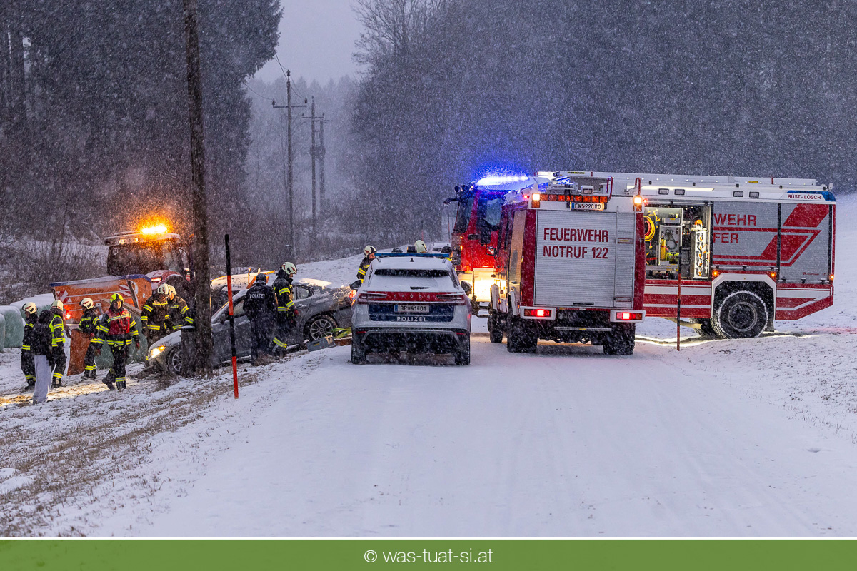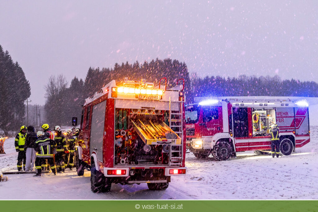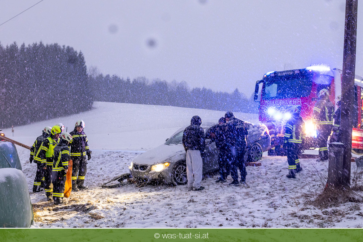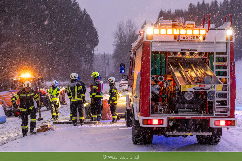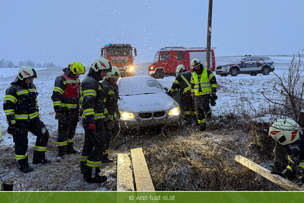 Heute um 16:56 Uhr wurde die FF Klaffer zu einer PKW-Bergung alarmiert. Ein Fahrzeug war bei starkem Schneefall von der Fahrbahn abgekommen und quer über einen Bach zum Stillstand gekommen.