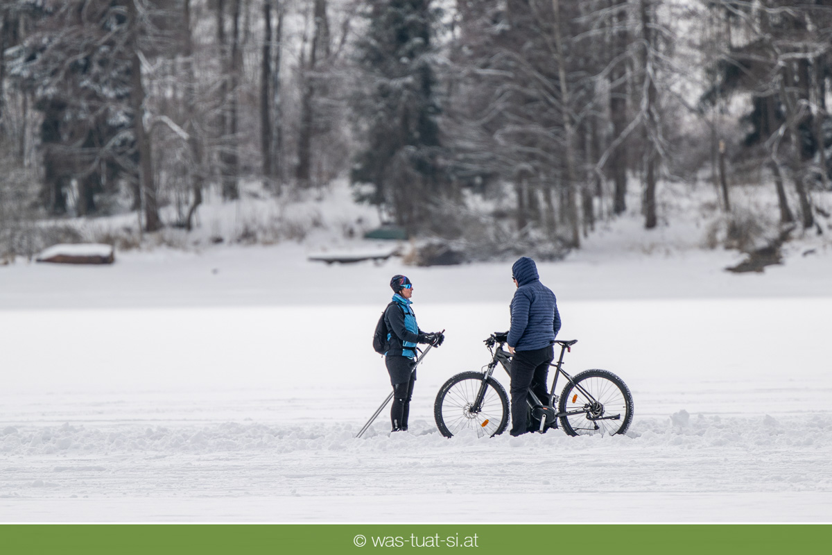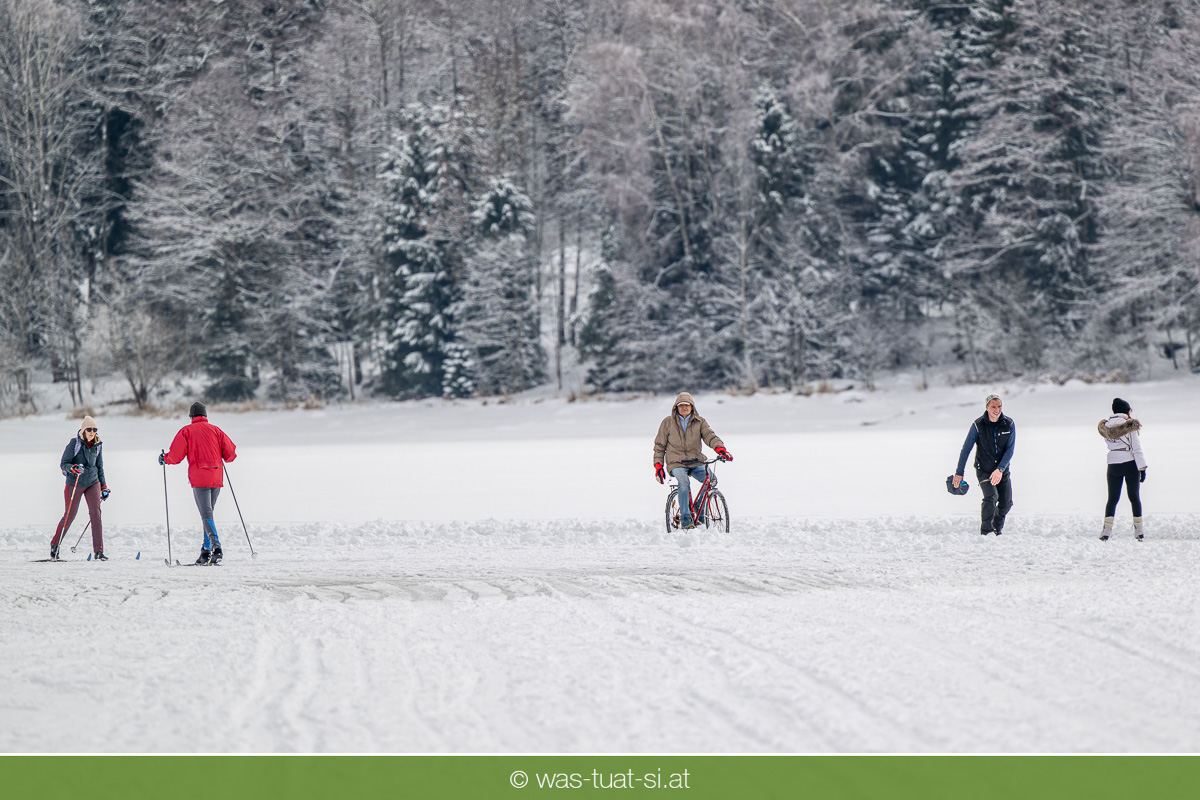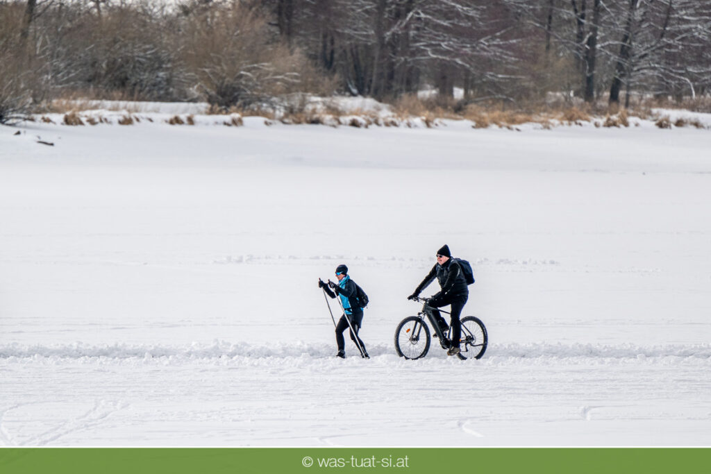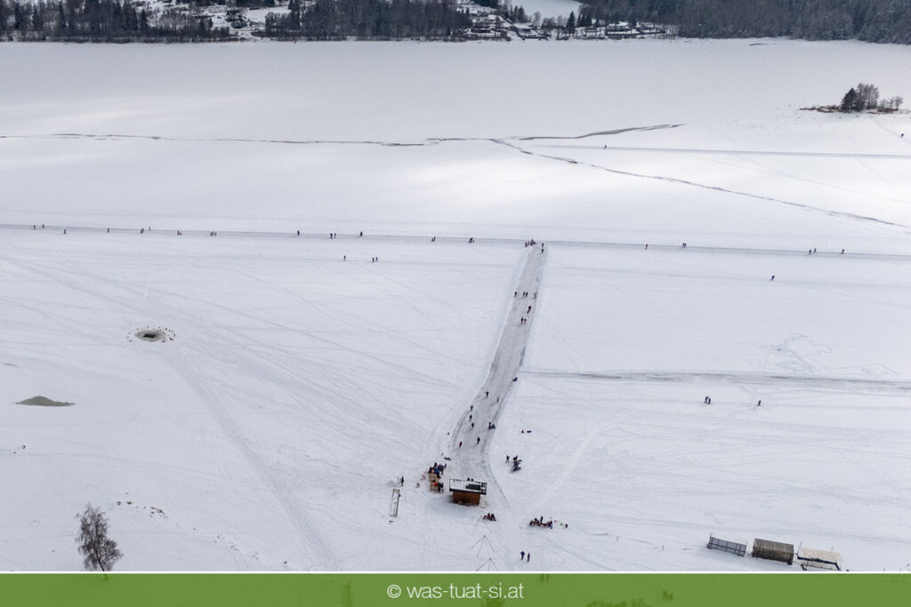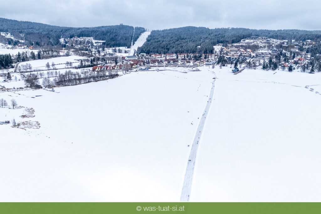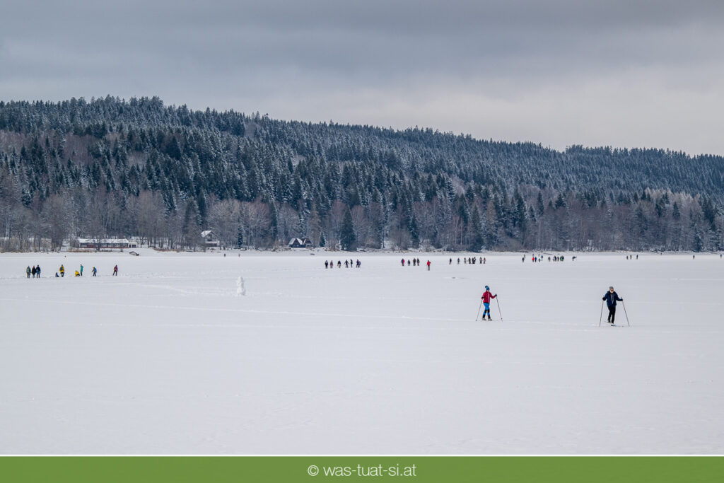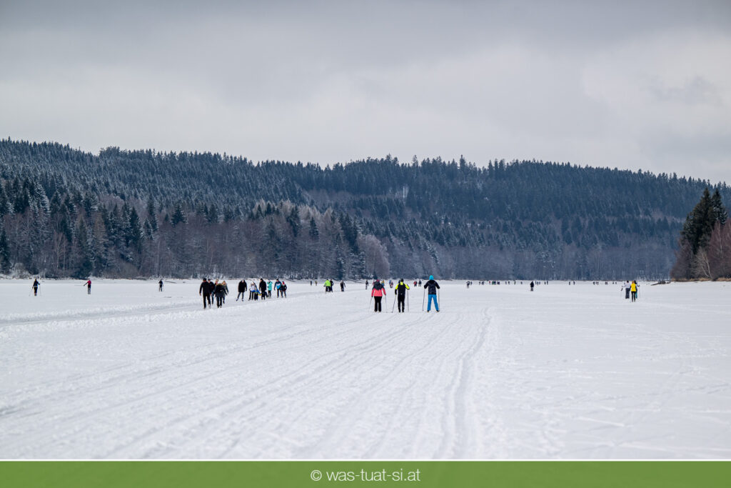 Bis zu 38 Kilometer lang ist die spektakuläre Schlittschuhtrasse auf dem zugefrorenen Lipno-Stausee – bei guten Bedingungen eine der längsten Natureisbahnen. Sie verbindet die Orte Horní Planá und Lipno nad Vltavou und bietet traumhafte Ausblicke und sportlichen Winterspaß. Ob auf Schlittschuhen, Langlaufskiern oder sogar mit dem Mountainbike: Das glatte Eis ist für alle ein Erlebnis. Die größte Wasserfläche der Region friert meist ab Dezember zu. Sobald die Eisdecke dick genug ist, werden sichere Zutrittsstellen markiert und die Bahnen präpariert.