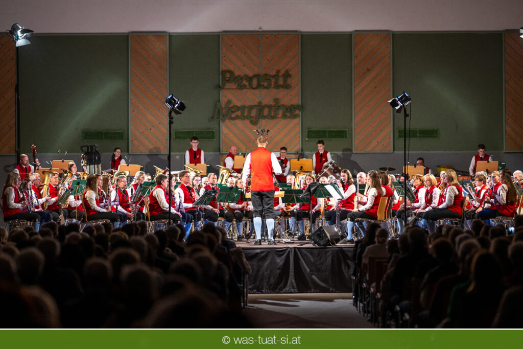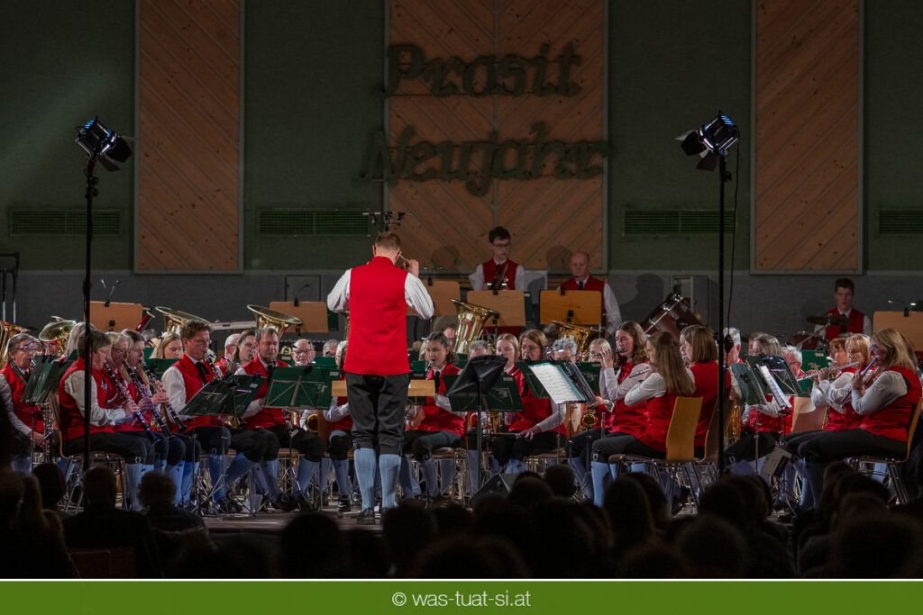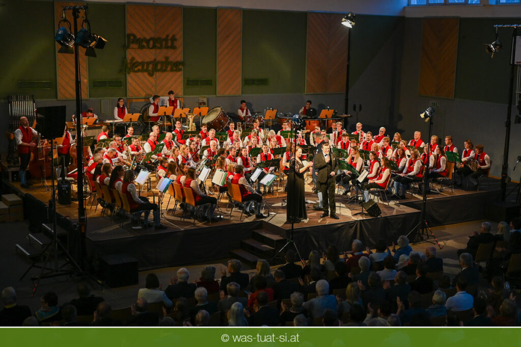 Mit einem wahren musikalischen Feuerwerk begrüßte die Trachtenmusikkapelle Bad Leonfelden das Jahr 2026: Gemeinsam mit den Solisten Carina Hohner und Nik Raspotnik nahm sie hunderte begeisterte Besucher beim traditionellen Neujahrskonzert in der Sport- und Veranstaltungshalle auf eine klangliche Reise durch die Welt der Klassik und des Schlagers mit.