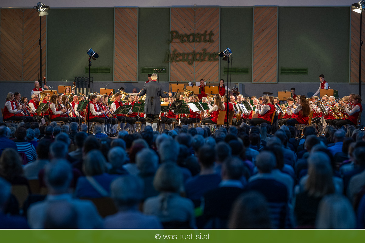 Mit einem wahren musikalischen Feuerwerk begrüßte die Trachtenmusikkapelle Bad Leonfelden das Jahr 2026: Gemeinsam mit den Solisten Carina Hohner und Nik Raspotnik nahm sie hunderte begeisterte Besucher beim traditionellen Neujahrskonzert in der Sport- und Veranstaltungshalle auf eine klangliche Reise durch die Welt der Klassik und des Schlagers mit.