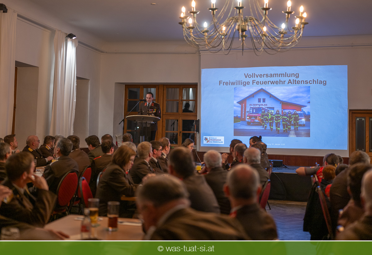 Am Freitag, den 16. Jänner 2026, versammelten sich die Mitglieder der Freiwilligen Feuerwehr Altenschlag im Gasthof Haudum in Helfenberg zur jährlichen Vollversammlung. Kommandant Andreas Breiteneder konnte neben zahlreichen Mitgliedern samt Feuerwehrjugend auch Ehrengäste aus der Politik und dem Bezirks-Feuerwehrkommando begrüßen. Im Mittelpunkt des Abends stand der Rückblick auf das vergangene Einsatz- und Ausbildungsjahr 2025. Für das laufende Jahr 2026 stehen bereits große Aufgaben an. Neben der kontinuierlichen Ausbildung und dem Übungsbetrieb, gibt es wieder einige Veranstaltungen, wie am 13.02.26 der LEDERHOSENBALL, das ALTENSCHLÄGERFEST ist vom 25.-26. April 2026 und die Austragung der THL TAGE 2026, bei dem Event vom 25.-26. September zeigen nationale und internationale Technical Rescue Teams ihr Können. Dazu werden Alle herzlich eingeladen.