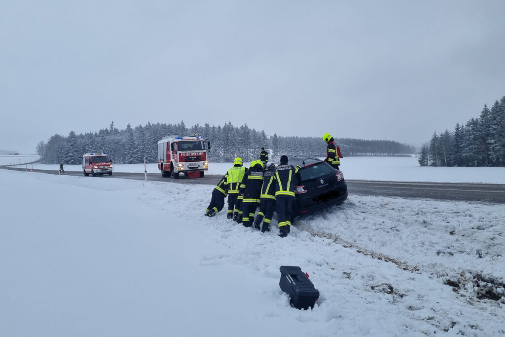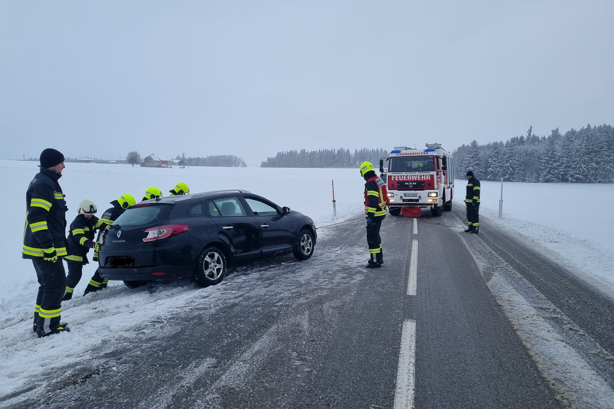Am Faschingsdienstag wurden die FF Schenkenfelden und die FF Königschlag bereits in der Früh per Sirene zu einer PKW Bergung alarmiert. Zwischen der Kamplmühle und Reichenthal landete ein PKW im Straßengraben und konnte im Tiefschnee seine Fahrt nicht mehr fortsetzen. Mit Hilfe der Seilwinde des Rüstlöschfahrzeuges wurde der PKW vom Straßengraben geborgen, dieser konnte im Anschluss die Fahrt wieder fortsetzen. Schon nach kurzer Zeit konnten die beiden Feuerwehren wieder ins Feuerwehrhaus einrücken.