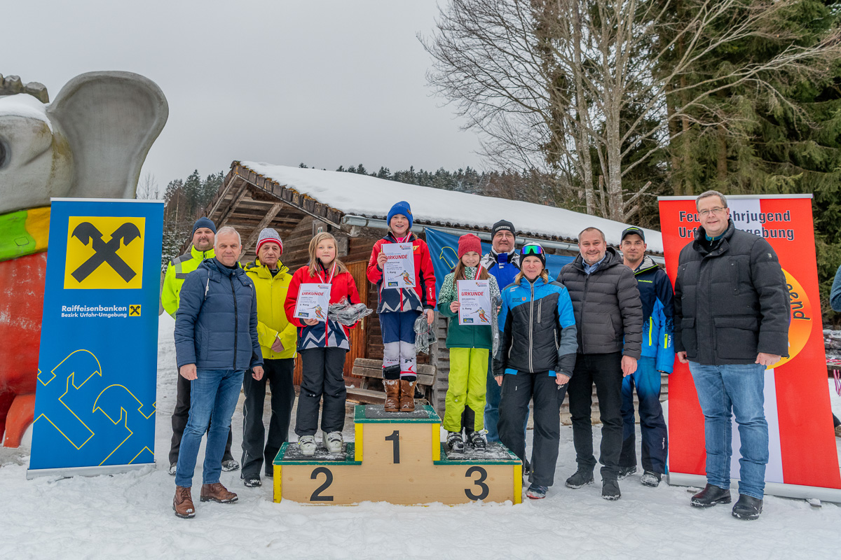 Bei der Schlussveranstaltung konnten Bezirks-Feuerwehrkommandant Johannes Enzenhofer und Abschnitts-Feuerwehrkommandant Kurt Reiter den Bürgermeister von Bad Leonfelden Thomas Wolfesberger, den Vorstandsvorsitzenden der Raiffeisenbank Region Bad Leonfelden Gerhard Stumptner, Sektionsleiterin Ski Alpin der Sportunion Bad Leonfelden Petra Preinfalk und Betriebsleiter der Sternsteinlifte Leo Hartl begrüßen.