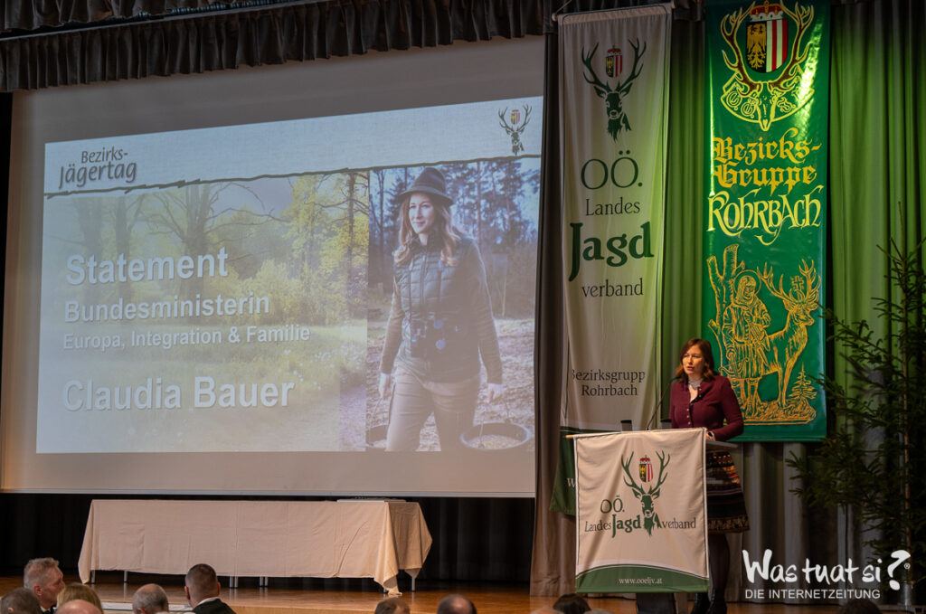 Bezirkshauptmann HR Mag. Valentin Pühringer richtete ebenso freundliche Grußworte wie Bundesministerin Claudia Bauer, die selbst Jägerin ist und dankten für die tolle Arbeit die in der Natur verrichtet wird.