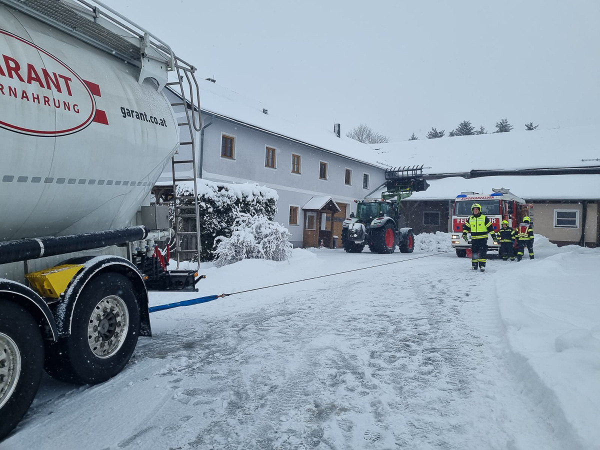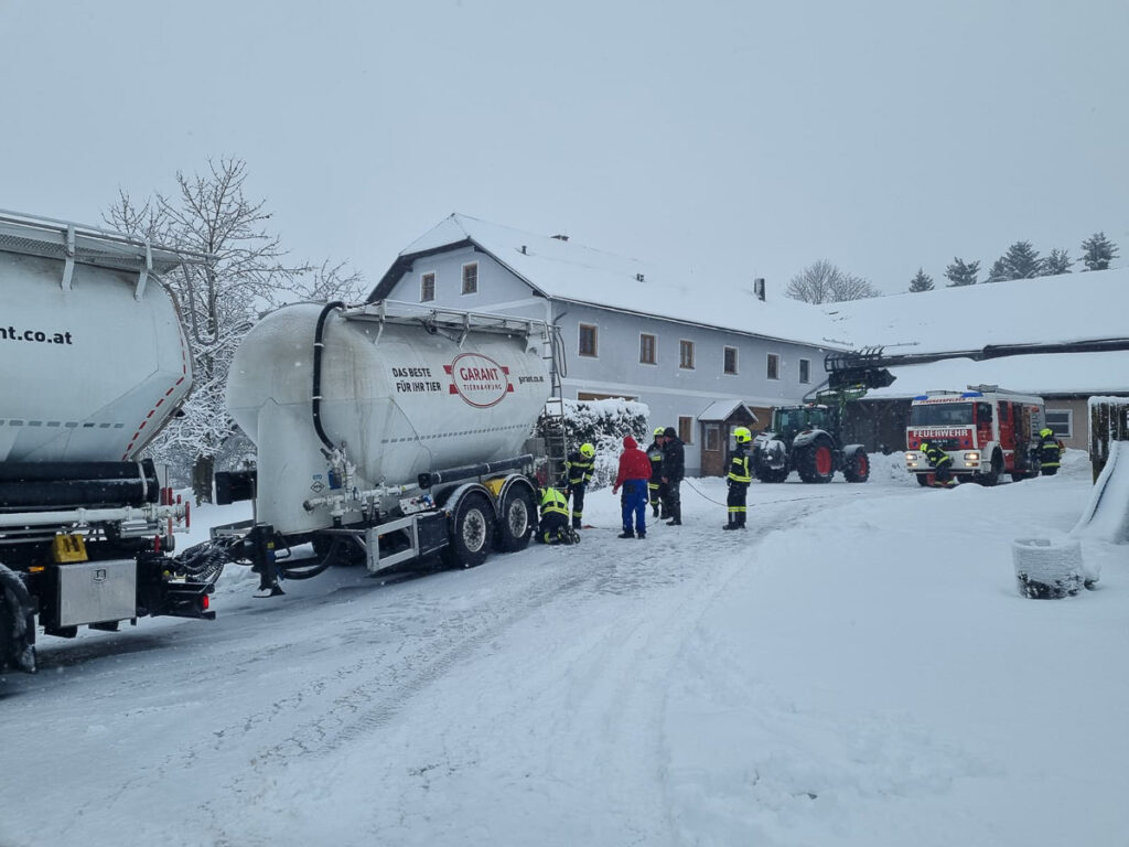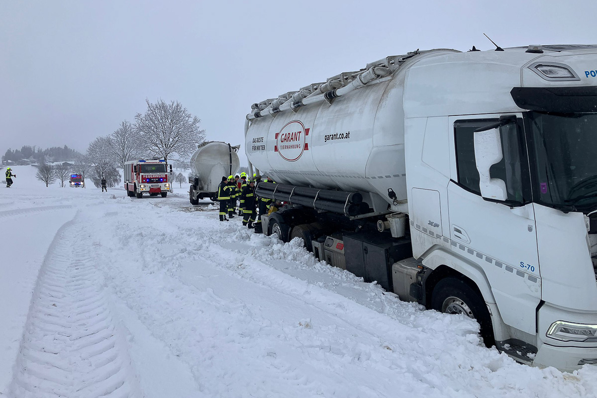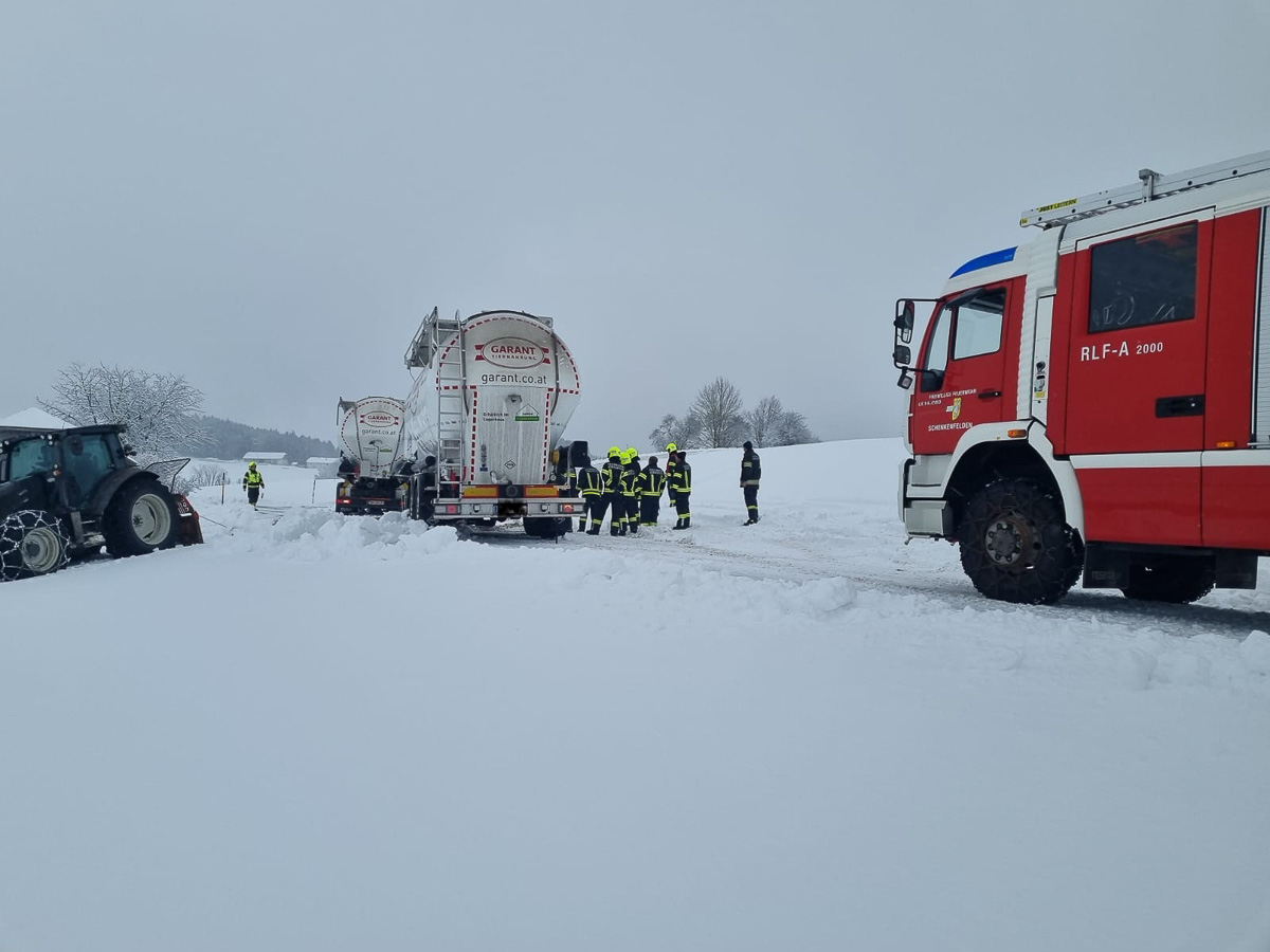 Kurz nach dem Einrücken von einer PKW-Bergung wurde die FF Schenkenfelden erneut alarmiert. Die winterlichen Fahrbahnverhältnisse setzten diesmal einem LKW samt Anhänger zu.