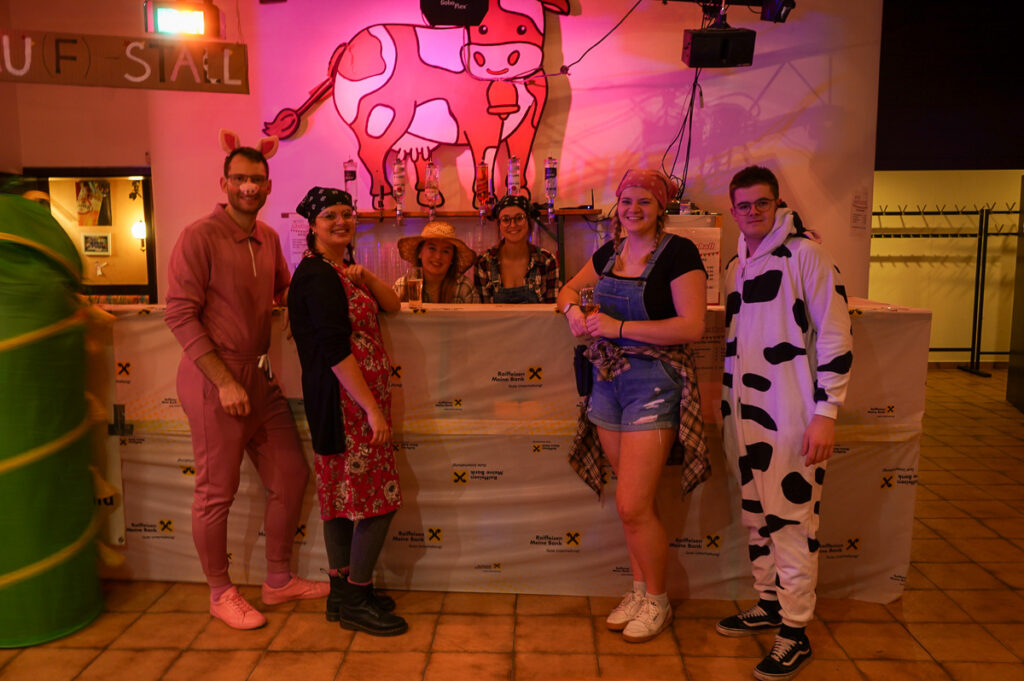 Auch der fünfte Maskenball in Folge, unter der perfekten Organisation vom Musikverein mit Obmann Lukas Knogler, war ein ausgesprochener Höhepunkt im Faschingskalender der Marktgemeinde Oberneukirchen. Das ehemalige Gasthaus Obernberger verwandelte sich wieder in eine funkelnde Ball-Location zum Thema Bauernhof. Wenn Kühe, Bienen und Hühner gemeinsam mit feschen Siloballen und den Spice Girls tanzen, Schweine feiern und der Heuboden bebt, dann fühlen sich eben alle „sauwohl“. Für musikalische Unterhaltung und ausgelassene Stimmung auf dem Dancefloor sorgte die Hausband Lisa und „The Mellows“ in gewohnt perfekter Art und Weise.