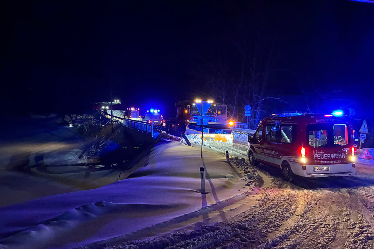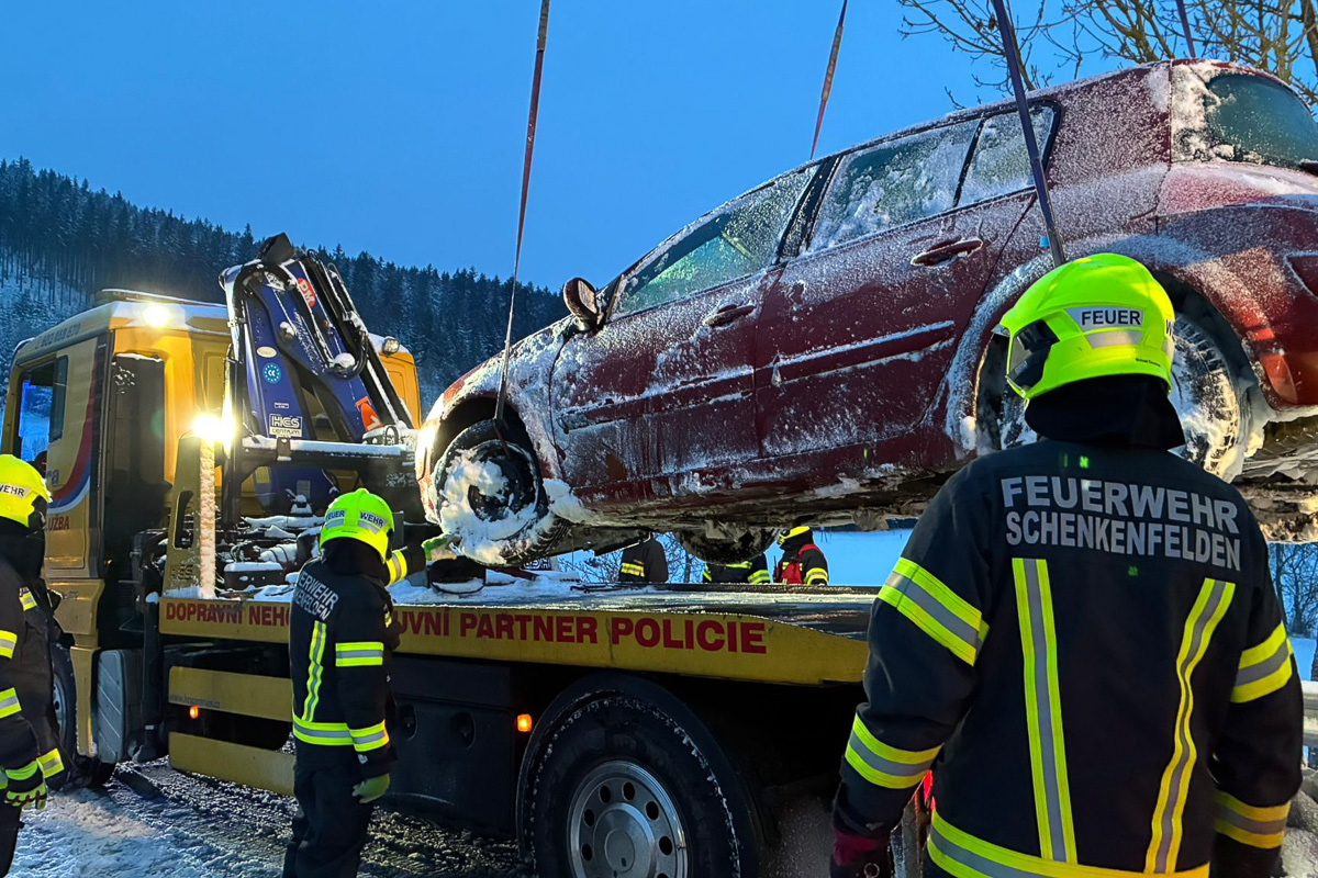 Am Freitagmorgen wurden die Feuerwehren Schenkenfelden und Königschlag zu einem Verkehrsunfall Aufräumarbeiten in die Kamplmühle alarmiert. Bei winterlichen Verhältnissen ist ein PKW von der Straße abgekommen und hat sich überschlagen. Der verletzte Lenker wurde durch das Rote Kreuz erstversorgt, mit Hilfe des Last-Kranfahrzeuges der FF Bad Leonfelden wurde der PKW vom Graben geborgen und einem Abschleppunternehmen übergeben. Die Straße war für den Zeitraum des Einsatzes für den restlichen Verkehr gesperrt. Etwa nach eineinhalb Stunden konnte die Einsatzbereitschaft wiederhergestellt werden.