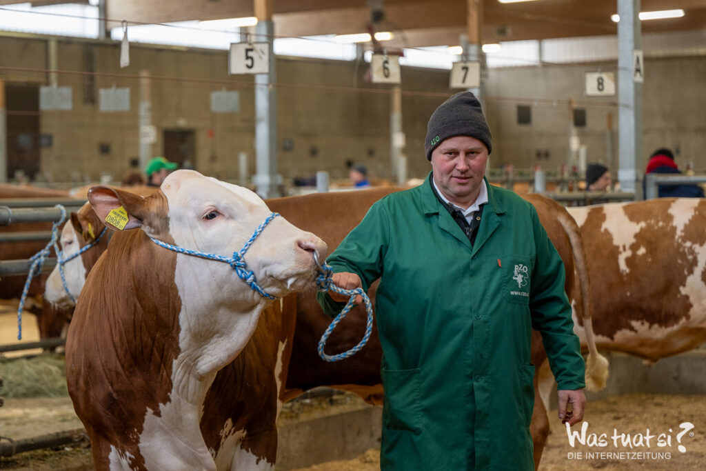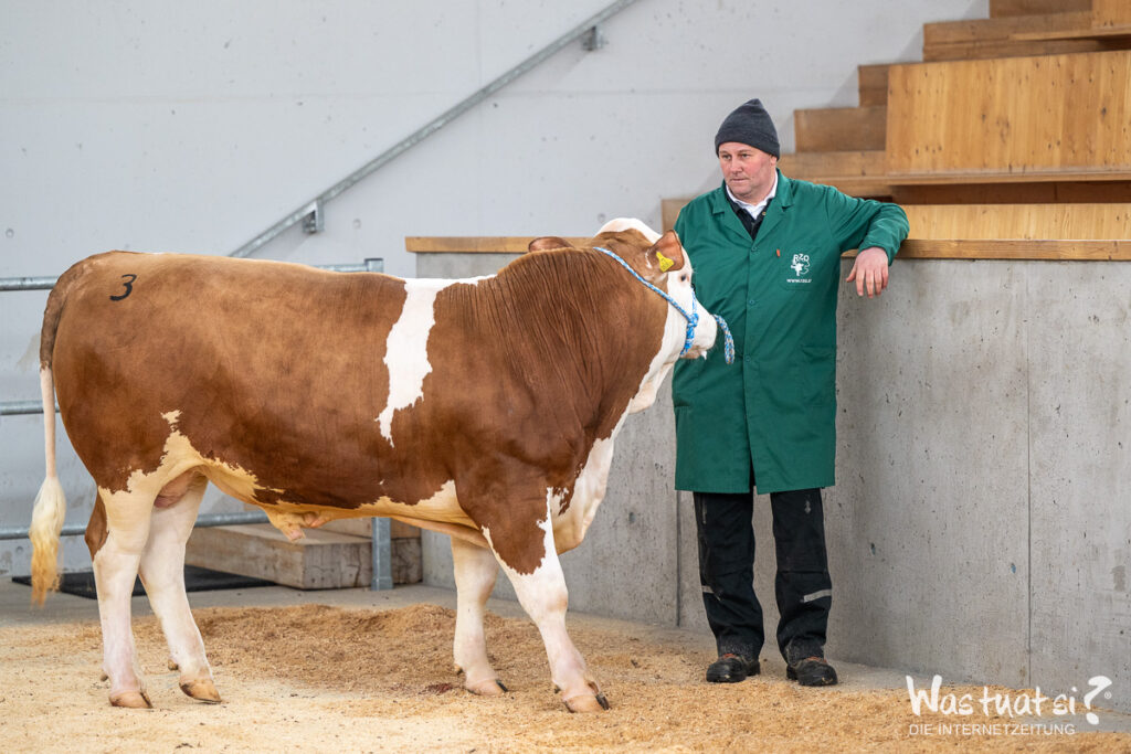 40 Fleckviehkühe und zwei Holstein-Kühe sorgten mit ordentlichen Milchleistungen und starkem Exterieur für eine starke Nachfrage trotz aktuell rückläufiger Milchpreise. Auffallend stark gefragt waren robotertaugliche Kühe. Den Tageshöchstpreis bei den Kühen in Milch erzielte eine leistungsstarke Meverik Pp*-Tochter (St.Nr. 93) mit garantiert 35 kg und hochsitzendem, drüsigen Euter. Die vielen privaten Käufer sorgten somit für einen tollen Durchschnittspreis von € 3.325,- was zeigt, dass Qualität seinen Preis hat.