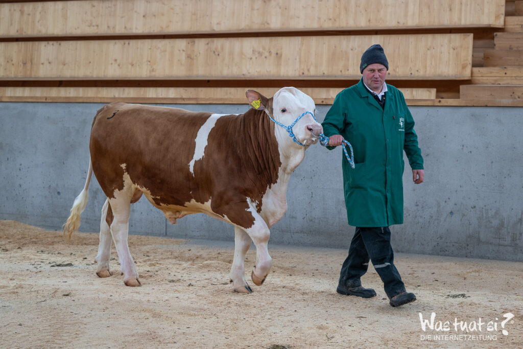 Bei den Jungstieren waren vier der fünf angebotenen Stiere genetisch hornlos und alle bestens entwickelt. Den Tageshöchstpreis von € 4.800,- erzielte ein mischerbig hornloser Heiss-Sohn mit extremer Bemuskelung, exzellentem Linear und einem GZW von 138, was dem Niveau eines Besamungsstieres entspricht.