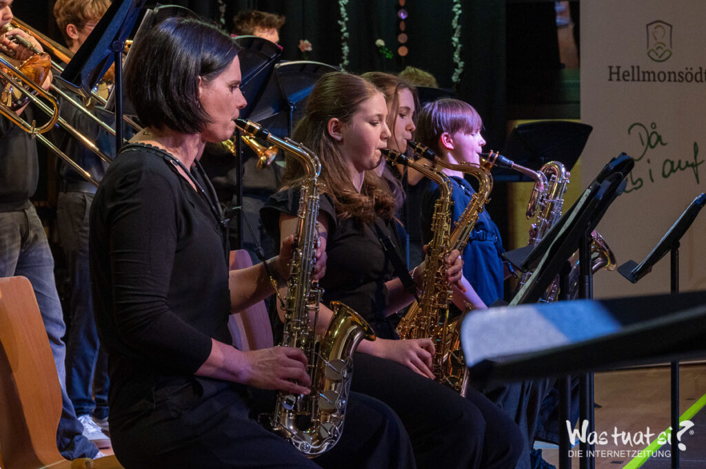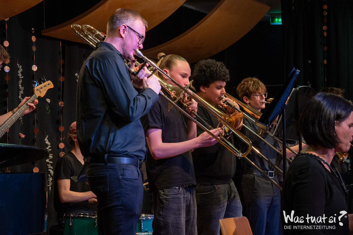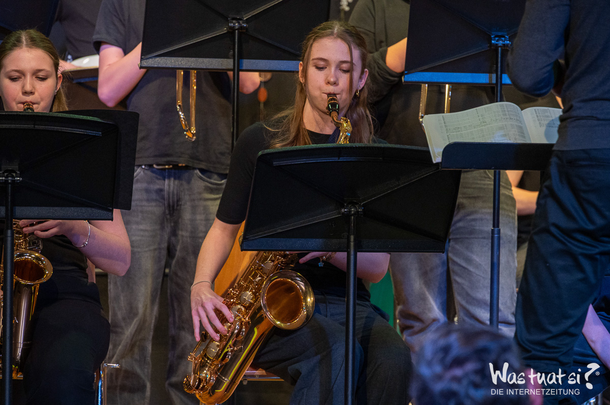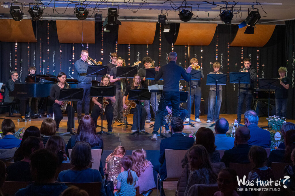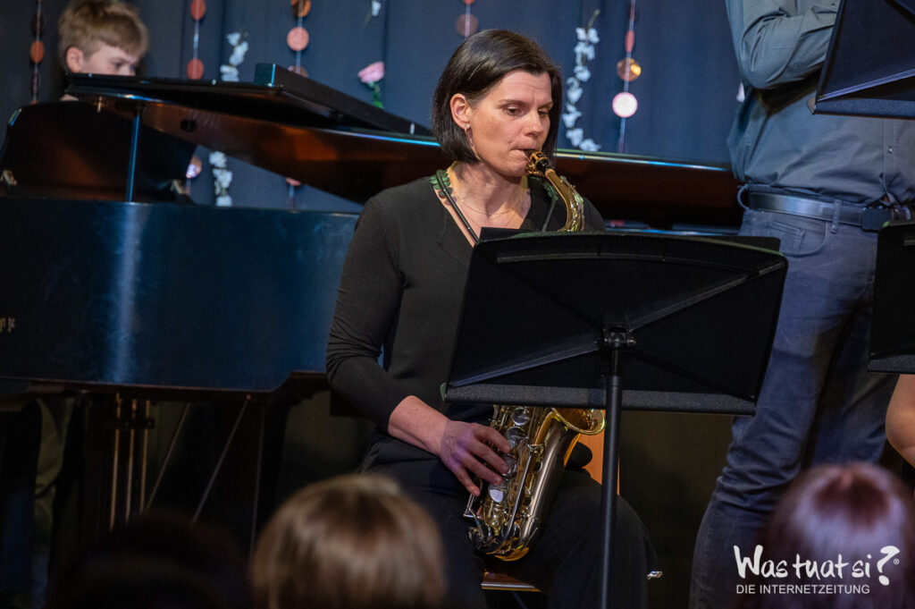 Danach begeisterten moderne Stücke das Publikum: Das Schlagwerk-Ensemble brachte mit „Celebration“ Schwung in den Saal, während Gesangs- und Tanzgruppen bekannte Hits wie „Money, Money“ und „We Are Family“ interpretierten. Die Big Band rundete den Abend mit Klassikern wie „Mercy, Mercy, Mercy“ und der „Mission Impossible“-Melodie ab.
