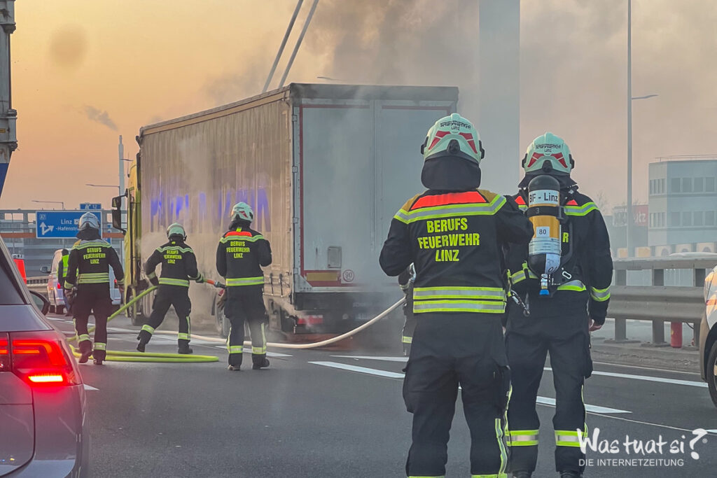 Ein brennender Lastwagen hat am Mittwochmorgen auf der Mühlkreisautobahn in Linz einen Großeinsatz ausgelöst und für massive Verkehrsbehinderungen gesorgt. Der Sattelschlepper blieb im dichten Frühverkehr mitten auf der Voestbrücke stehen, nachdem der Fahrer starken Rauch aus seinem Anhänger bemerkt hatte.