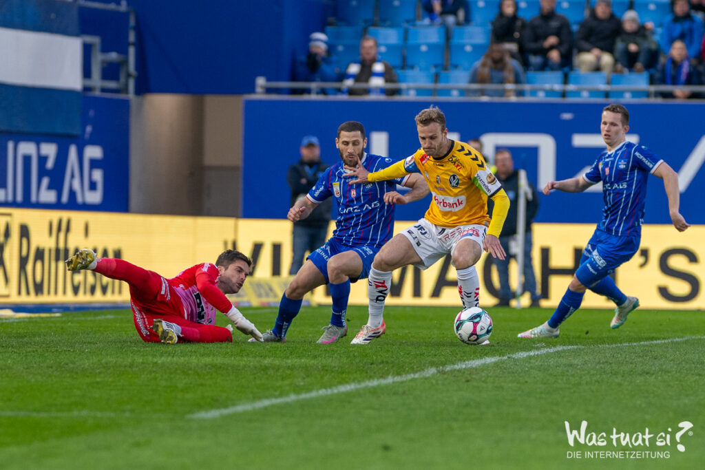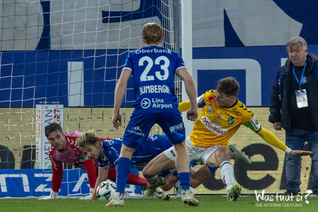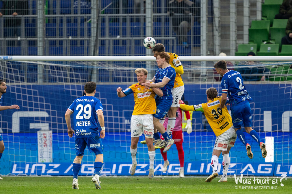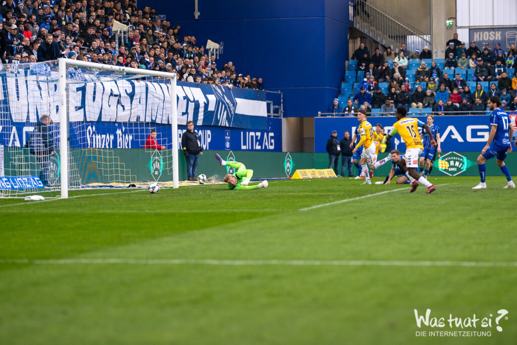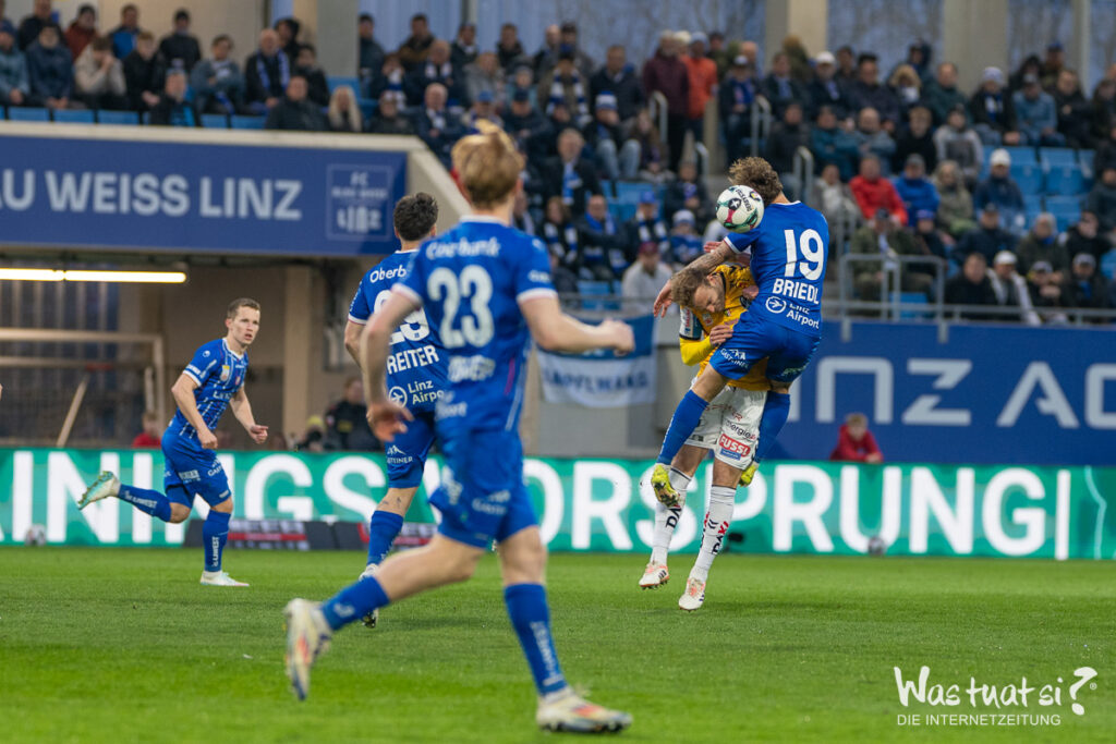 Vor ausverkauftem Haus im Hofmann Personal Stadion erwischte der FC Blau-Weiß Linz im Derby einen echten Albtraumstart. Gerade einmal vier Minuten waren gespielt, da brachte Peter Kiedl die Gäste vom SV Ried per Elfmeter früh in Führung. Die ohnehin aufgeheizte Stimmung bekam damit einen ersten Dämpfer. Blau-Weiß versuchte sofort zu reagieren, zeigte sich bemüht und kämpferisch, doch die letzte Durchschlagskraft fehlte zunächst.