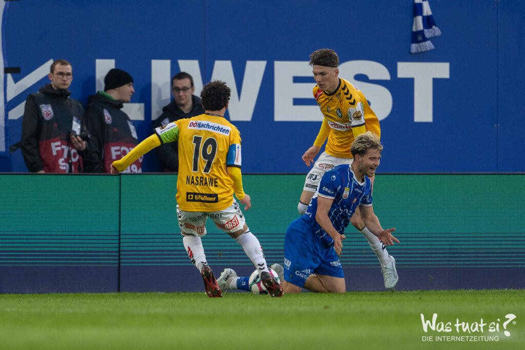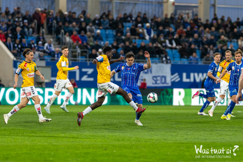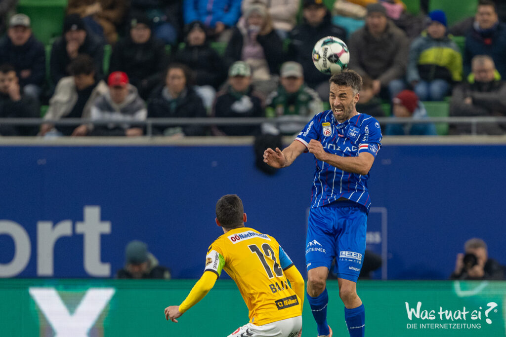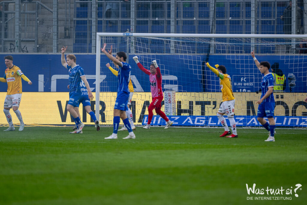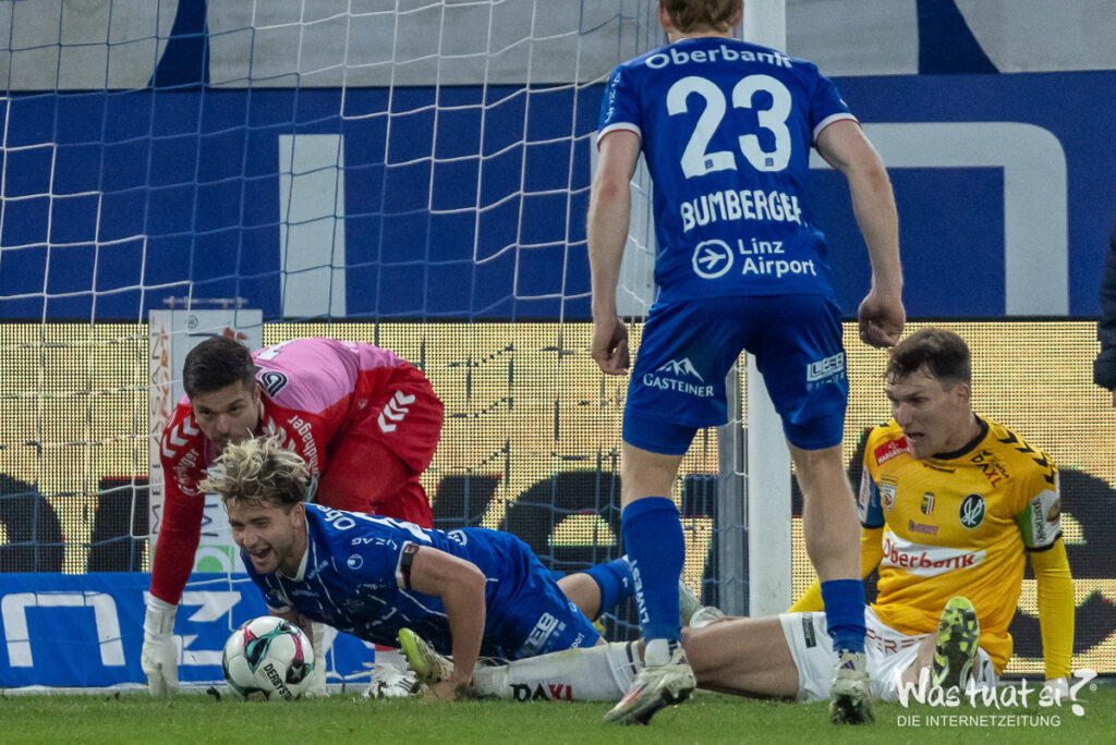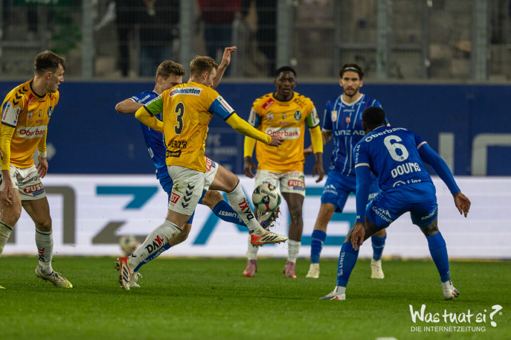 Vor ausverkauftem Haus im Hofmann Personal Stadion erwischte der FC Blau-Weiß Linz im Derby einen echten Albtraumstart. Gerade einmal vier Minuten waren gespielt, da brachte Peter Kiedl die Gäste vom SV Ried per Elfmeter früh in Führung. Die ohnehin aufgeheizte Stimmung bekam damit einen ersten Dämpfer. Blau-Weiß versuchte sofort zu reagieren, zeigte sich bemüht und kämpferisch, doch die letzte Durchschlagskraft fehlte zunächst.