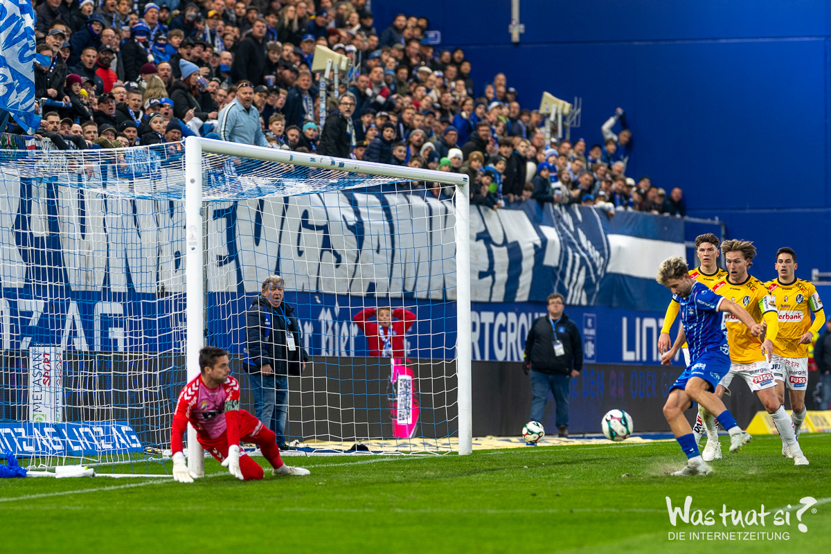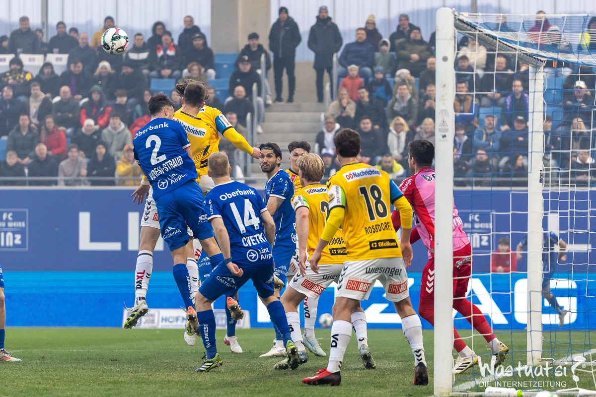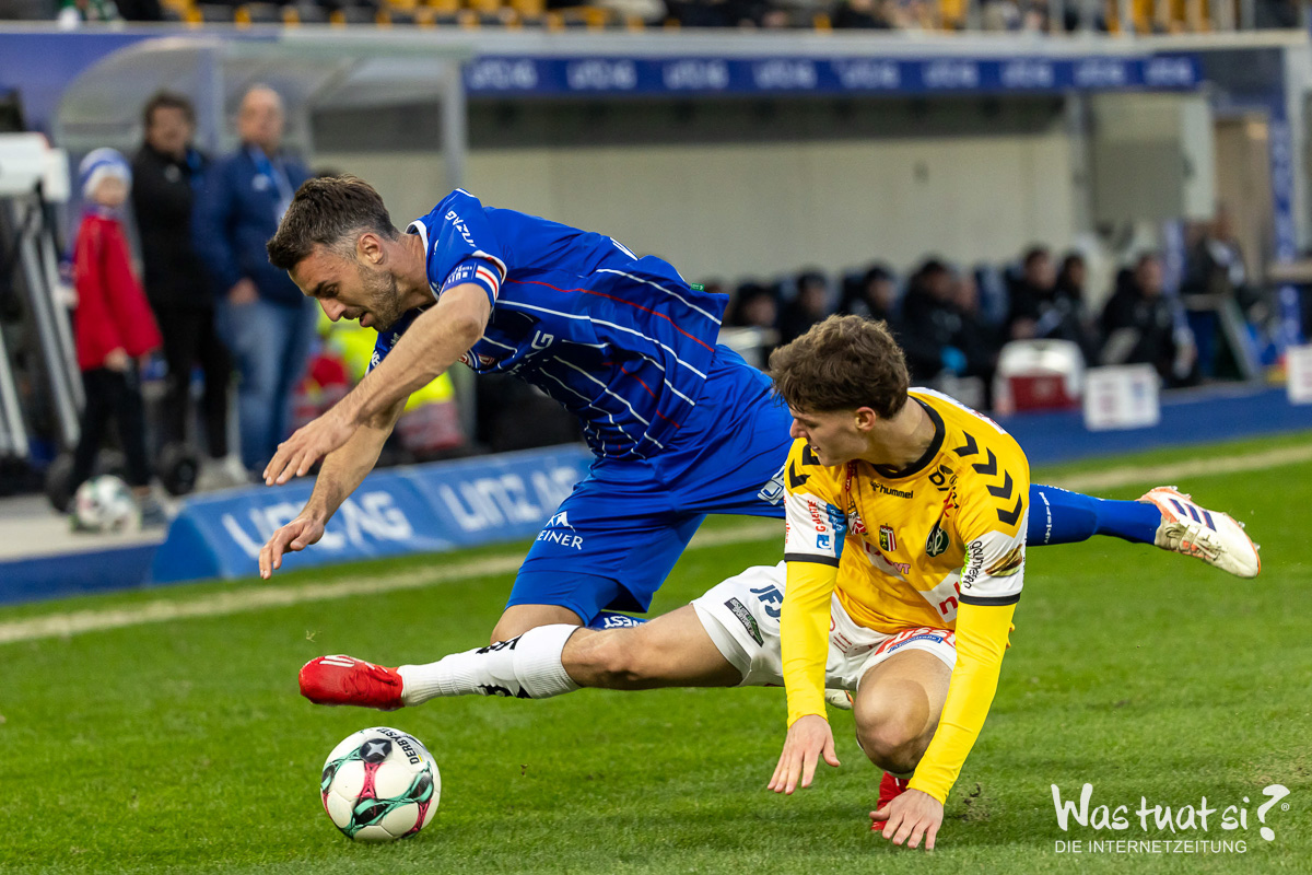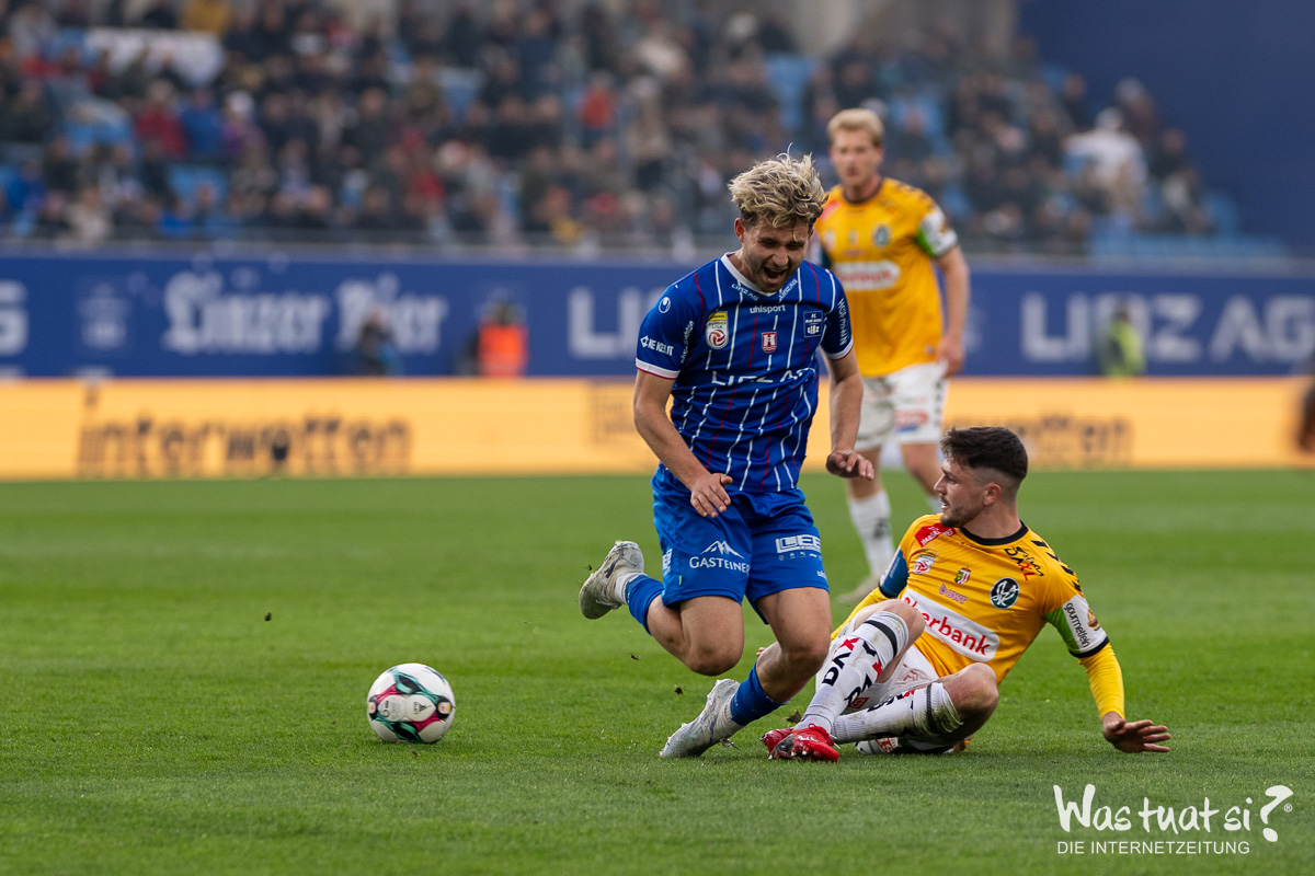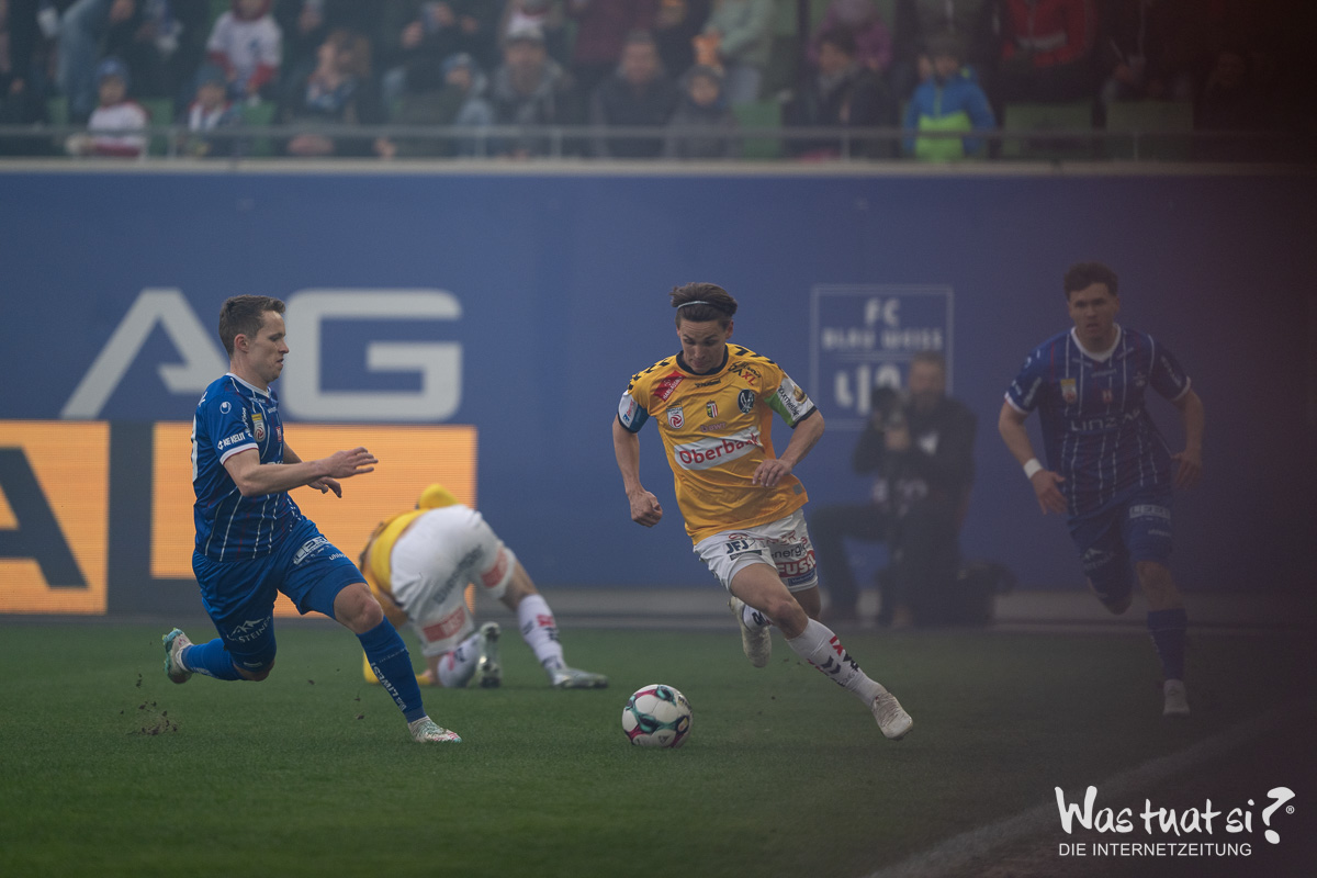 Vor ausverkauftem Haus im Hofmann Personal Stadion erwischte der FC Blau-Weiß Linz im Derby einen echten Albtraumstart. Gerade einmal vier Minuten waren gespielt, da brachte Peter Kiedl die Gäste vom SV Ried per Elfmeter früh in Führung. Die ohnehin aufgeheizte Stimmung bekam damit einen ersten Dämpfer. Blau-Weiß versuchte sofort zu reagieren, zeigte sich bemüht und kämpferisch, doch die letzte Durchschlagskraft fehlte zunächst.