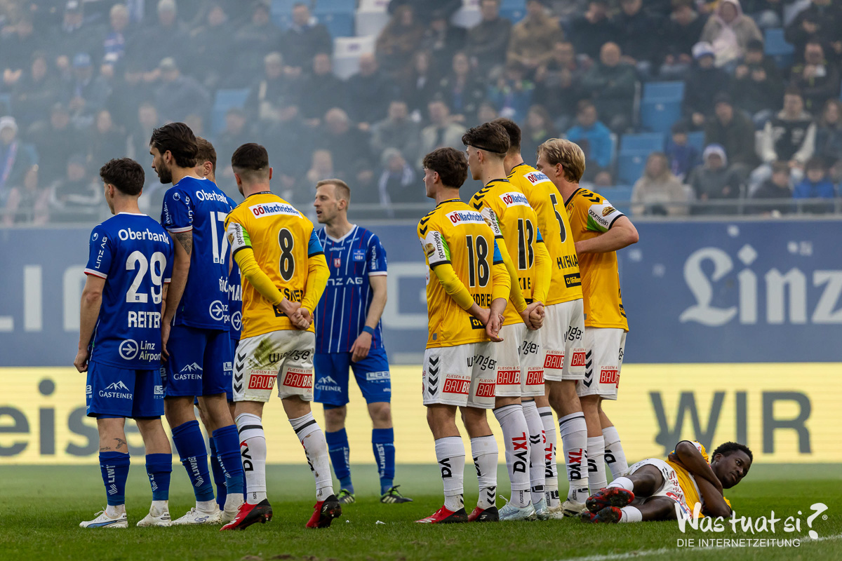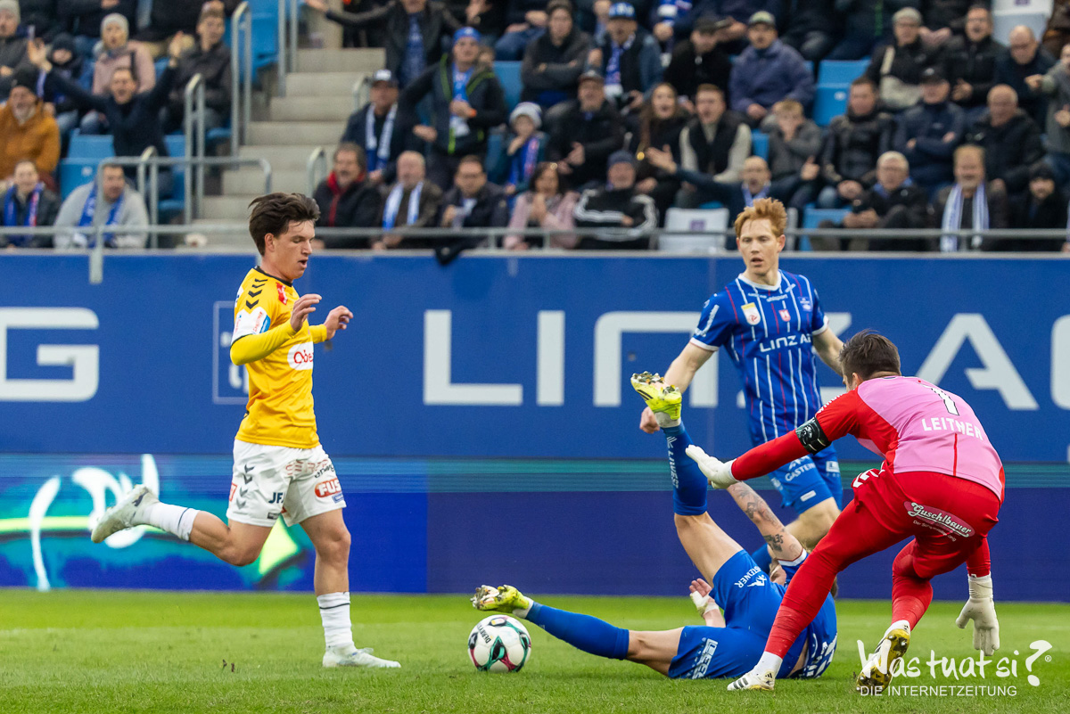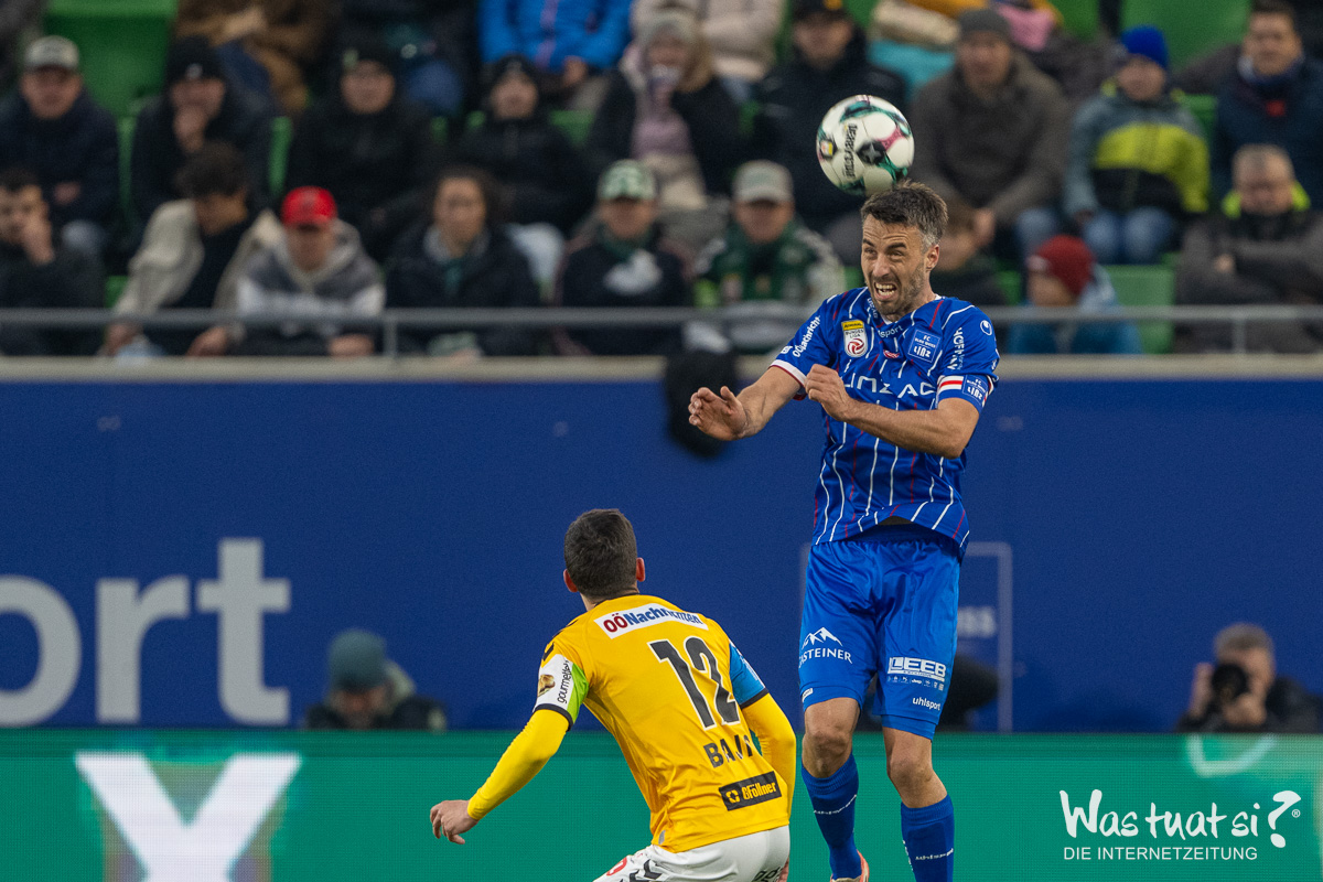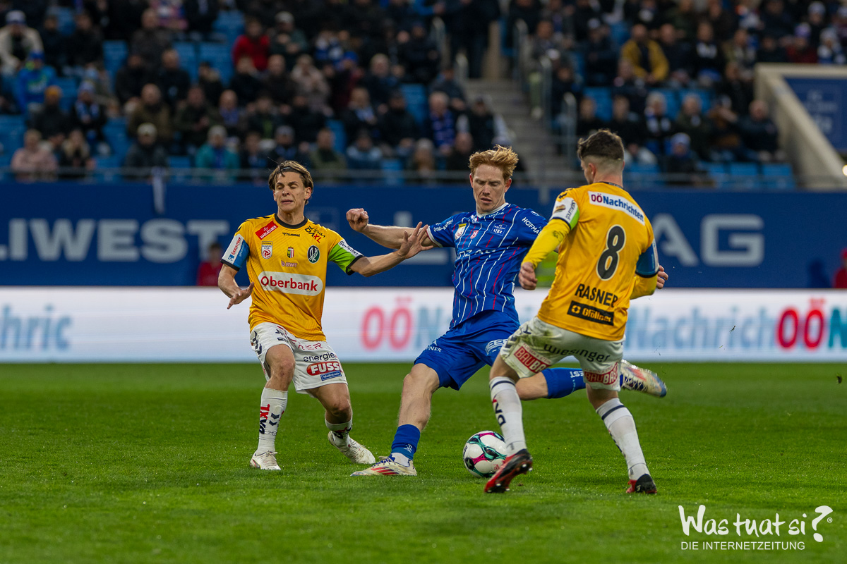 Vor ausverkauftem Haus im Hofmann Personal Stadion erwischte der FC Blau-Weiß Linz im Derby einen echten Albtraumstart. Gerade einmal vier Minuten waren gespielt, da brachte Peter Kiedl die Gäste vom SV Ried per Elfmeter früh in Führung. Die ohnehin aufgeheizte Stimmung bekam damit einen ersten Dämpfer. Blau-Weiß versuchte sofort zu reagieren, zeigte sich bemüht und kämpferisch, doch die letzte Durchschlagskraft fehlte zunächst.
