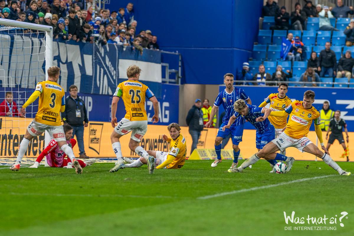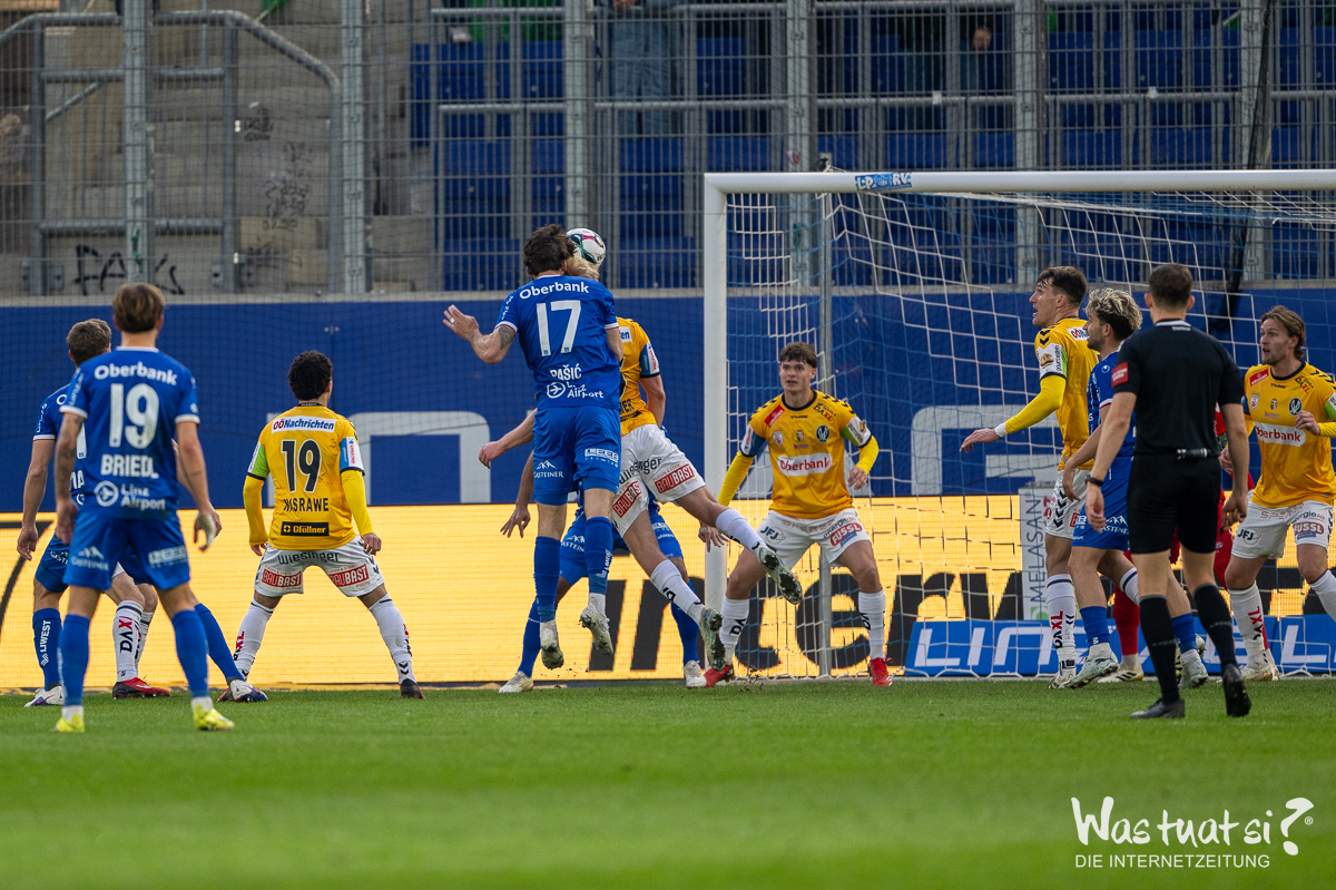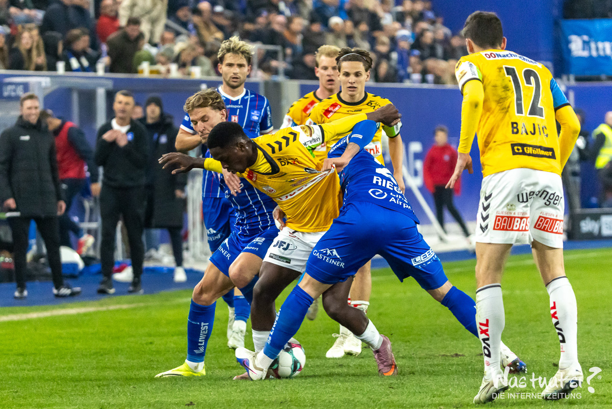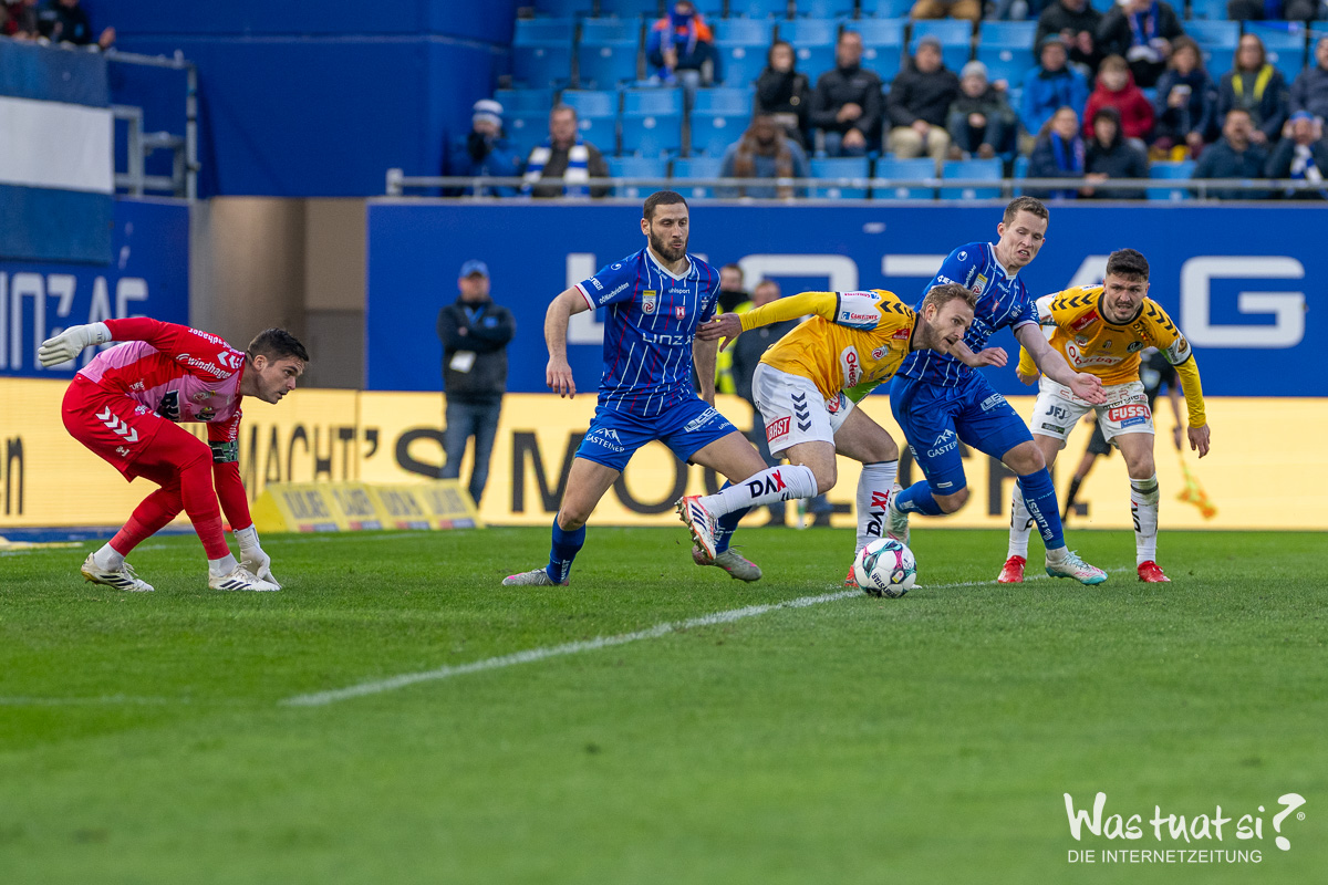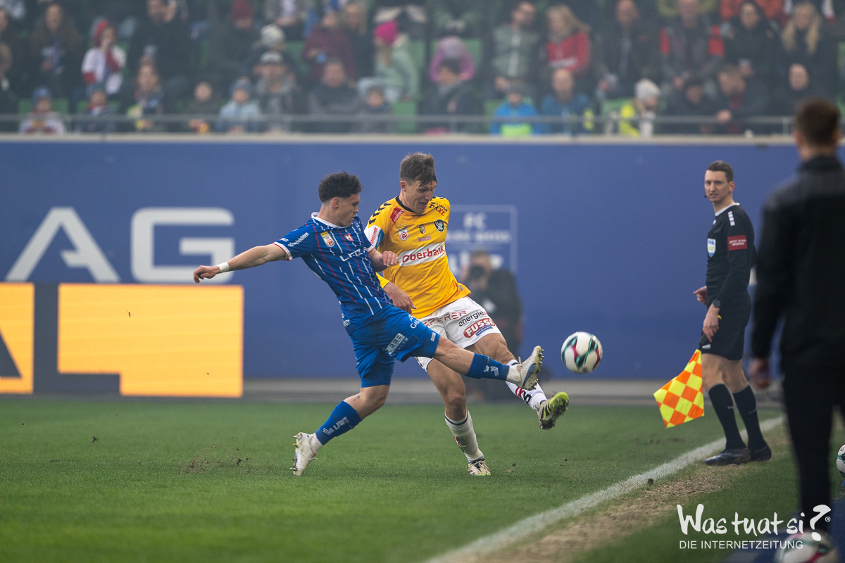 Vor ausverkauftem Haus im Hofmann Personal Stadion erwischte der FC Blau-Weiß Linz im Derby einen echten Albtraumstart. Gerade einmal vier Minuten waren gespielt, da brachte Peter Kiedl die Gäste vom SV Ried per Elfmeter früh in Führung. Die ohnehin aufgeheizte Stimmung bekam damit einen ersten Dämpfer. Blau-Weiß versuchte sofort zu reagieren, zeigte sich bemüht und kämpferisch, doch die letzte Durchschlagskraft fehlte zunächst.