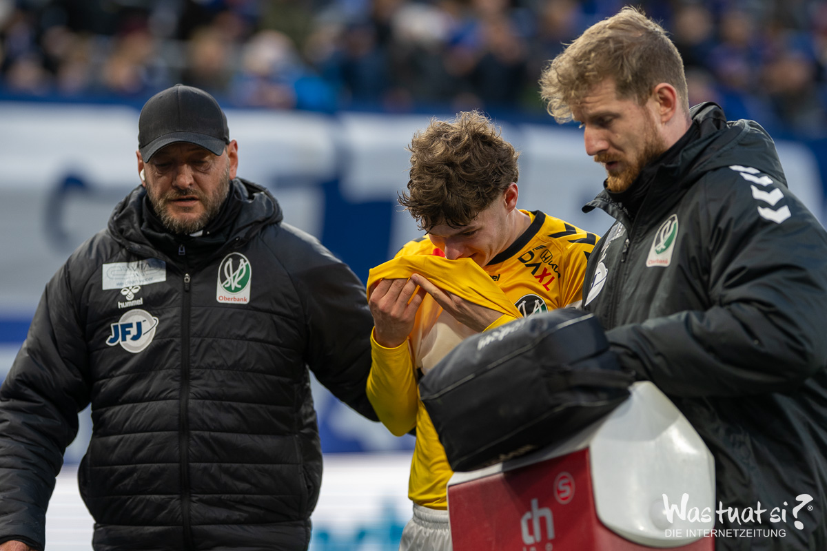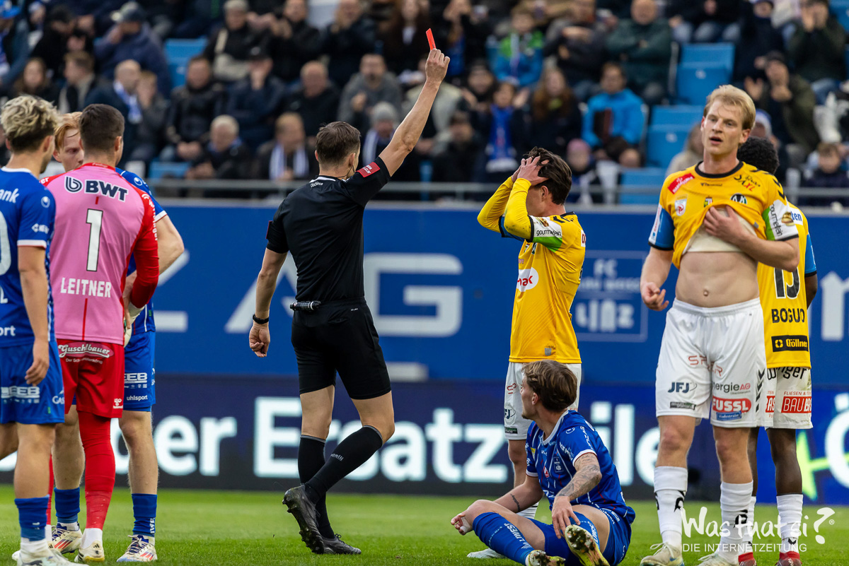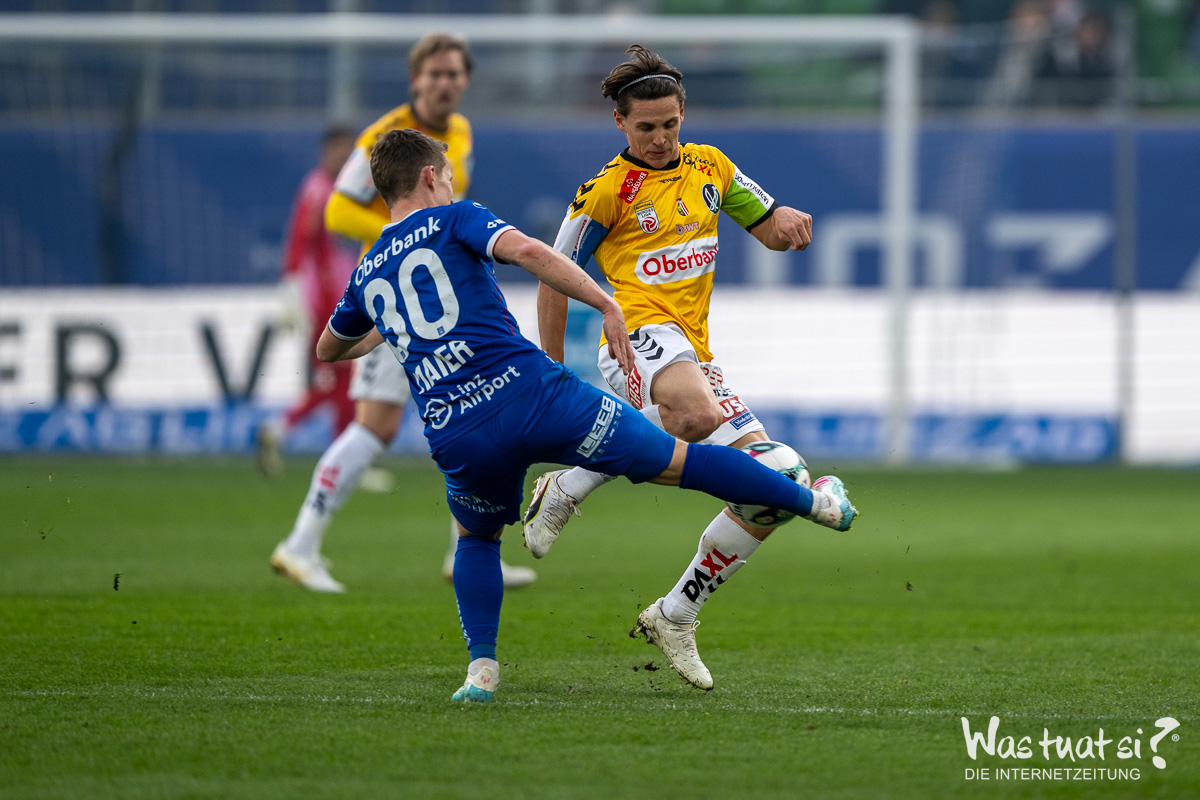 Ried hingegen agierte eiskalt: Nach einem schnellen Angriff schnürte erneut Kiedl seinen Doppelpack und stellte auf 0:2 (19.). Die Linzer ließen sich davon aber nicht komplett entmutigen, suchten weiter den Weg nach vorne und kamen zu ersten Abschlüssen. Die Partie kippte dann in der 29. Minute emotional: Nach einem Foul an Alex Briedl sah Nicolas Bajlicz die Rote Karte – doch der zunächst gegebene Elfmeter wurde zurückgenommen. In Überzahl drückte Blau-Weiß, doch das Tor wollte vor der Pause nicht gelingen – und so ging es trotz aufopferungsvollem Einsatz mit 0:2 in die Kabinen.