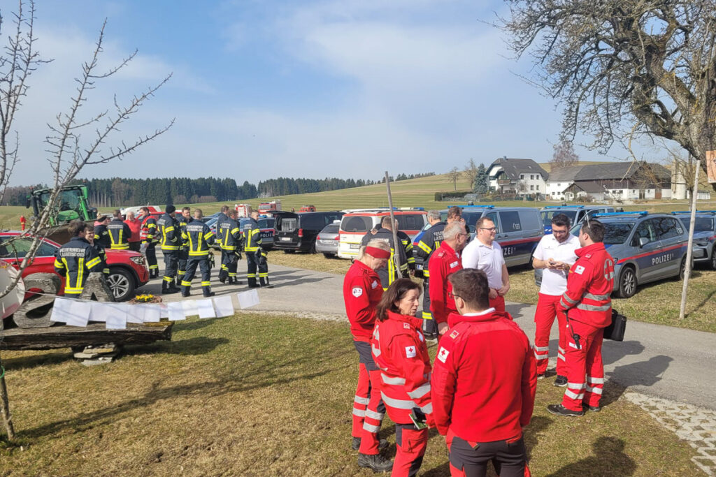 Auch die benachbarten Freiwilligen Feuerwehren Gramastetten, Lassersdorf und Neusserling wurden zusätzlich an den Einsatzort alarmiert. Die Suchhundestaffel Rohrbach war mit acht Hundeführern und zehn Helfern bereits im Einsatz. Drohnen von Rotem Kreuz und Polizei waren an der Suchaktion ebenfalls beteiligt. Während die ersten Mannschaften damit starteten, ein definiertes Einsatzgebiet zu durchsuchen, kam die Nachricht, dass der Drohnenpilot vom Drohnenstützpunkt Urfahr Umgebung die abgängige Dame erfolgreich auffinden konnte. Die Dame wurde anschließend zur Kontrolle ins Krankenhaus gebracht.