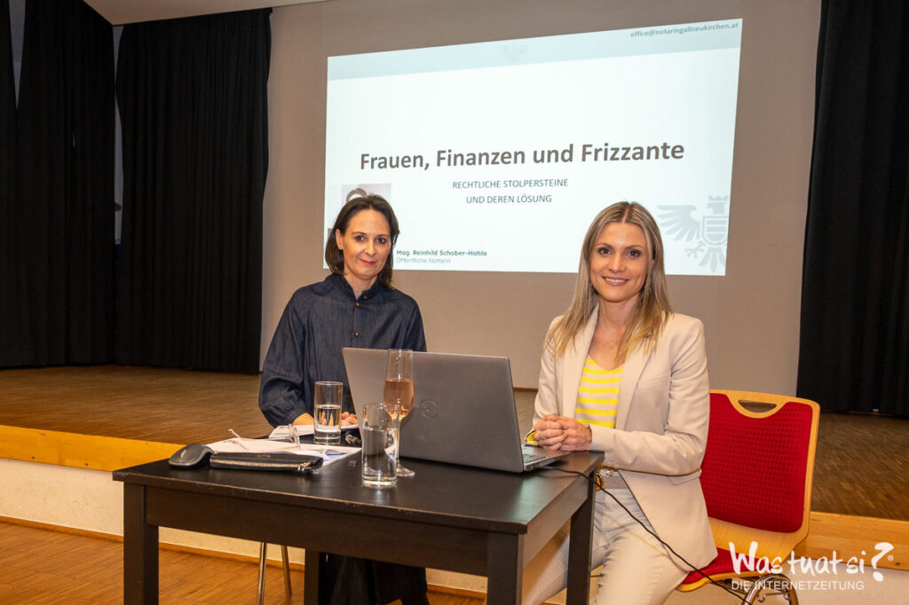 Die rund 30 Teilnehmerinnen und Teilnehmer wurden von Rosina Gußner, Monika Kaineder und Kerstin Lehner mit einem Glas Frizzante empfangen. Nach der offiziellen Begrüßung durch Vizebürgermeisterin Dr. Caroline Priller gaben die Referentinnen Mag. Reinhild Schober-Hohla, öffentliche Notarin aus Gallneukirchen, und Julia Bruckner, MBA, von der Sparkasse Oberösterreich praxisnahe Einblicke in wichtige Themen rund um Vermögensaufbau, Vermögensweitergabe, Pensionsvorsorge sowie Absicherung für die Zukunft.