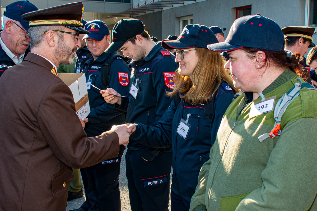 Bezirksfeuerwehrkommandant OBR Ing. Johannes Enzenhofer und Abschnittsfeuerwehrkommandant BR Kurt Reiter MSc waren bei der Schlussveranstaltung anwesend und gratulierten den Teilnehmern zu den erbrachten Leistungen.