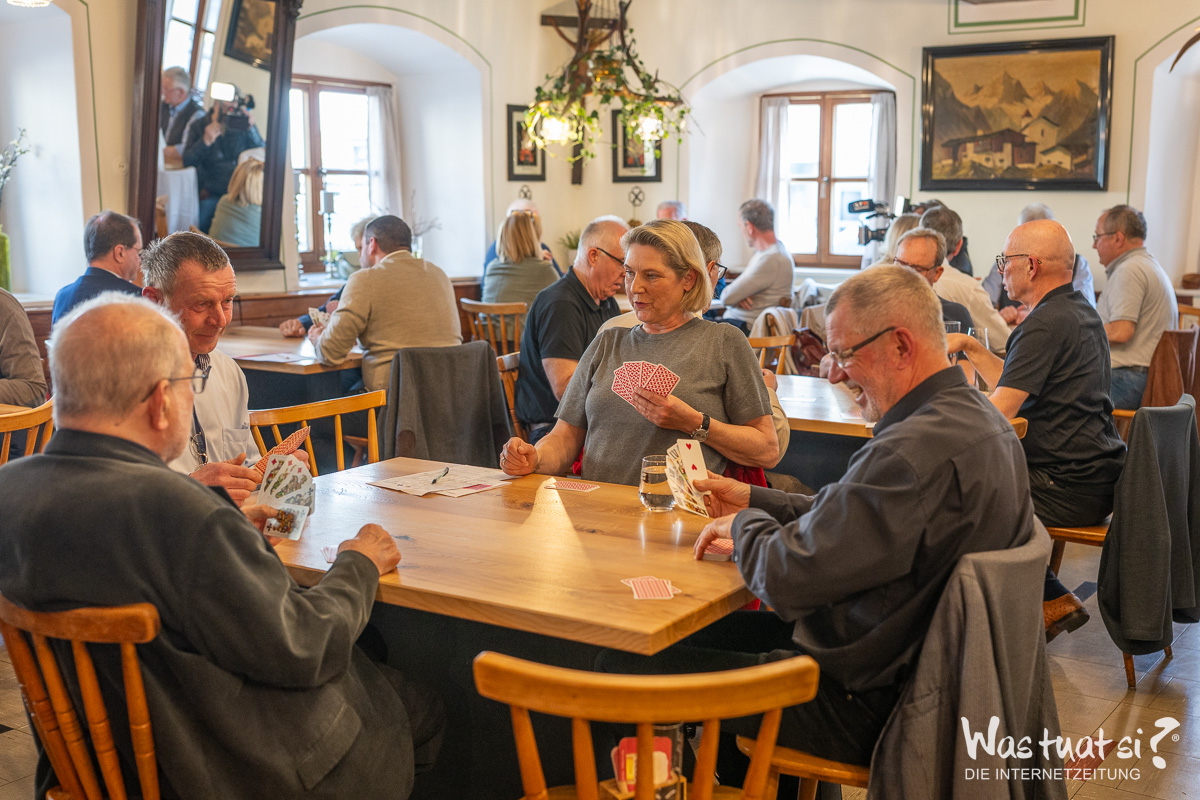 Zum bereits 26. Mal ging im Gasthof Haudum in Helfenberg ein Tarockturnier über die Bühne – diesmal als Promi-Turnier. Insgesamt 40 Teilnehmer folgten der Einladung und stellten ihr Können am Kartentisch unter Beweis. Gespielt wurde nach den bewährten „Mühlviertler Tarock Regeln“. Neben taktischem Geschick und einem guten Blatt stand vor allem das gesellige Miteinander im Mittelpunkt des Nachmittags. Die Teilnehmer lieferten sich spannende Partien, während zwischen den Spielrunden ausreichend Zeit für Gespräche und Austausch blieb. Das Startgeld von 30 Euro pro Teilnehmer wurde gesammelt und für einen karitativen Zweck gespendet – damit verband das Turnier sportlichen Ehrgeiz mit einem guten Zweck.