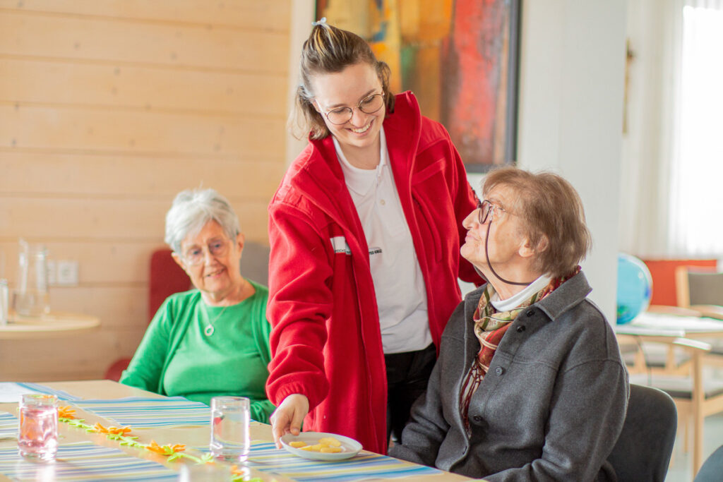Ältere oder einsame Menschen profitieren von den Angeboten der Sozialen Dienste. Freiwillige Besuchsdienst-Mitarbeiter:innen schenken Zeit und Aufmerksamkeit – ob zu Hause oder im Tagesbetreuungszentrum Kirchschlag.