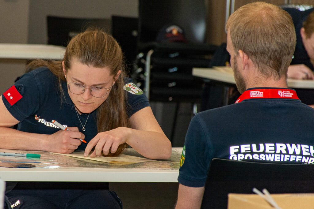 Damit der Prüfungstag in der Landesfeuerwehrschule reibungslos vonstattengeht, wurden aus unserem Bezirk 14 Bewerter und Bewerterinnen entsandt.