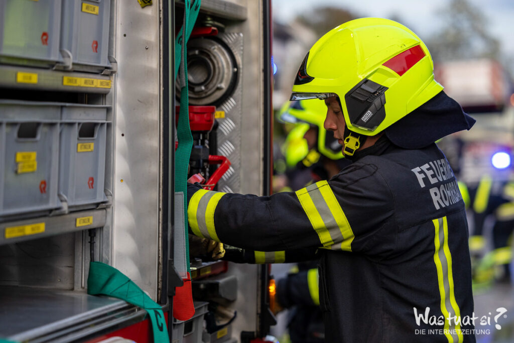 Heute wurde die Feuerwehr Perwolfing gemeinsam mit den Feuerwehren Freiwillige Feuerwehr Rohrbach im Mühlkreis, Freiwillige Feuerwehr Götzendorf und der Freiwilligen Feuerwehr Haslach an der Mühl um 19:24 Uhr zu einem Gebäudebrand in die Harrauer Straße alarmiert. Während der Anfahrt rüstete sich der Atemschutz bereits vollständig aus. Am Einsatzort eingetroffen wurde der Atemschutztrupp sofort in die oberen Stockwerke des Brandgebäudes beordert um schnellstmöglich mit der Belüftung des Hauses starten zu können, so wie das Haus mittels Wärmebildkamera auf Brandausbreitung zu kontrollieren. Weiters bestanden unsere Aufgaben darin, eine Löschwasserleitung aufzubauen, das RLF Rohrbach mit Löschwasser zu versorgen und bei der Absicherung der Einsatzstelle zu helfen. Der Brand konnte bereits nach kurzer Zeit unter Kontrolle gebracht werden. Insgesamt standen 31 Kameradinnen und Kameraden für ca. 1,5 h im Einsatz.