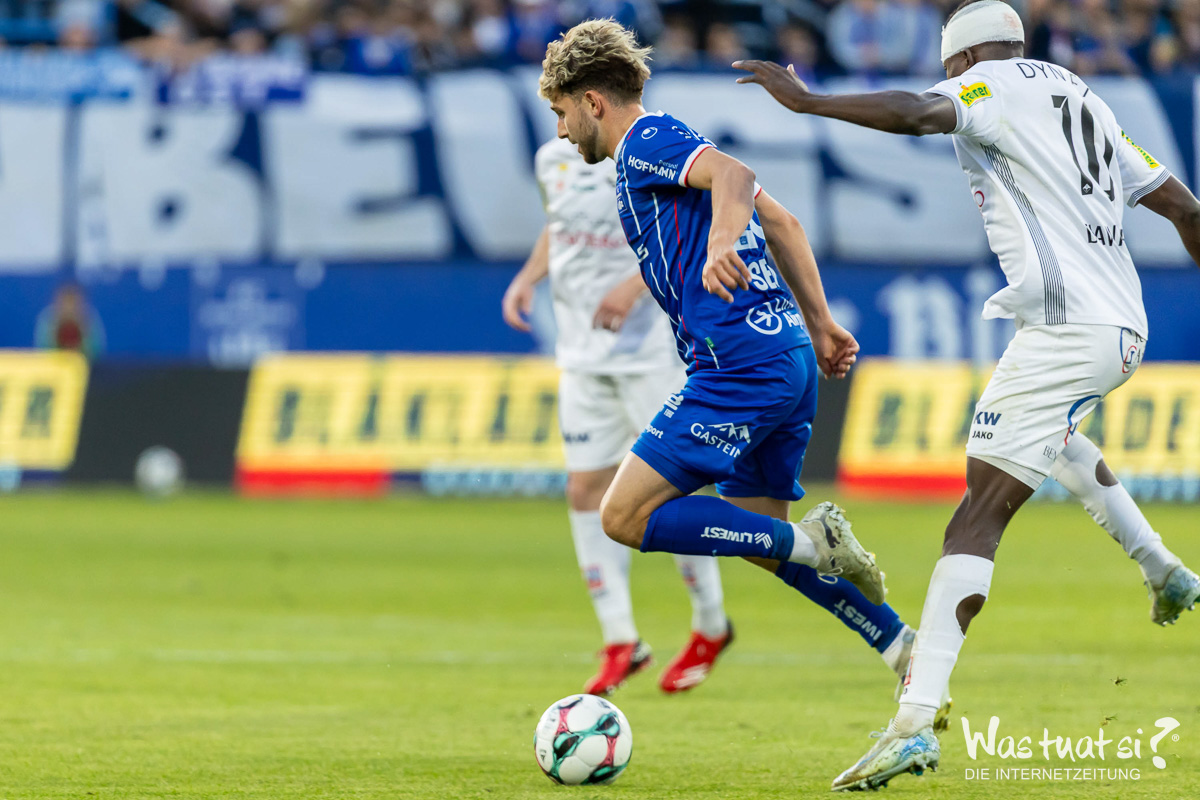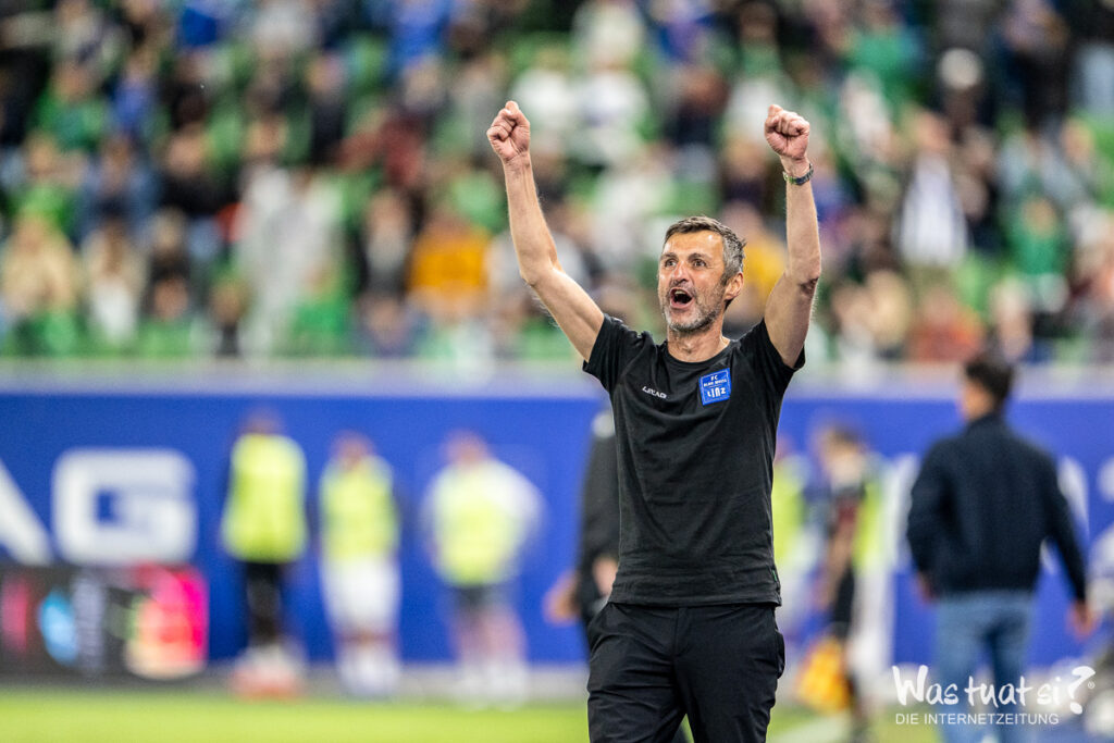 Auch nach der Pause blieb die Partie zunächst zerfahren und von Vorsicht geprägt. Blau-Weiß Linz zeigte sich zwar etwas aktiver und präsenter im Gegenpressing, klare Chancen blieben aber Mangelware. Dann aber schlugen die Linzer eiskalt zu: In der 67. Minute brachte Seidl sein Team mit einem sehenswerten Flugkopfball nach Maier-Flanke in Führung. Nur Augenblicke später folgte der Doppelschlag – Ronivaldo erhöhte mit einem traumhaften Distanzschuss auf 2:0 und stellte die Weichen endgültig auf Sieg. Das Hofmann Personal Stadion glich einem Tollhaus! Unpackbare Stimmung!