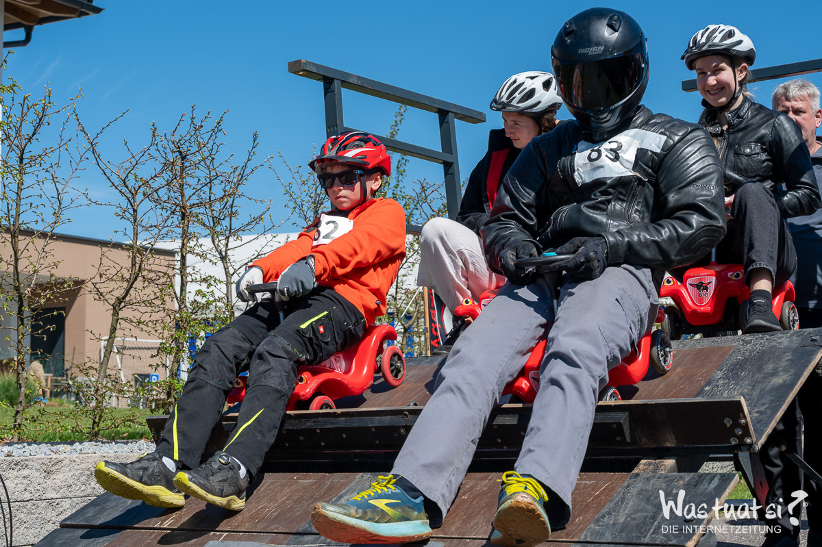 Ein außergewöhnliches Spektakel bot sich den zahlreichen Zuschauern beim großen Bobbycar-Rennen: Rund 80 mutige Starter wagten sich auf die rasante Strecke und sorgten für beste Unterhaltung. Bei perfekten Wetterbedingungen feuerten die Besucher die Fahrer lautstark an und erlebten packende Kopf-an-Kopf-Rennen bis zur Ziellinie.
