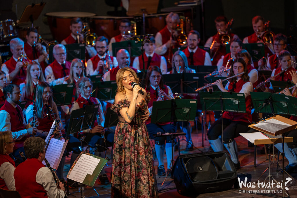 Die beiden Topstars – Valentini war für die kurzfristig erkrankte Daniela Dett eingesprungen – nahmen das Publikum zu einer Reise in die Welt zahlreicher Musicalklassiker mit: Bekannte Melodien aus dem „Tanz der Vampire“, „My Fair Lady“ und „Chicago“ fehlten in dem anspruchsvollen Programm ebenso wenig wie ein ganzer Block aus dem Welthit „Elisabeth“. Die beiden Solisten überzeugten mit Stimme und durch ihre Bühnenpräsenz – und zeigten sich ihrerseits von der Begleitung durch die Leonfeldner Musiker begeistert: Die von Martin und Christian Dumphart geleitete Trachtenmusikkapelle stellte dabei nicht nur ihr herausragendes musikalisches Niveau unter Beweis, sondern verschaffte den beiden Musicalstars auch ein besonderes Debüt: Für beide war es trotz ihrer internationalen Karrieren das erste Mal, dass sie mit einem fast 90 Aktive umfassenden Blasorchester auf der Bühne standen.