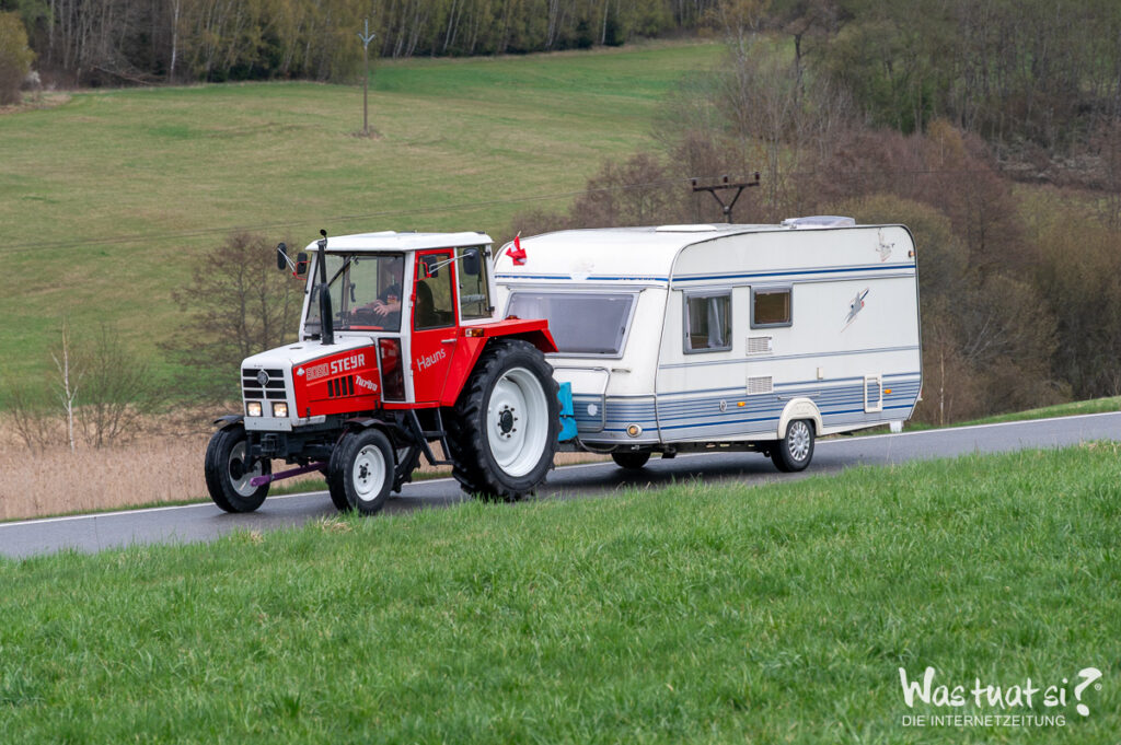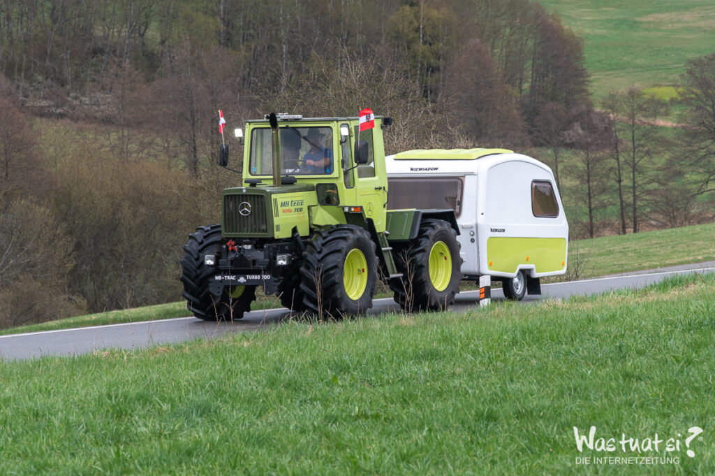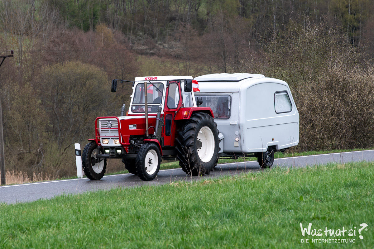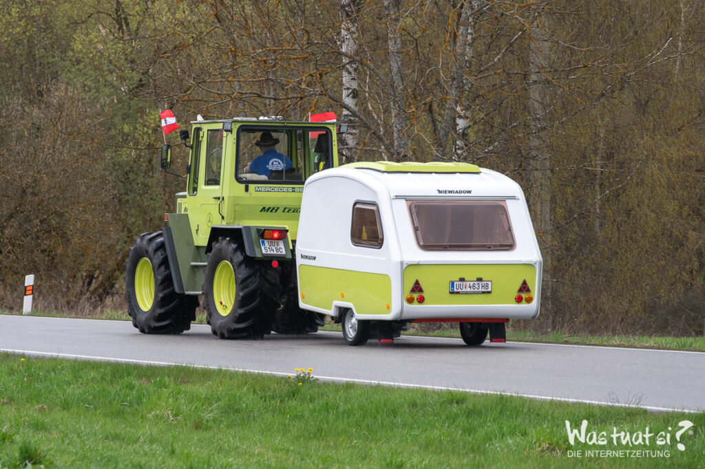 Mit dabei sind zwei bewährte Maschinen – ein Steyr 8080 und ein Ferguson – die trotz ihres Alters zuverlässig ihren Dienst leisten. Mit einer Reisegeschwindigkeit von etwa 20 km/h steht nicht das Tempo im Vordergrund, sondern das Erlebnis: beeindruckende Landschaften, Begegnungen mit Menschen und das Gefühl von Freiheit.